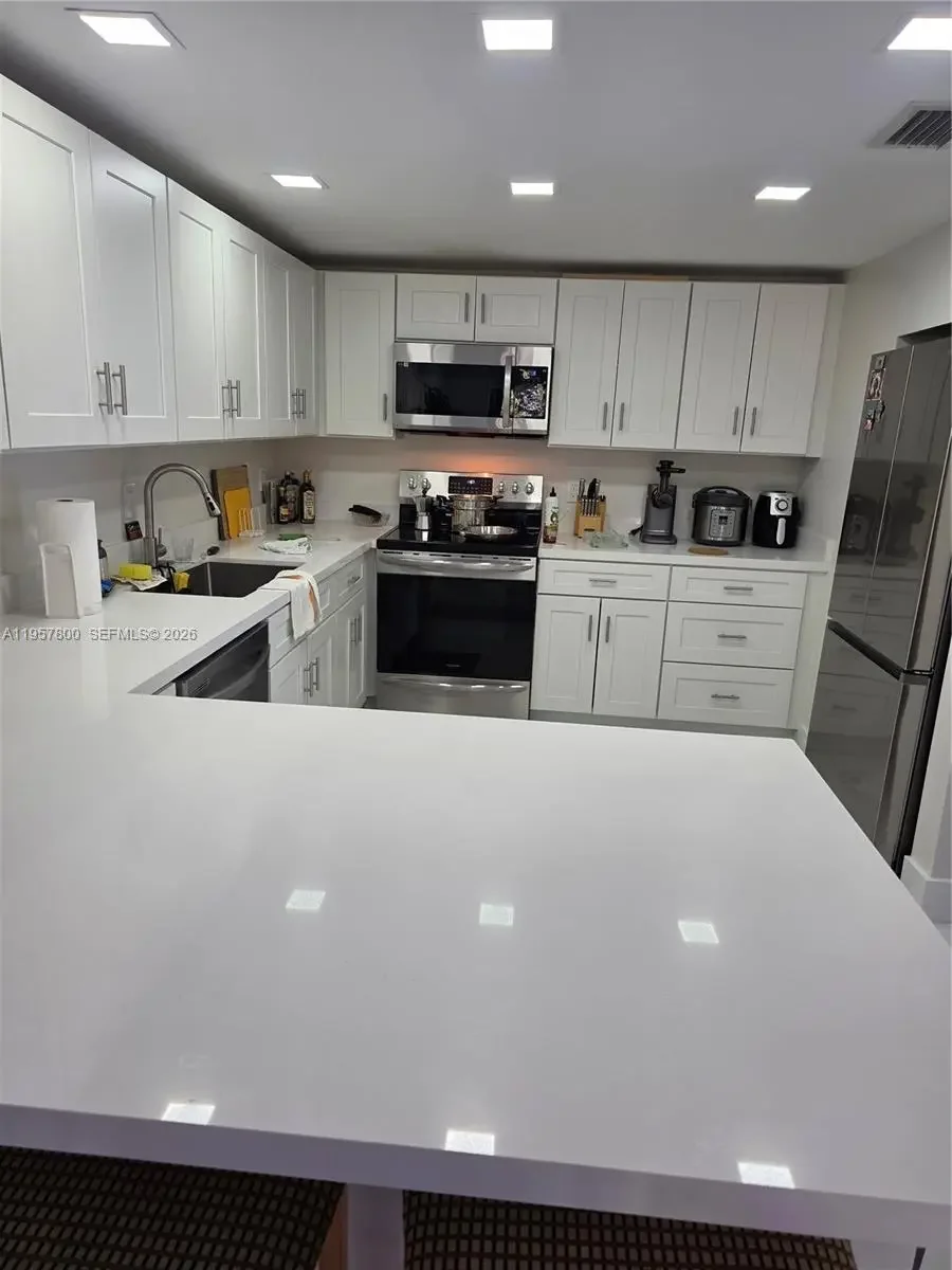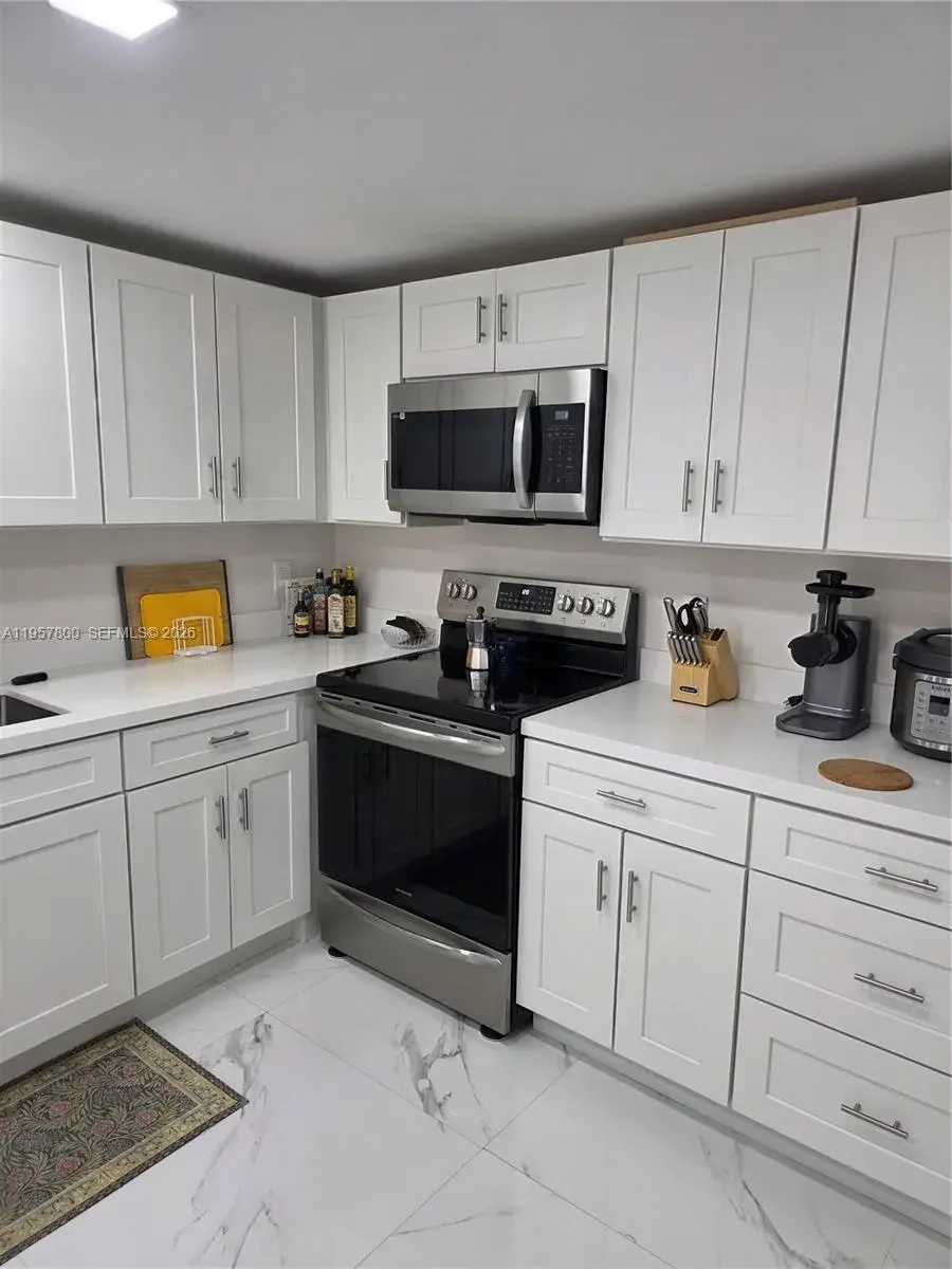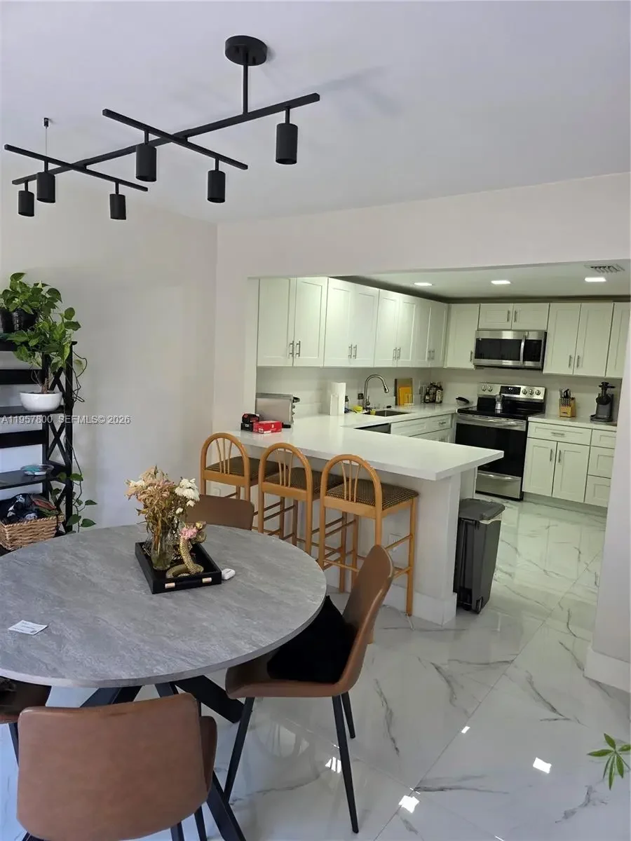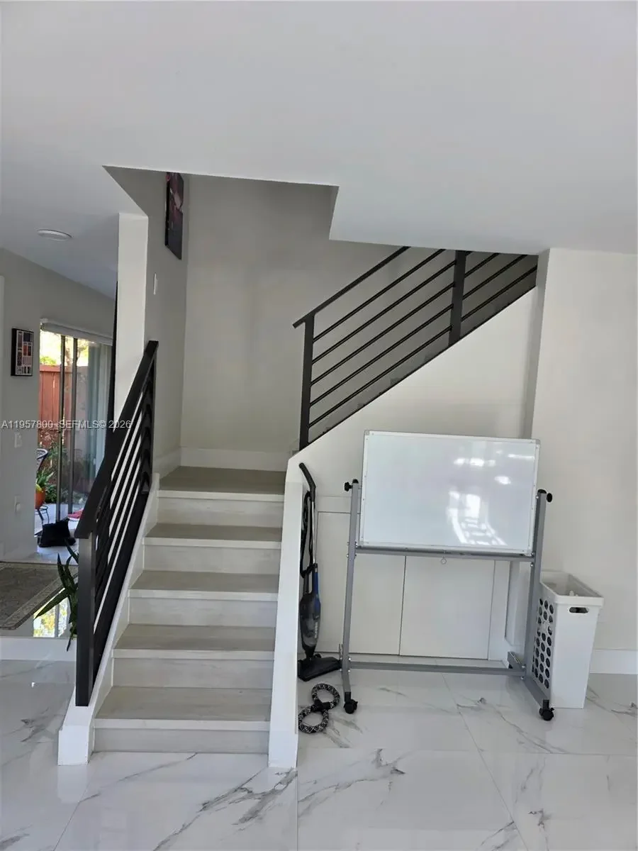 SNAPPER VILLAGE AT ITS FINEST — No expense spared , This beautifully updated corner unit is located in a desirable 24/7 guard-gated community and offers 3 bedrooms and 2.5 bathrooms, ideal for comfortable living and entertaining. lots of natural light throughout the unit, very spacious bedrooms upstairs with 2 full baths, plus 1/2 bath downstairs. no pets allowed in this unit, extra storage below staircase, modern staircase leading to upstairs bedroom, paddle fans with remote controls, (2) wifi Boosters, ECO B a/c thermostat The home features top-of-the-line upgrades throughout, including elegant porcelain flooring, a fully renovated kitchen with stylish cabinetry, quartz countertops, and newer stainless steel appliances, and a top-of-the-line full-size washer and dryer inside the unit. The primary bedroom includes custom cabinetry. included in rent: water service, cable and internet, All bathrooms have been completely remodeled with porcelain tile, glass shower doors, and modern vanities. Enjoy enhanced privacy with a corner patio backing to a greenbelt, only one neighboring unit, Additional highlights include one assigned parking space plus ample guest parking (up to three more vehicles allowed). The community offers resort-style amenities, including a tennis court, swimming pool, exercise room, and 24-hour security patrol. children play area, Conveniently located near the Turnpike, Palmetto Expressway, FIU, Miami Dade College, restaurants, shopping malls, and more.