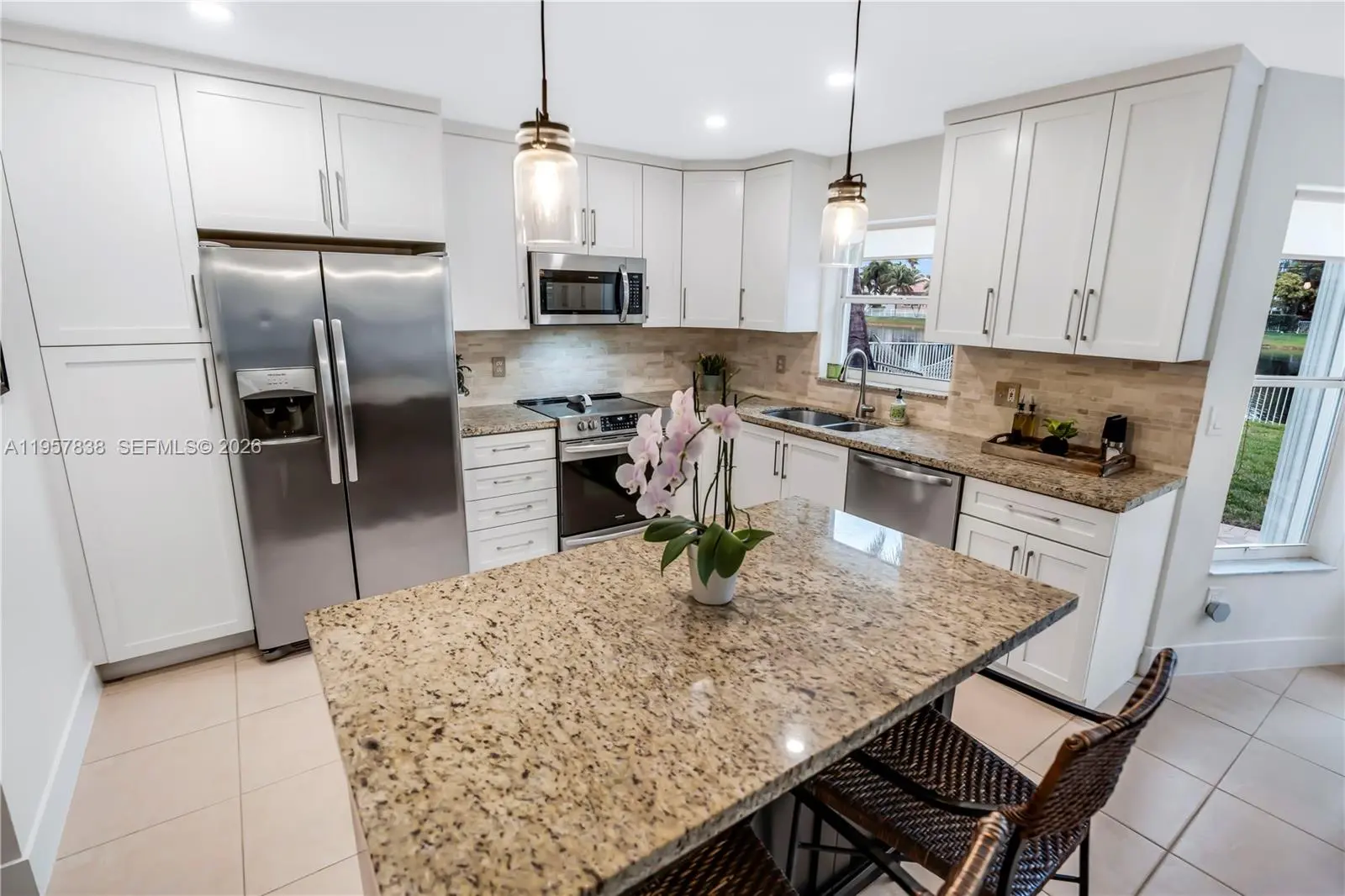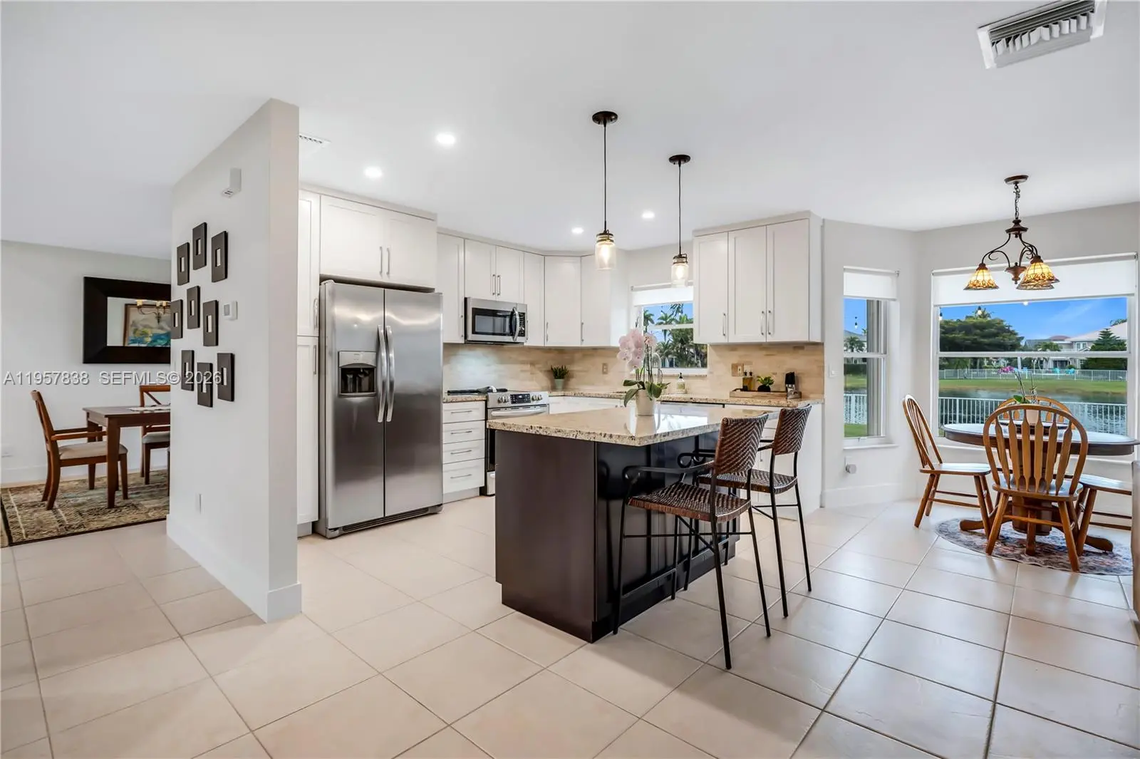 Beautifully updated 3-bedroom, 2.5-bath residence featuring a spacious loft and a 2-car garage, perfectly positioned on a large, beautifully landscaped lot with serene water views perfect for entertaining. This turnkey home has been thoughtfully and tastefully updated, offering a remodeled kitchen with modern finishes, all the bathrooms have been updated with top of the line finishes, and luxury vinyl flooring throughout the upstairs living areas. The open and functional floor plan provides generous living and entertaining spaces filled with natural light. Step outside to a gorgeous backyard overlooking the water which is an ideal setting for relaxing, outdoor dining, or entertaining guests. Meticulously maintained and move-in ready, this home combines comfort and style. Conveniently located in the highly desirable Silver Lakes at Coconut Sound community, close to parks, schools, shopping, dining, and major roadways.