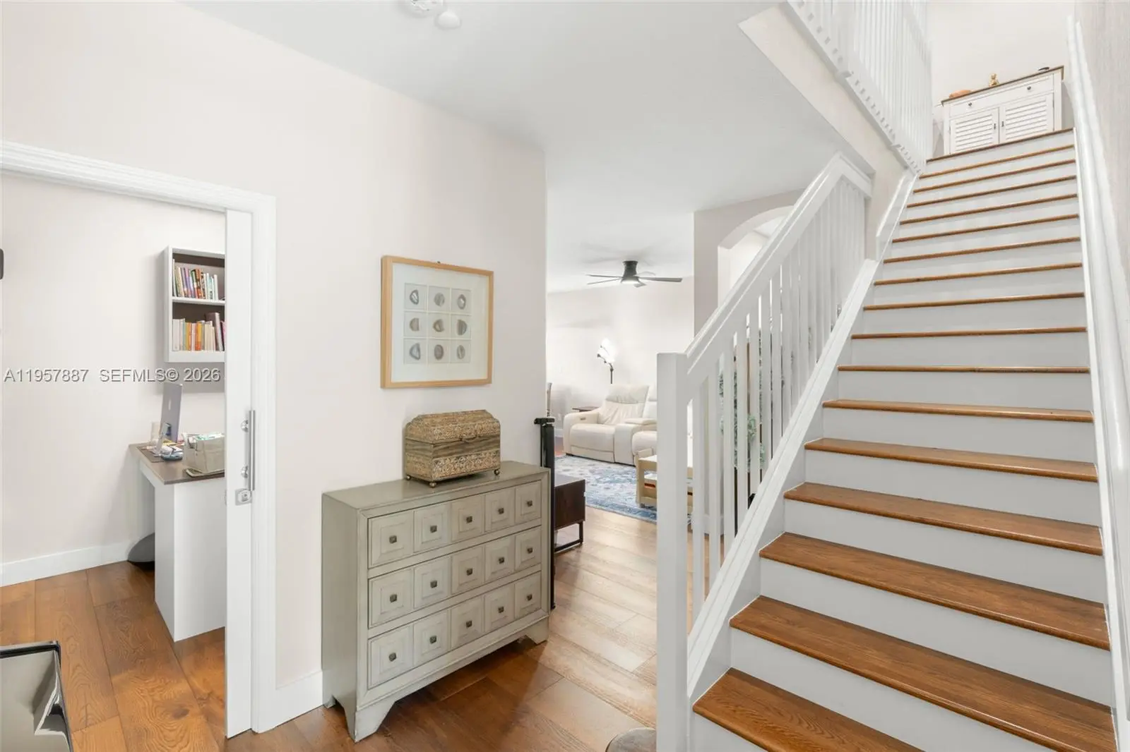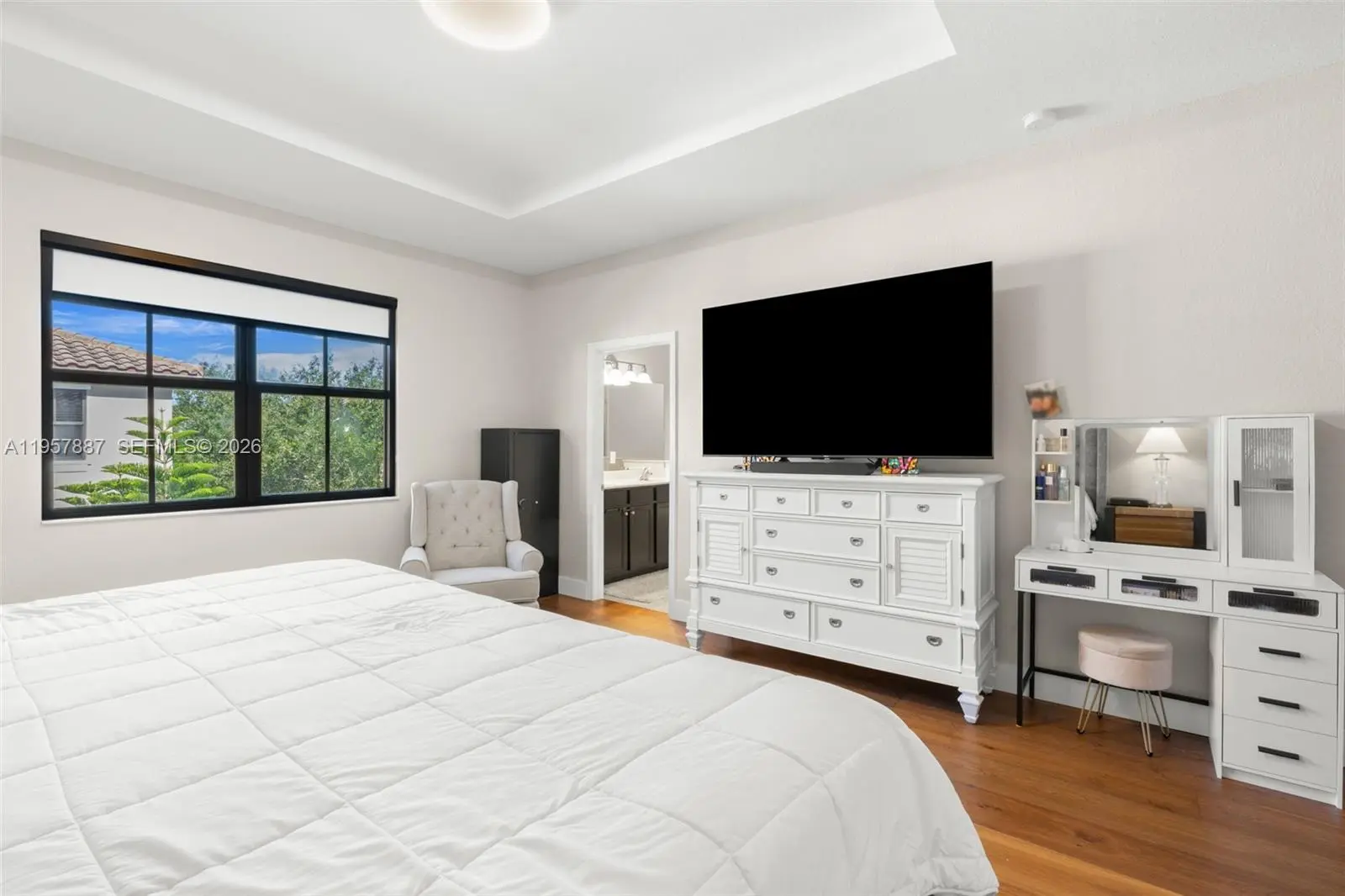 NO OTHER REMODLED TURN-KEY UNIT LIKE THIS!! This exquisite 3-bedroom, 2.5-bathroom home is a true gem, offering a fully customized office complete with modern LED cabinets and a built-in desk. The residence has been thoughtfully remodeled, showcasing an array of luxurious upgrades that elevate the everyday living experience. The stunning hardwood floors flow seamlessly throughout the home, creating a warm and inviting atmosphere. Each bedroom features custom closets, providing ample storage and organization. The lighting throughout the home is a blend of new flush mount fixtures and elegant chandeliers that add a touch of sophistication. The kitchen is a chef’s dream, highlighting a gorgeous backsplash illuminated by LED lighting. A spacious pantry complete with sliding drawers ensures that everything you need is conveniently at your fingertips. You'll also find a brand new dishwasher and an included washer & dryer for added convenience. Experience ultimate comfort with both motorized and manual blackout shades. The garage features polymer floors and customized cabinets. Step outside into your own private oasis—a fully fenced backyard designed for relaxation and outdoor enjoyment, perfect for gatherings. Residents can indulge in resort-style amenities at Mira Lago and Cascata, which include luxurious pools, state-of-the-art fitness centers, tennis courts, and the peace of mind provided by a 24-hour guard gate. This home truly offers a lifestyle of elegance and convenience!