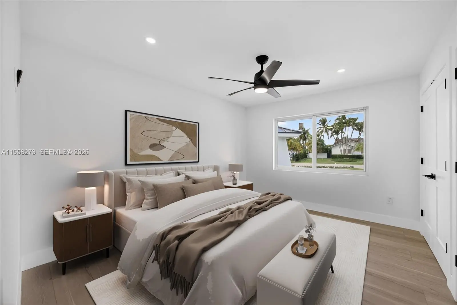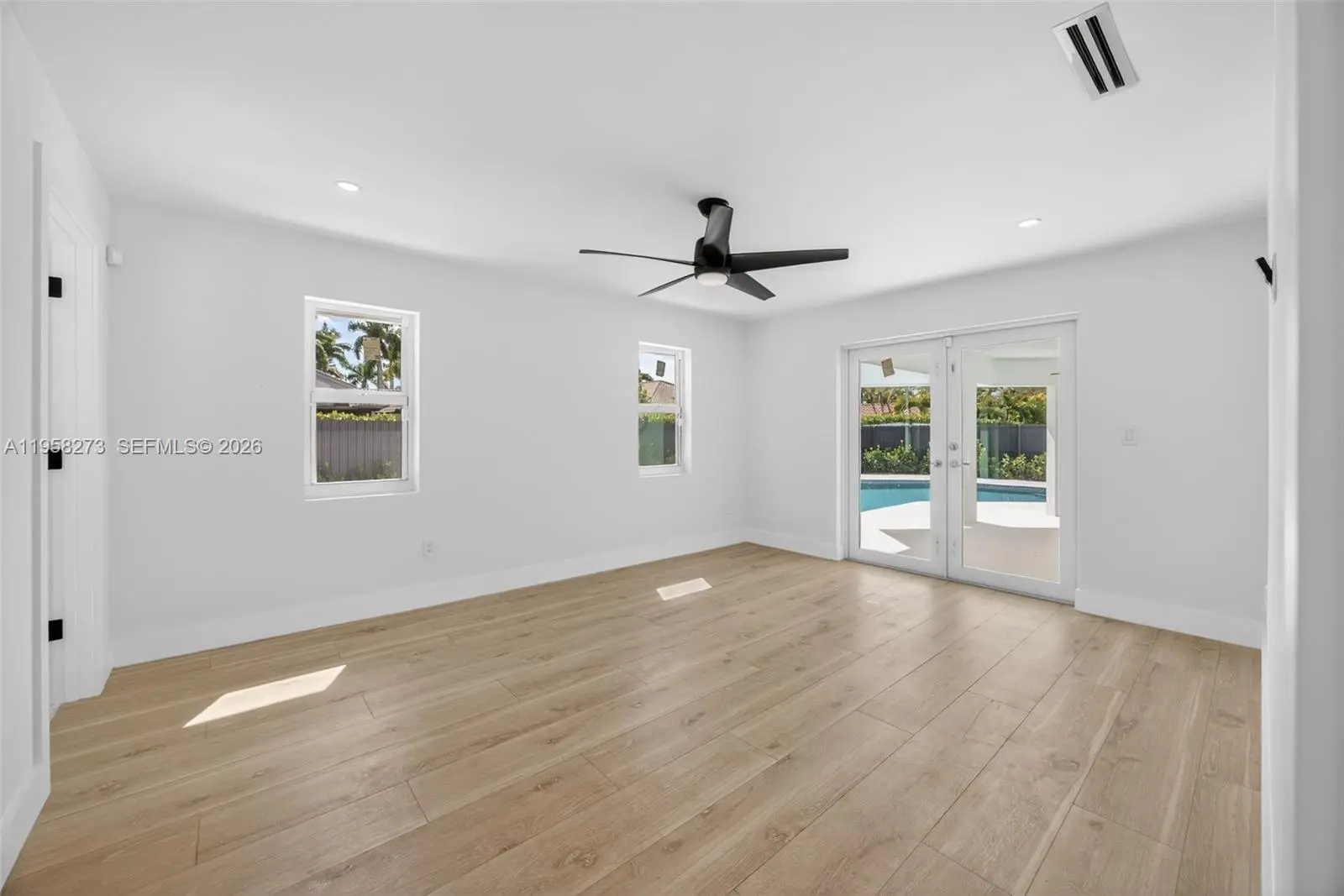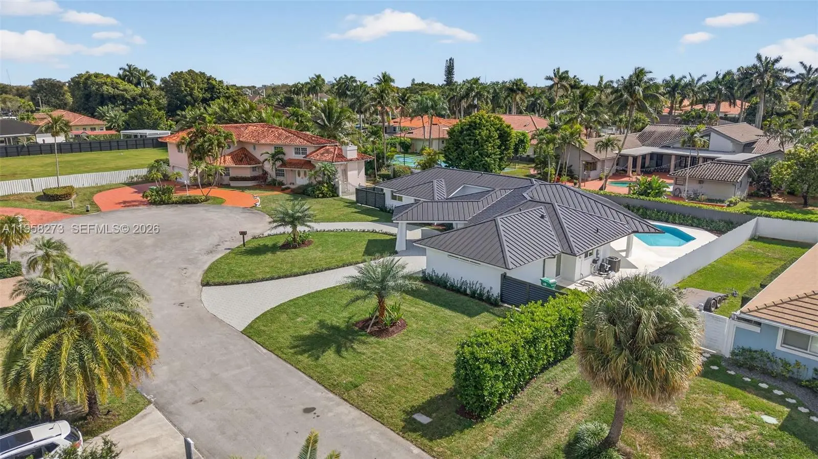This luxurious estate has just undergone a comprehensive, newly completed renovation, delivering a refined and thoroughly modern living experience. Offering 4 bedrooms and 3 full bathrooms, the home showcases elevated design, quality materials, and meticulous craftsmanship throughout. Recent improvements include a new roof, impact windows, brand-new zoned A/C system, and modern recessed lighting that enhances the clean architectural lines and bright interiors. The reimagined kitchen serves as the heart of the home, featuring top-of-the-line Jenn-Air appliances, sleek cabinetry, and contemporary finishes designed for both everyday living and entertaining. Each bathroom reflects the same cohesive, modern aesthetic. The property also features a newly epoxied double-car garage, offering both functionality and a polished finish. Outdoor living is equally impressive, highlighted by a large yard and an updated pool, creating a private, resort-style setting ideal for relaxation or gatherings. With all renovations recently completed, this move-in-ready home offers the rare opportunity to enjoy a fully modernized residence that feels like new, while retaining the character of an established home—crafted for today’s discerning buyer. Ideally situated in a highly desirable location, the home offers convenient access to major shopping destinations, highly regarded schools, and key thoroughfares, providing both everyday convenience and long-term desirability.