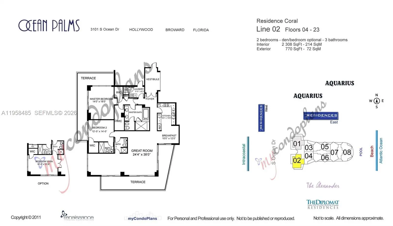 OUTSTANDING 3/3 OCEANFRONT CONDO, FLOOR TO CEILING IMPACT WINDOWS, TWO LARGE BALCONIES WITH VIEWS OF OCEAN, INTRACOASTAL AND CITY. UNIT FEATURES MARBLE FLOORS, LARGE KITCHEN WITH THERMADOR AND MIELE STAINLESS STEEL APPLIANCES, SUBZERO, BREAKFAST AREA, LAUNDRY ROOM, PRIVATE FOYER ENTRY. SPACIOUS MASTER BEDROOM WITH TWO WALK-IN-CLOSETS. OCEAN PALMS BUILDING OFFERS BEACH & POOL SERVICE, TWO-LEVEL FITNESS ROOM, SAUNA, BILLIARDS ROOM, TENNIS COURT, MEDIA ROOM, BUSINESS CENTER, CONCIERGE. CLOSE TO SHOPPING PLAZAS, FORT LAUDERDALE AIRPORT, AVENTURA MALL. NEW PUBLIX ACROSS THE STREET. ATTENTION!!UNIT OFFERS 3 PARKIG SPACE!! EASY TO SHW!!