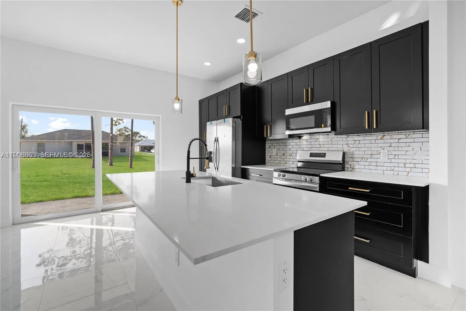 Brand new home located in one of the most desirable areas of Lehigh Acres. This beautifully designed property features 10 ft ceilings, impact windows and doors, and an open-concept layout with a split floor plan. The kitchen offers ample black shaker cabinets, quartz countertops, plenty of counter space, and brand-new stainless steel appliances. Sliding glass doors lead to a spacious backyard, perfect for enjoying Florida living and with plenty of room for a future pool. The primary bedroom includes a walk-in shower and a separate soaking tub. Convenient laundry room located near the kitchen. Ideally situated close to State Road 82 for easy commuting