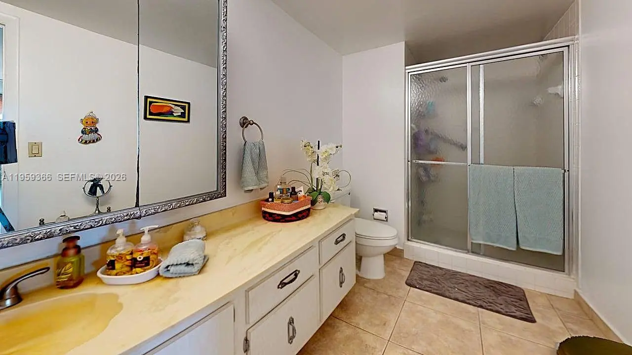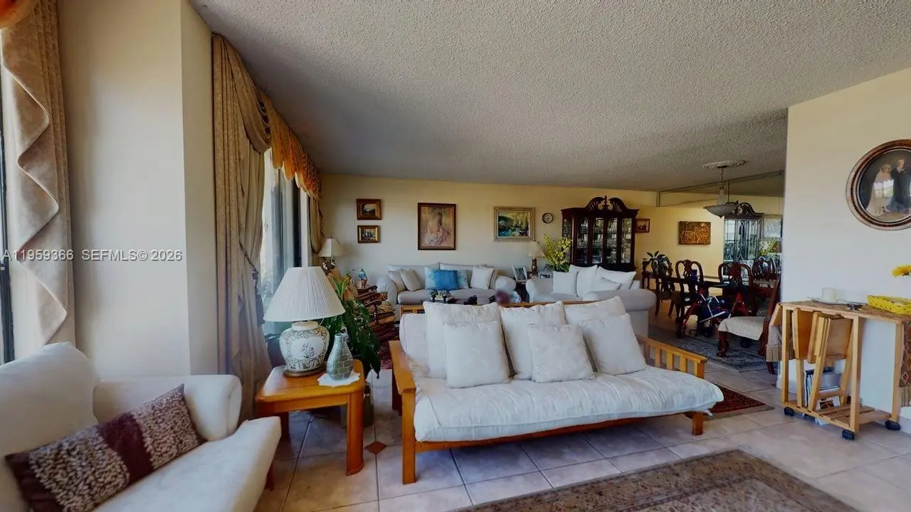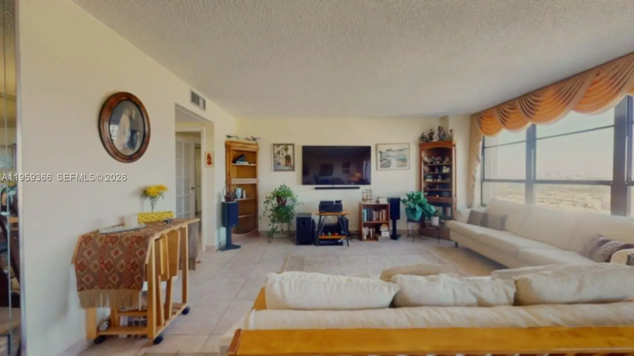Welcome to resort-style living at Olympus in Three Islands. Set on 16 acres of beautifully landscaped grounds, this high-floor unit offers views of waterways, a park, a golf course, and the city skyline. 2/2 1400 SQ. FT. The second bedroom has been opened to maximize living space and can easily be converted back to a true second bedroom. Ample closet space throughout. Built-in cabinets and dresser drawers in the primary bathroom. Updated kitchen and tile floors throughout. The best feature is that hurricane shutters protect all windows. Olympus Condo offers full security with a 24-hour doorman, two pools, a sauna, tennis courts, a marina, a BBQ area, covered parking, and a game room. Walking distance to the beach, restaurants, and shops. Minutes to Gulfstream Park and Fort Lauderdale–Hollywood International Airport.
