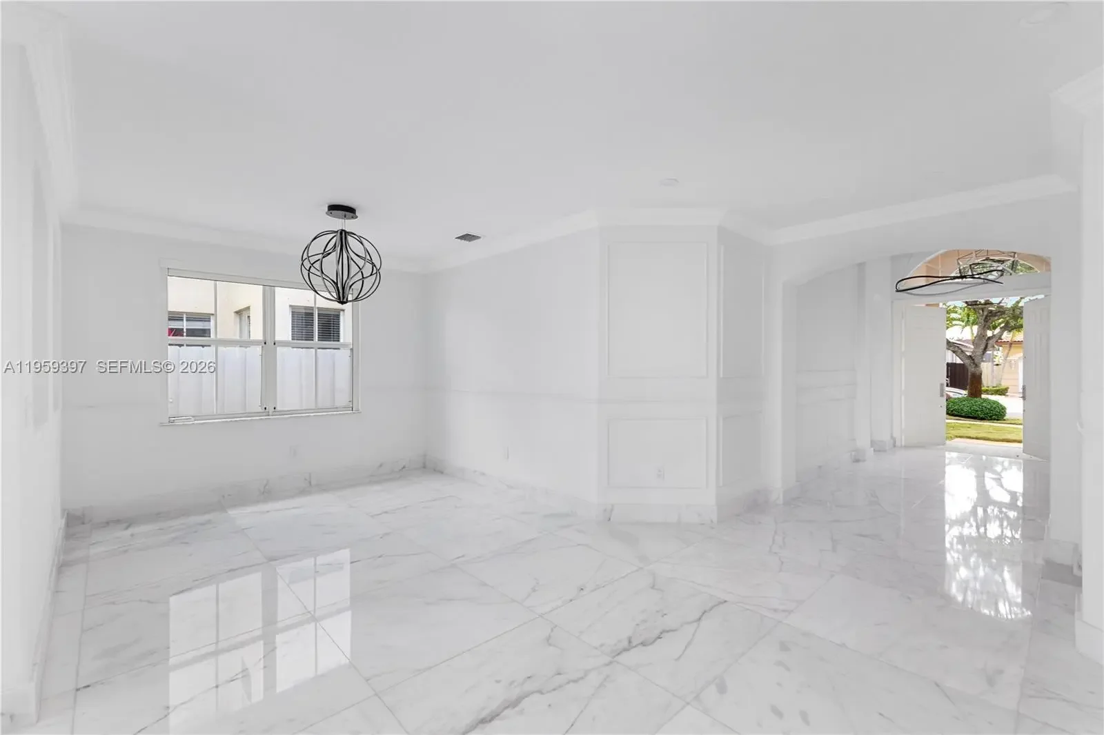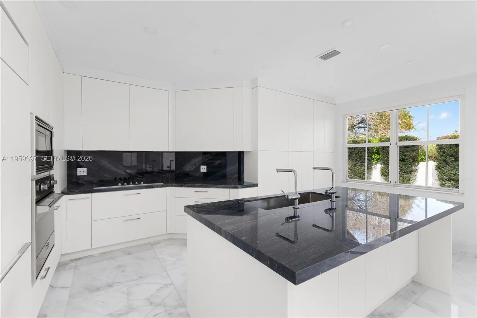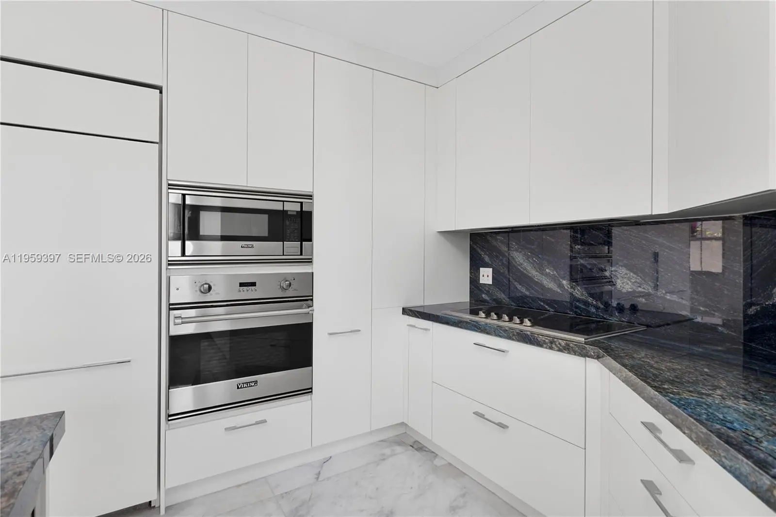 Beautifully Remodeled Home with High-End Finishes This residence features white Carrara marble flooring throughout and a modern kitchen with exotic blue quartzite countertops. The kitchen is equipped with VIKING appliances, a 36” Monogram refrigerator and a separate 36” Monogram freezer, and an automatic Grohe kitchen faucet. Bathrooms include Porcelanosa sinks, tubs, and fixtures, along with a Duravit bidet, offering a refined and spa-like feel. The home also includes LG washer and dryer, designer light fixtures, and automatic window treatments, adding comfort and sophistication. The garage appears impeccably finished with modern cabinetry and LED lighting. An elegant home showcasing quality craftsmanship and premium materials throughout.