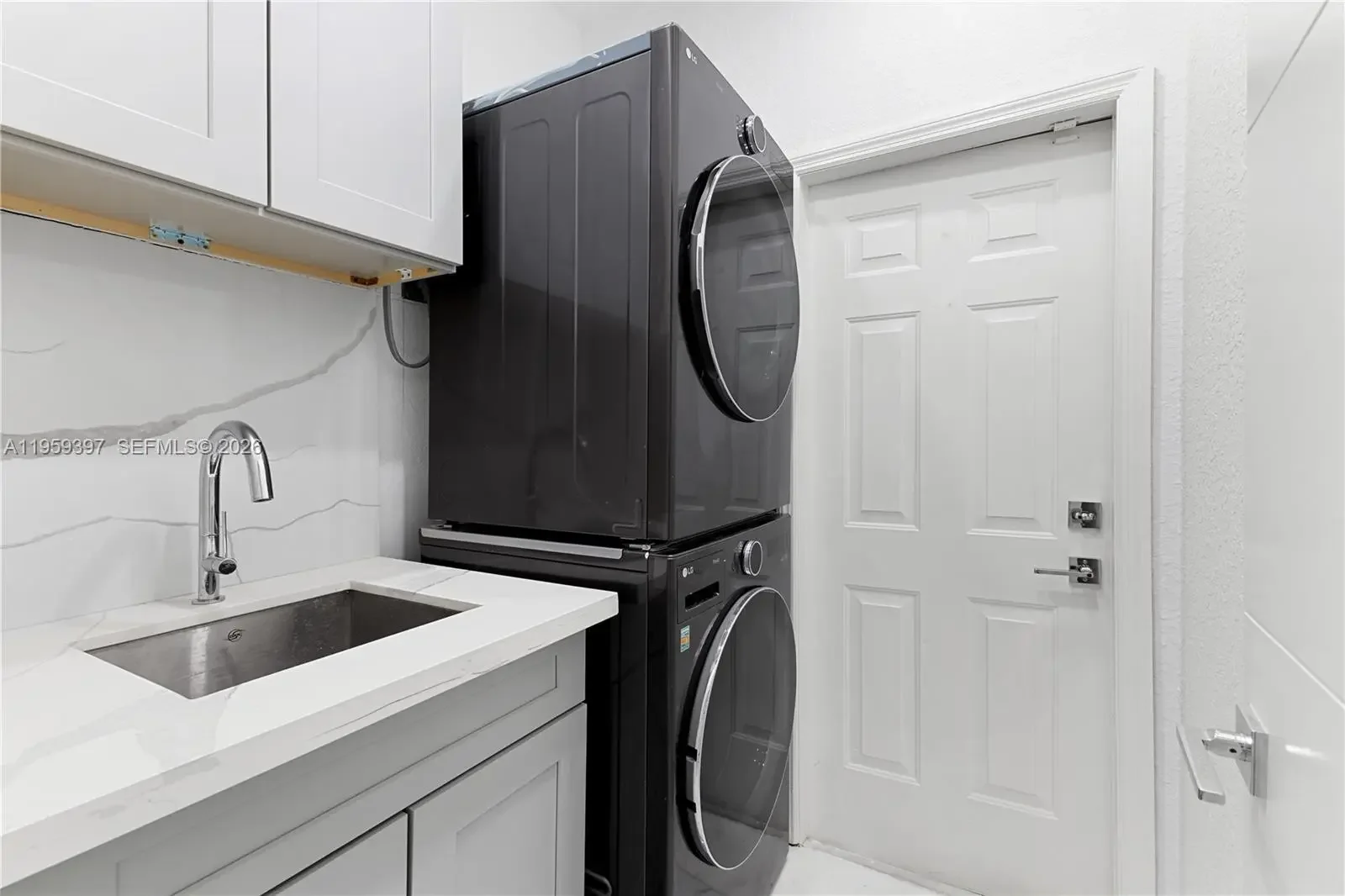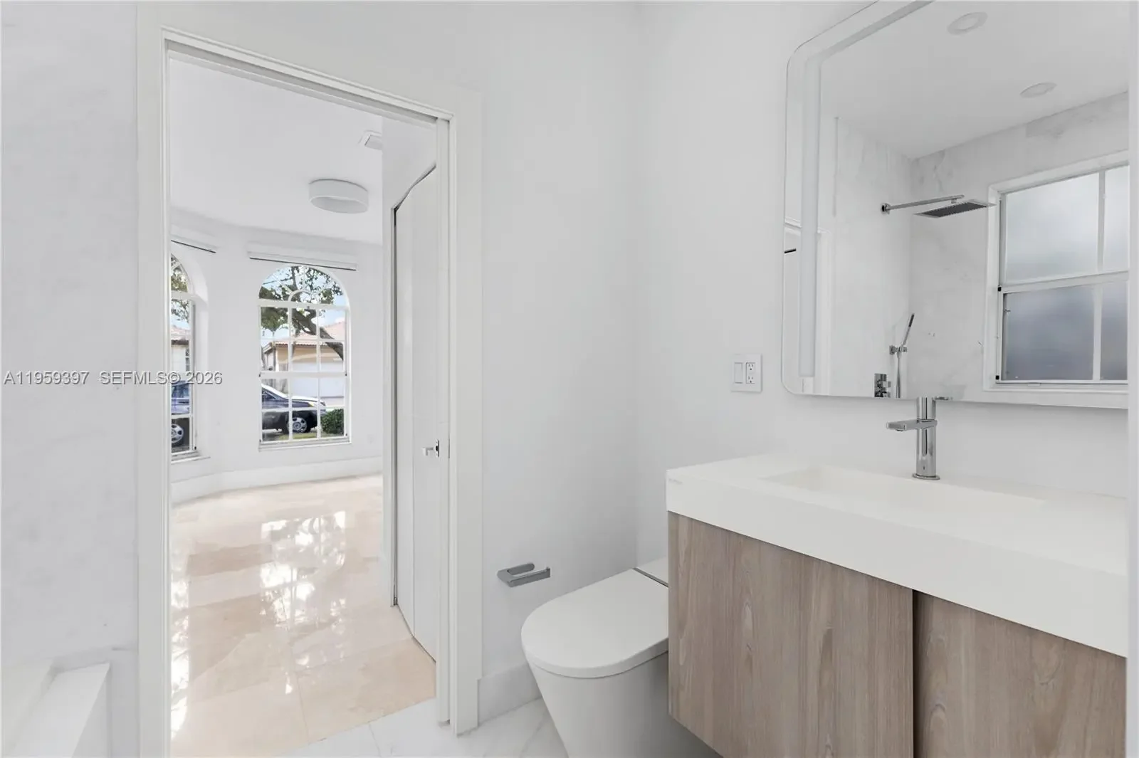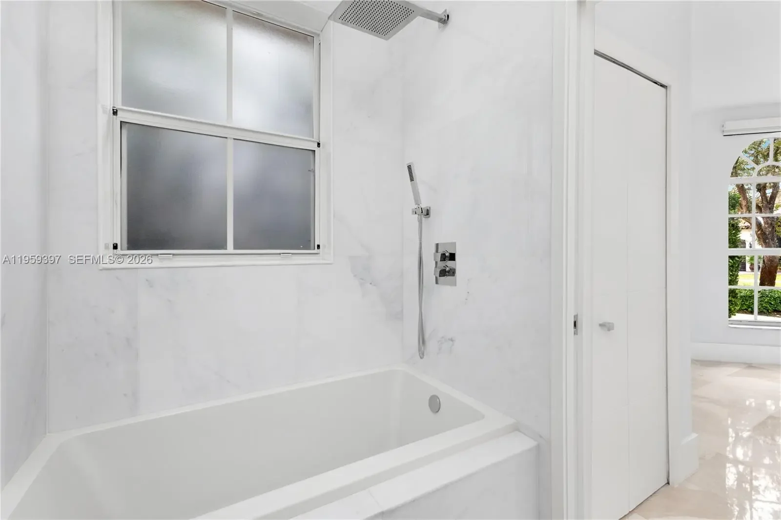 Beautifully Remodeled Home with High-End Finishes This residence features white Carrara marble flooring throughout and a modern kitchen with exotic blue quartzite countertops. The kitchen is equipped with VIKING appliances, a 36” Monogram refrigerator and a separate 36” Monogram freezer, and an automatic Grohe kitchen faucet. Bathrooms include Porcelanosa sinks, tubs, and fixtures, along with a Duravit bidet, offering a refined and spa-like feel. The home also includes LG washer and dryer, designer light fixtures, and automatic window treatments, adding comfort and sophistication. The garage appears impeccably finished with modern cabinetry and LED lighting. An elegant home showcasing quality craftsmanship and premium materials throughout.