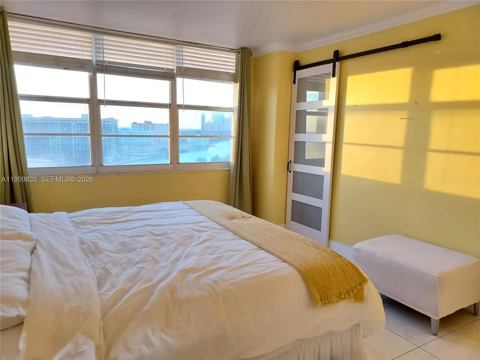 "Million dollar view" of the intracoastal waterways, ocean, city lights! Unobstructed views from the living room, oversized balcony, master bedroom windows! Enjoy the sunrise & the ocean breeze from the 14th floor! Just minutes to the beach, which is also walking distance! Unit is located on the unobstructed side of the building (facing South-no street, parking garages, rooftops blocking any views). Completely furnished home, dual closets in master BDR, contemporary barn door for the master bathroom, sleeper sofa and a convertible chair (converts into a twin size bed) in living room. All tiled. Stainless kitchen appliances. All cooking /dining ware included. Nest thermostat, electronic door lock. Min 650 credit score, no pets (HOA policy), no smoking, 1 year lease. 1 assigned parking