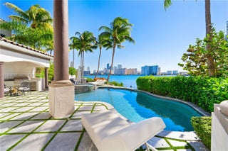 THIS HOUSE IS A STEAL... THE ONLY HOME ON OVER HALF-ACRE DOUBLE LOT WITH 240 FT OF WATERFRONTAGE IN THE PRESTIGIOUS GATED COMMUNITY OF ISLAND ESTATES IN AVENTURA! Encompassing 5 Bedrooms + 7.5 Bathrooms residence spanning 6,321 SF interior living area on an Oversized 24,772 SF LOT with serene open bay views. This exceptional home features soaring 30 FT ceilings, refined high-end finishes, a gourmet chef’s kitchen, and an elevator. The luxurious primary suite offers a sitting area and private veranda with breathtaking water views. A Resort-style tropical pool & spa create a tranquil waterfront retreat, complemented by a summer kitchen ideal for entertaining. Island Estates Residents enjoy 24-hour security and exclusive access to Prive’s five-star golf and tennis amenities, just moments away from pristine beaches, world-class dining, luxury resorts, and premier shopping.