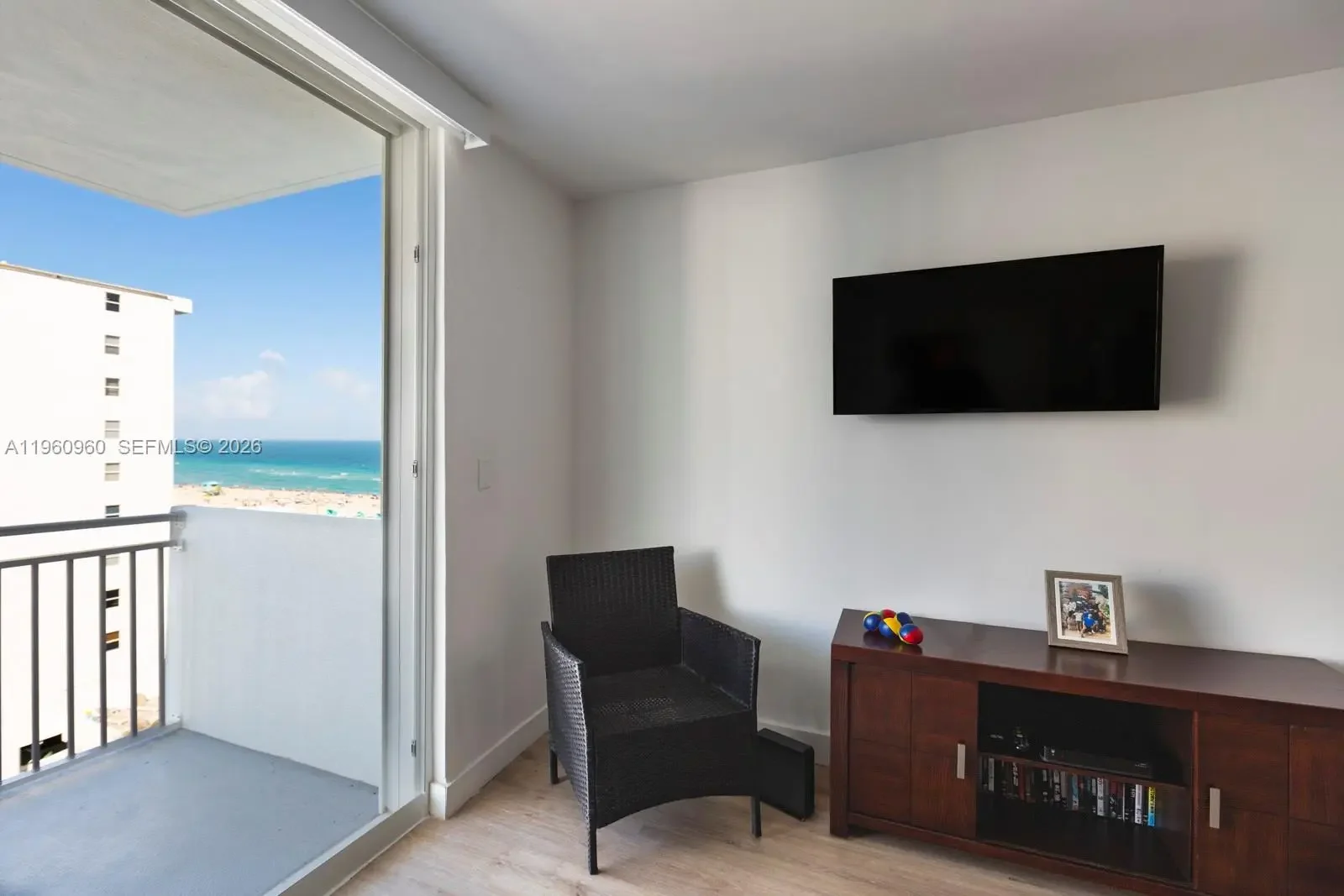 Enjoy views of the Atlantic Ocean from your private balcony in this classic Miami Beach condominium. Perfectly situated right on the sand along the iconic Ocean Drive, this 8th-floor residence offers the ultimate South Beach lifestyle—where restaurants, shops, and daily conveniences are just a short stroll away. This spacious 1-bedroom, 1-bathroom unit boasts a remodeled open kitchen, updated bathroom, wood laminate flooring, fresh paint throughout, and central A/C for year-round comfort. The generously sized balcony provides both sunrise and sunset views and is large enough to accommodate outdoor seating. Water, cable, and internet are included in the association fee, and a laundry facility is conveniently located on the same floor.