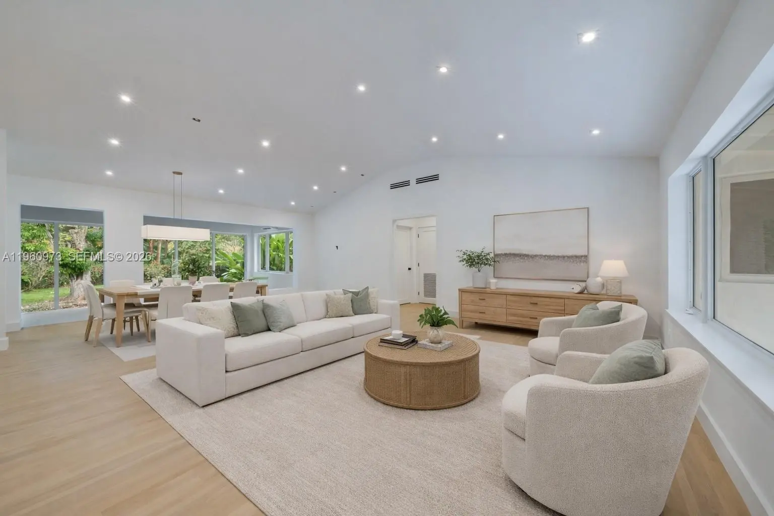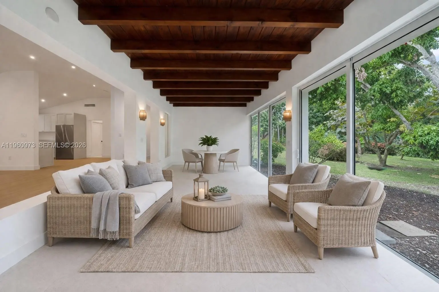 Completely gutted and remodeled home, located in the heart of Pinecrest, this inviting 4 bedroom, 2.5-bath house blends timeless charm with thoughtful updates. A combination of wood floors and coral tile adds warmth and character throughout. The spacious, light-filled living room easily accommodates both living and dining areas and flows seamlessly into a sunroom with original wooden beams and large windowed doors, creating an effortless indoor–outdoor feel. The kitchen features brand new appliances, an electric stove and a dedicated breakfast area, ideal for casual dining and everyday living. The primary suite offers an en-suite bathroom, dual vanities, and a walk-in closet. Two additional bedrooms share a full bathroom, complemented by a separate powder room and an additional 4th room suitable for a home office or bedroom. Outdoor highlights include a welcoming front porch, a large circular driveway, a one-car garage, an expansive front yard anchored by a beautiful mature tree, and a spacious backyard offering flexibility for outdoor living or future enhancements. Located within the Pinecrest Elementary School boundary, moments from Gulliver, with easy access to nearby parks and walking trails.