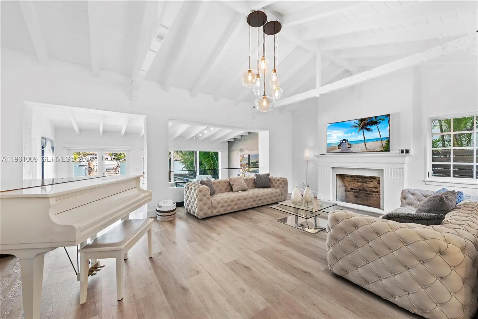 Amazing 3 bedroom/ 3 bathroom plus Den waterfront House. Located exclusive Palm Island, the 1926 contemporary home is complete with new furnishings, new baths, open kitchen, wood floors, original vaulted ceilings, new pool & boat dock and upgrades throughout. The open floor plan allows you to enjoy the stunning north facing views of a quiet waterway south of Hibiscus Island as well as the Miami & Miami Beach