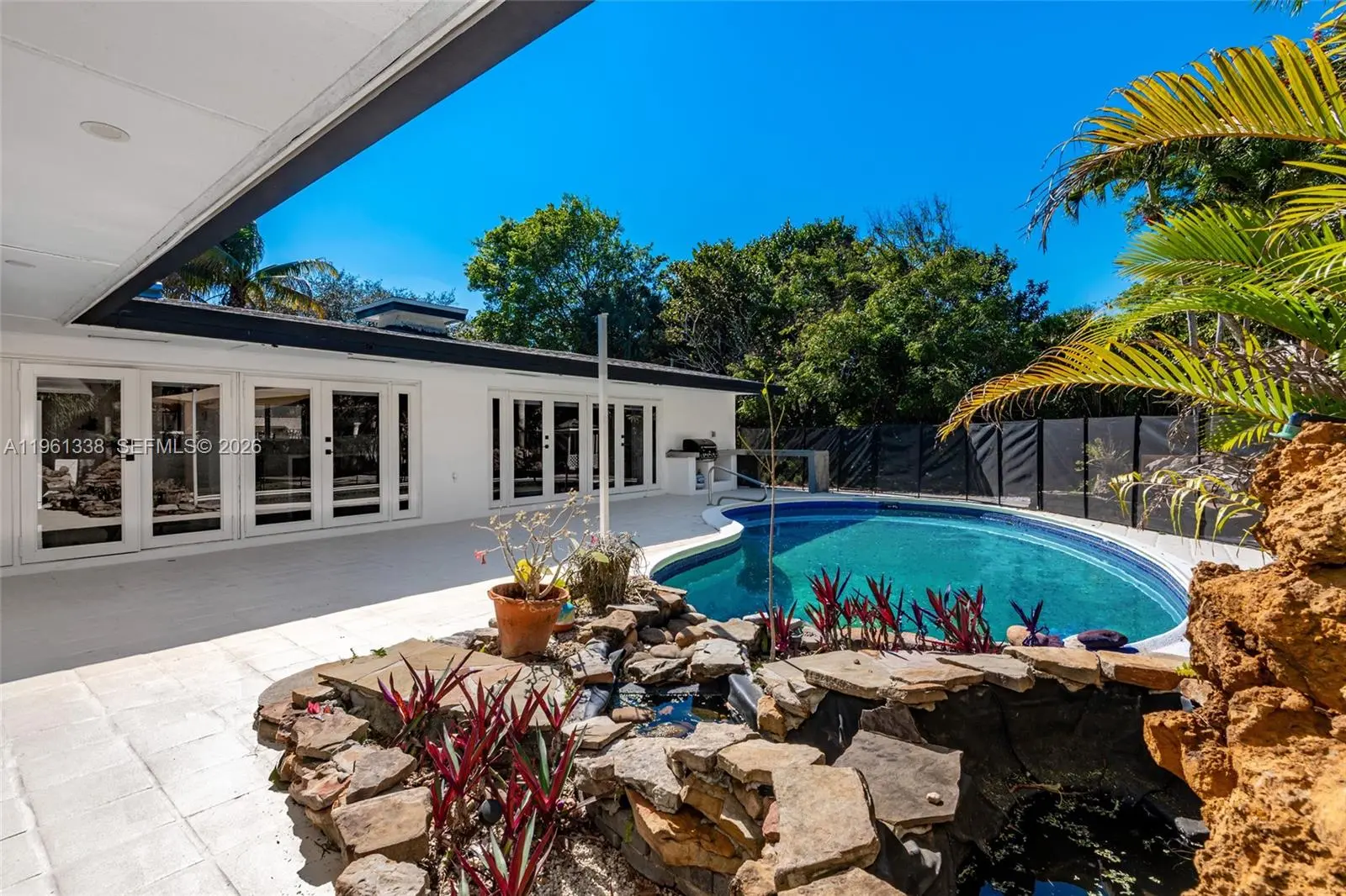A Private Luxury Estate with Income-Producing Potential. Exquisitely remodeled 3 Bed / 2 Bath PLUS additional cozy apartment ranch residence offering over 5,000 SQFT of refined living space, nestled on more than half an acre in a quiet and highly private setting. Designed for both elegance and comfort, the home showcases lush landscaped gardens, expansive green areas, and a stunning backyard retreat with a screened-in pool, waterfall feature, and serene outdoor living spaces. While beautifully updated and move-in ready, the grounds still offer the opportunity to further customize to your vision. A true standout feature is the fully permitted, oversized 1 Bed / 1 Bath private apartment, a rare and valuable asset ideal for rental income, luxury guest accommodations, Airbnb, or multigenerational living. A seamless blend of lifestyle and investment. Additional highlights include a 2-car garage, circular driveway, hurricane shutters, and generous entertaining areas throughout. An exceptional offering combining privacy, scale, and income potential opportunities like this are seldom available.