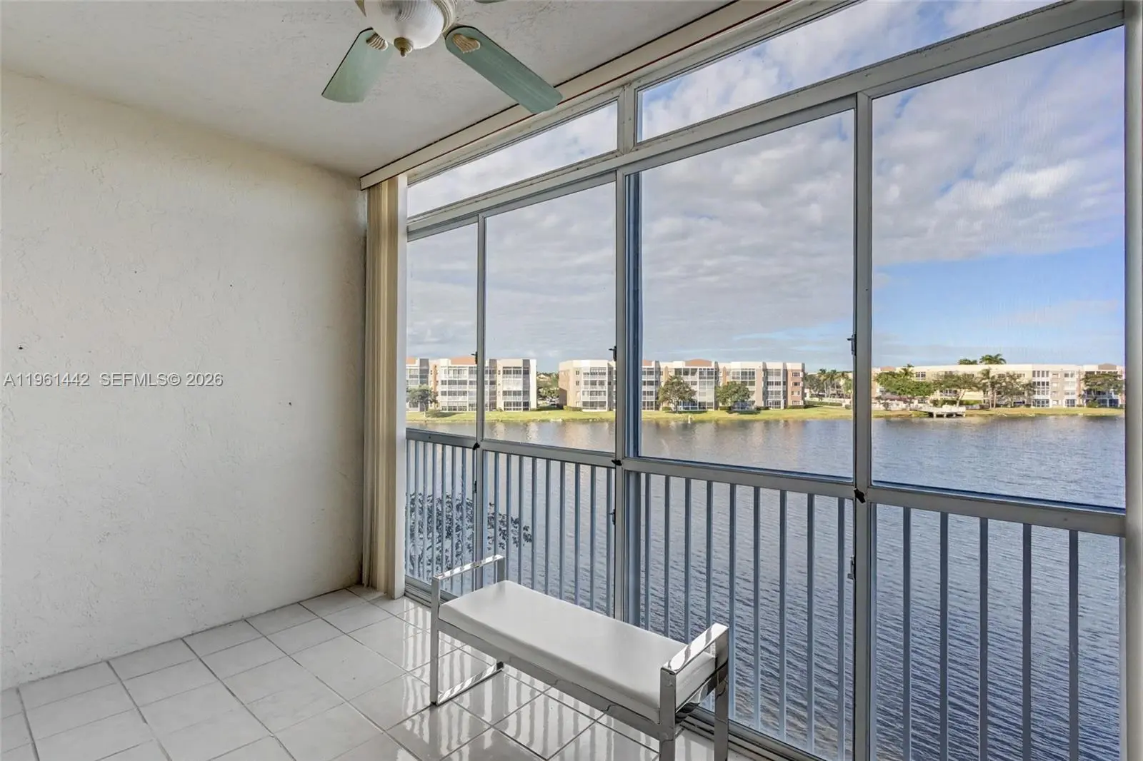 Large 2 bed/2 bath 1705 sq. ft Victoria model with gorgeous lake views from your screened balcony with acrylic sliders. Located close to elevator. Large kitchen with breakfast area. Additional enclosed room can be used as guest room or office. New A/C installed last year. Custom cabinetry built in primary walk in closet. Primary has ensuite with relaxing roman soaker tub and separate shower in primary. Hurricane impact windows and doors throughout for your protection. Clubhouse deed paid in full and association says 55+. Amenities include pickleball, tennis, 60+ clubs, gym, shuttle bus, indoor/outdoor pool, fitness classes and much more! 20% down required, credit score 700 and income $36K single and $50K couple.