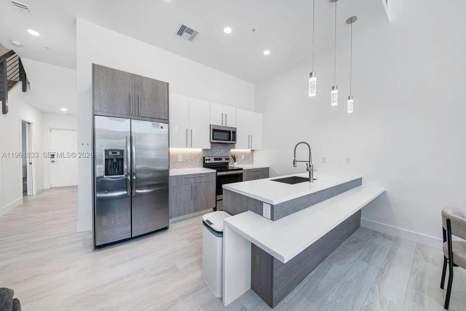 Welcome to Strata! A contemporary residence with a European-style kitchen, spacious primary suite with private balcony, and spa-like bathrooms. One of the largest floor plans in the community, featuring high ceilings (12 ft first level, 9 ft upstairs), porcelain tile flooring, and a modern designer backsplash. Located in a gated community with on-site security and resort-style amenities including a fitness center, pool, clubhouse, dog park, and playground. Prime location near, shopping, dining, and groceries, with easy access to Downtown Fort Lauderdale, Nova Southeastern University, and American Heritage School. A standout opportunity to enjoy stylish living with everyday convenience in a prime location. Wonderful opportunity for first time homebuyers or investors alike.