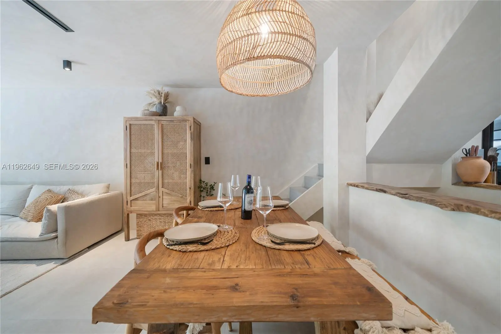 Discover a truly special 3-bedroom, 2-bathroom townhouse in the heart of Miami Beach, featuring a garage and a landscaped patio area, located in a prime South of Fifth location, one of the most iconic and well-positioned areas in the city. This residence has been thoughtfully refreshed with a cohesive, modern aesthetic inspired by natural textures and relaxed coastal elegance. Lime-washed walls, soft neutral tones, and custom finishes create a warm, serene atmosphere throughout. The open living and dining areas flow seamlessly, offering an inviting space ideal for both everyday living and entertaining. The kitchen has been tastefully updated with contemporary cabinetry, sleek countertops, and quality appliances, blending functionality with refined design. The bathrooms and storage spaces have also been carefully enhanced to maximize comfort and usability, while large-format tile flooring runs throughout for a clean, timeless look. Sold fully furnished and fully equipped, this home is truly turn-key — just bring your clothes and start enjoying Miami Beach living from day one. Every piece has been intentionally selected to complement the space, creating a cohesive, boutique-style feel. Situated just moments from the beach, top restaurants, parks, and the marina, this townhouse offers the perfect balance of tranquility and Miami Beach lifestyle. A rare opportunity to own a move-in-ready residence in a prime South of Fifth location.