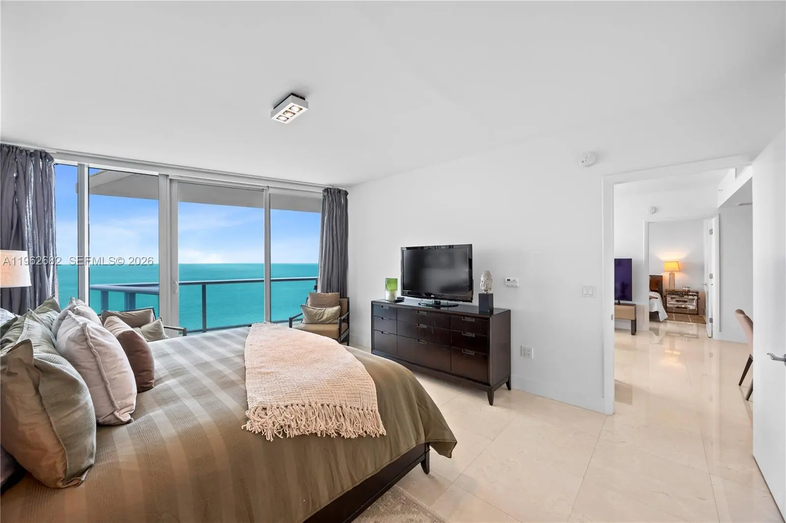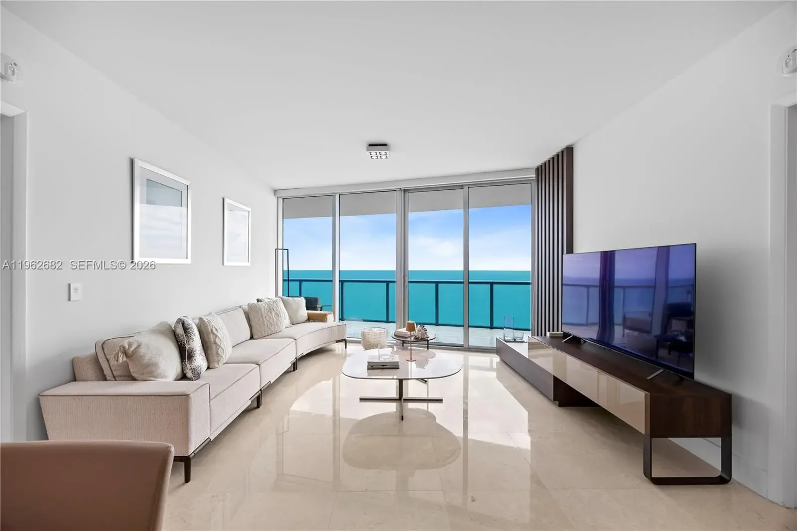 FOR RENT! 6 MOTHNS MINIMUM. Fully Furnished! Stunning 2bedroom plus den 3 bathroom direct Ocean view at Jade Beach. Open ocean view: top of the line appliances, marble floors throughout, built-in closets floor to ceiling impact glass doors and windows. Spectacular building with private elevators. Great amenities include: Party room, pool and relaxation deck, fully equipped gym, yoga room, media room, kids' room, game lounge, and conference room. Building with access to the beach. Jade Beach is a five start Oceanfront building. Unit comes with 2 parking spaces