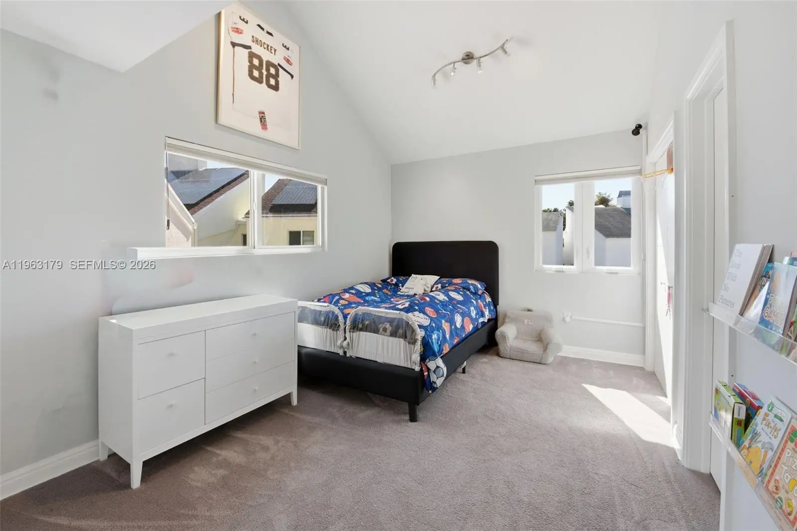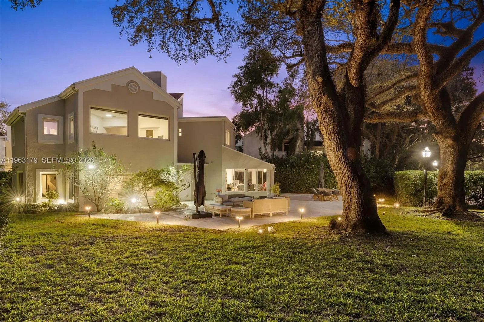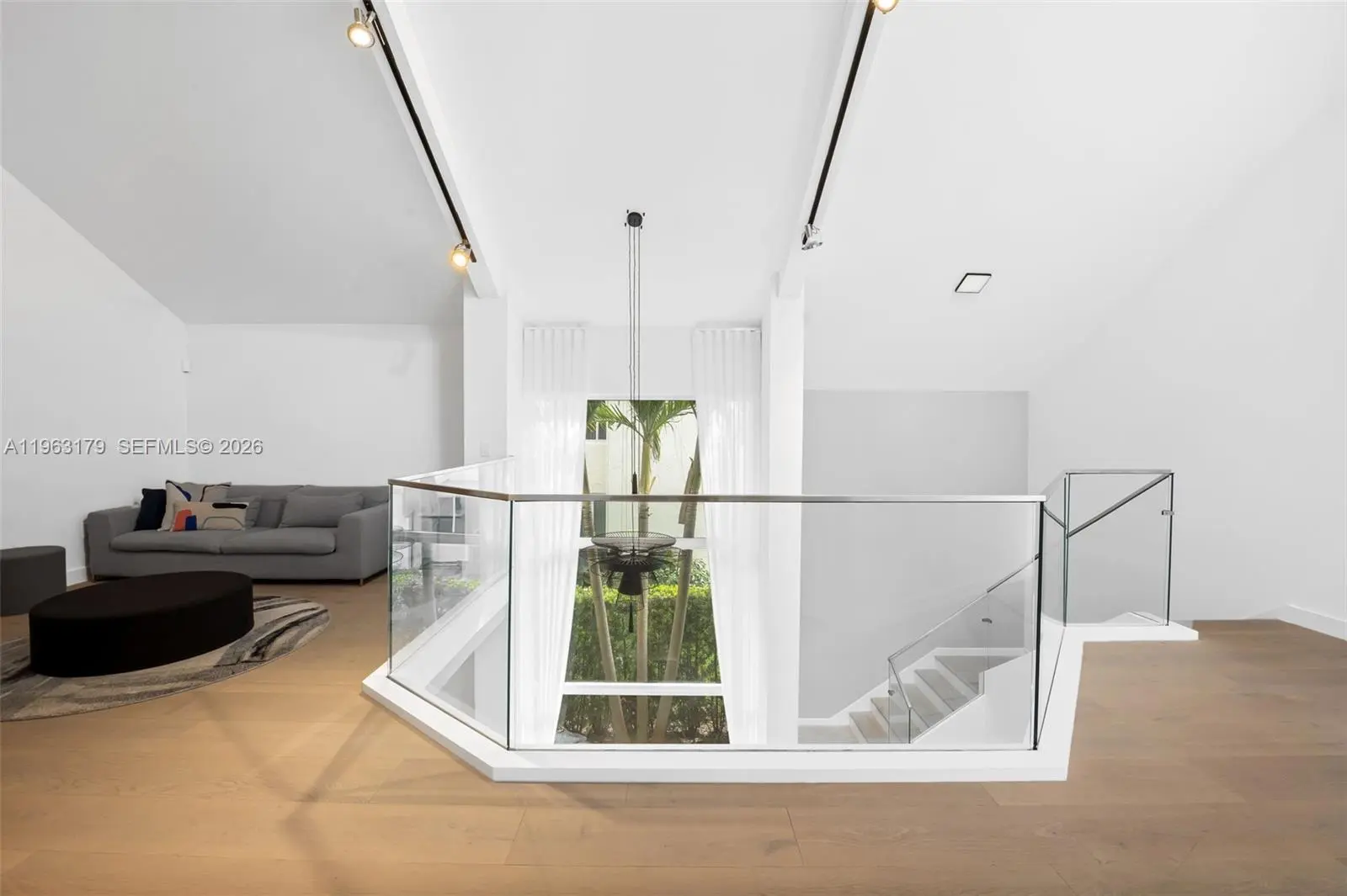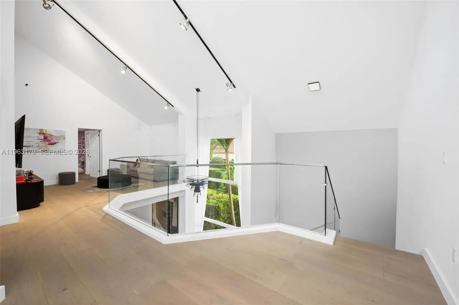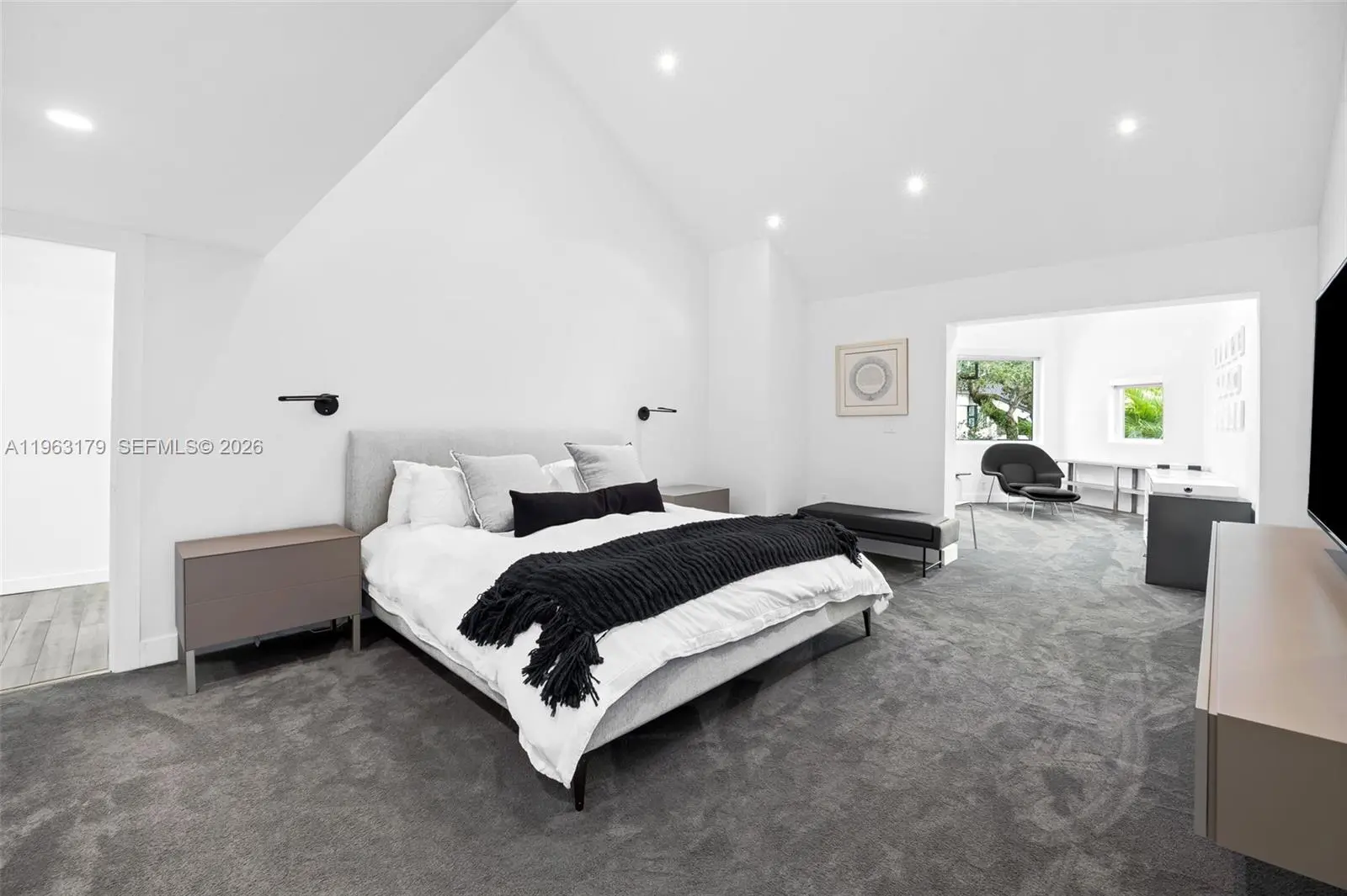 Located in The Chateaux, an exclusive gated enclave in North Miami Beach, this architecturally refined residence blends modern design, volume, privacy, and lifestyle amenities. Renovated, upgraded, and meticulously maintained, the home features soaring ceilings, exposed beams, skylights, and expansive windows that fill the interiors with natural light. Wide-plank flooring and refined finishes anchor the design-forward aesthetic. A striking floating staircase and open mezzanine add depth, while multiple living areas flow seamlessly for entertaining and everyday living. The kitchen offers custom cabinetry, integrated appliances, and generous storage, opening to adjacent dining and living spaces. The primary suite features vaulted ceilings, a spa-inspired bath, expansive custom walk-in closets, and a private sitting area ideal for a lounge or office. Secondary bedrooms are well-sized and thoughtfully designed. Outdoors, a stone patio and manicured lawn framed by mature oak trees create a serene setting. Ideally positioned within the community, the home enjoys direct access to sweeping green space and convenient proximity to the pool. Residents enjoy resort-style amenities including tennis, basketball and soccer courts, fitness center, and playground. Minutes from Aventura Mall, Bal Harbour, beaches, top schools, dining, and major thoroughfares, this exceptional residence offers space, privacy, and refined living in one of North Miami Beach’s most desirable neighborhoods.