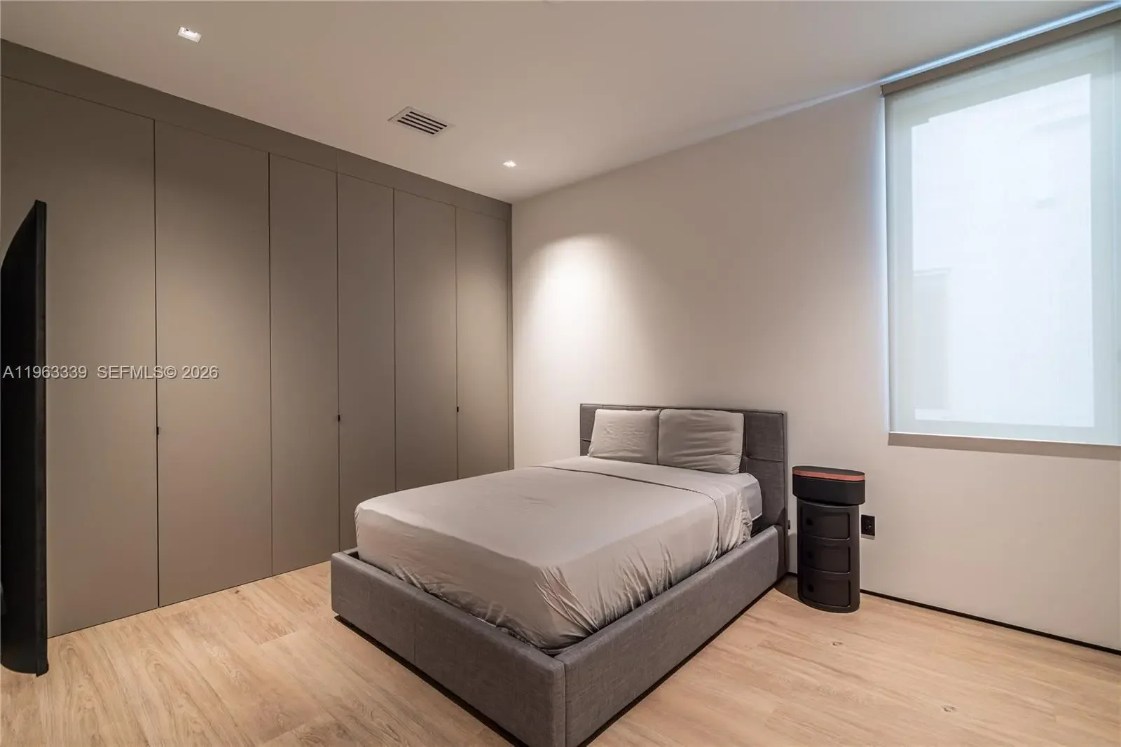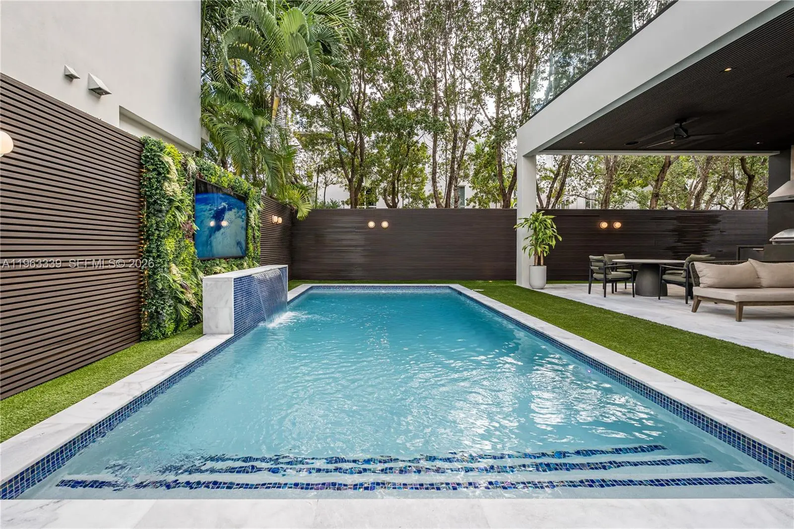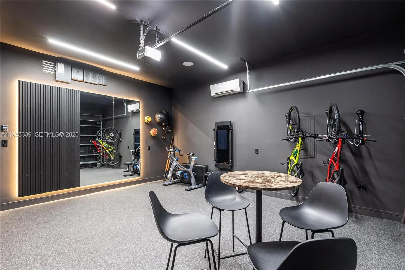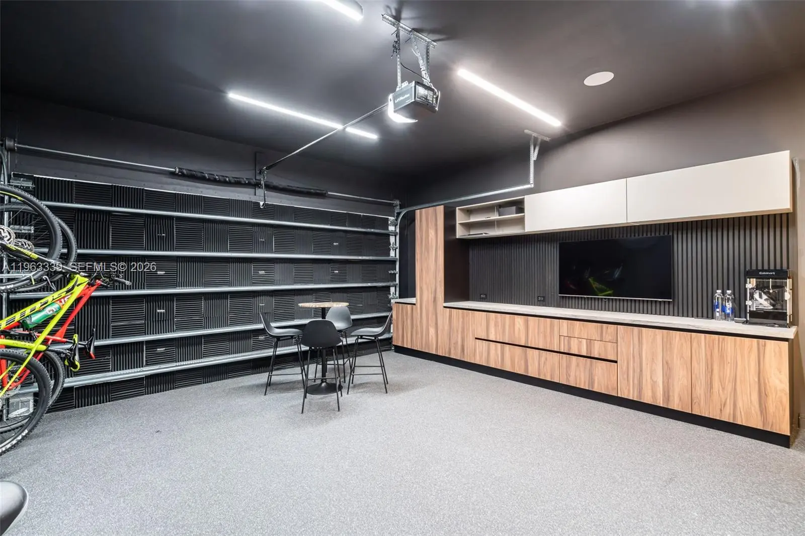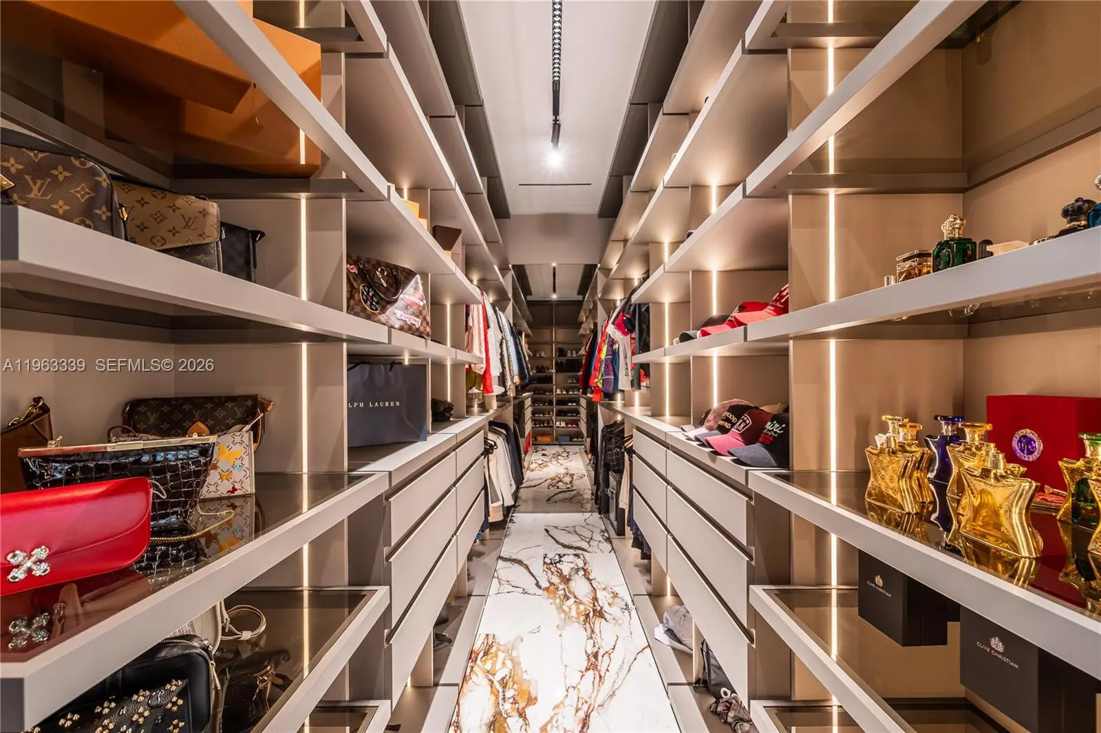 This minimalist contemporary luxury home is a masterfully designed residence curated with uncompromising attention to detail, delivering a true high-end living experience. The home features a full WAC architectural track lighting system throughout, complemented by recessed linear LEDs, ambient cove lighting, and a dramatic Flos AIM statement fixture accentuating the double-height living space. A fully integrated Smart Home system with Lutron Shades and Control4 allows seamless control of lighting, climate, and ambiance, while a whole-home speaker system provides integrated audio throughout. Interiors showcasing sculptural contemporary pieces and anchored by a striking Lexington central shelving unit by Poliform, conceived as a gallery-style architectural focal point. The residence is finished with large-format marble-design flooring and flawless Level 5 smooth wall finishes, reflecting a museum-quality execution. Custom sheer and blackout drapery systems provide refined light control and privacy throughout. The Italian Poliform kitchen is a true showpiece, featuring sleek European cabinetry, premium integrated appliances, and an oversized full-slab waterfall island—ideal for both entertaining and everyday luxury living. The primary suite offers a boutique-style custom walk-in closet with illuminated shelving. A finished garage adds versatility as a lounge, studio, or private gym. Every element of this home reflects a refined, luxury standard.