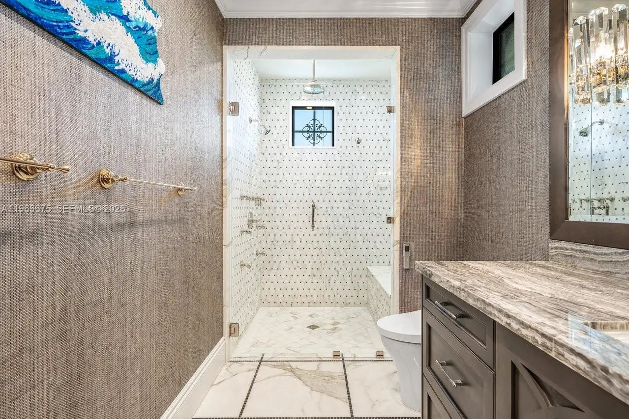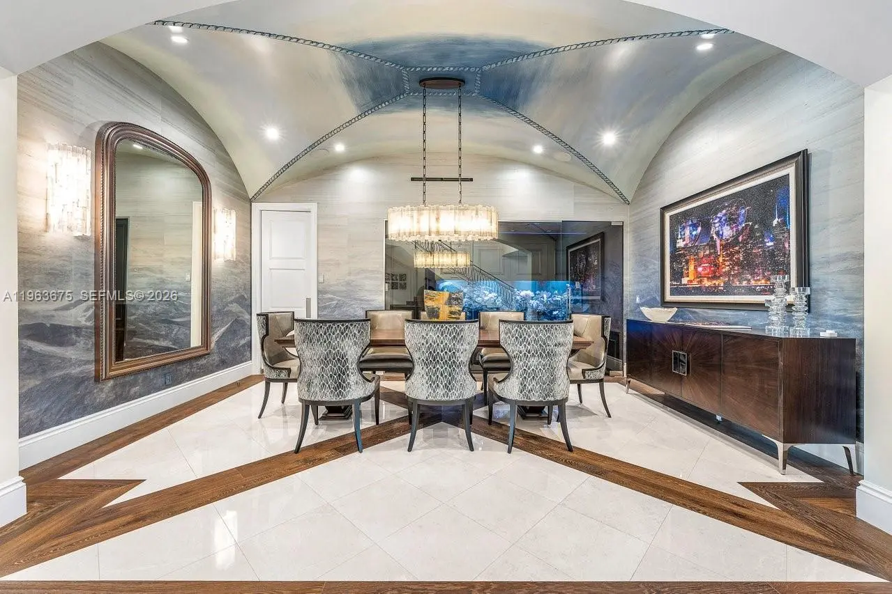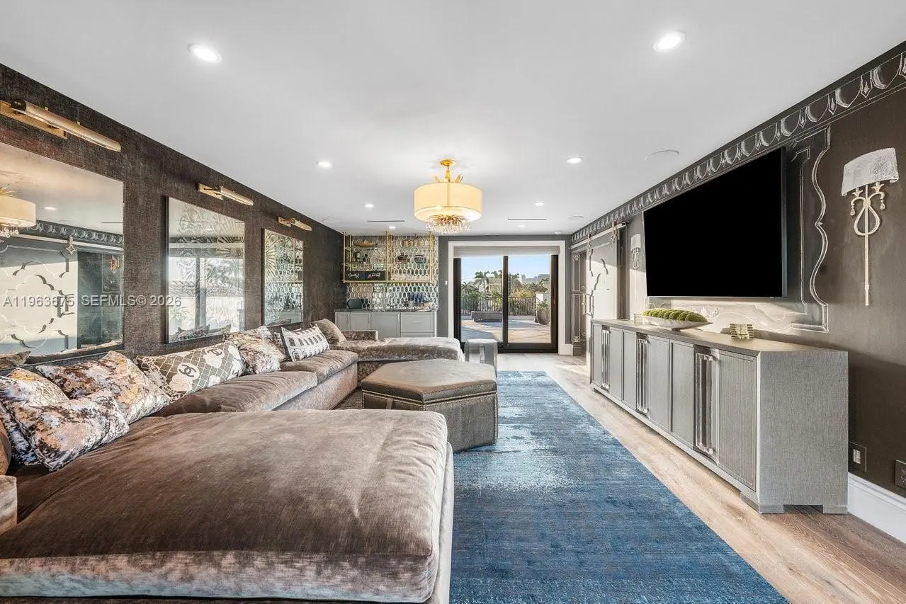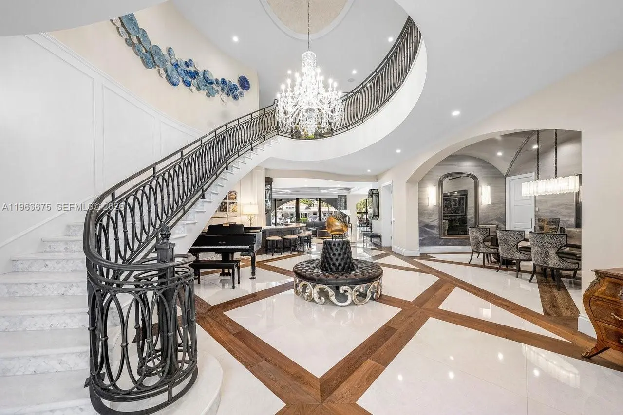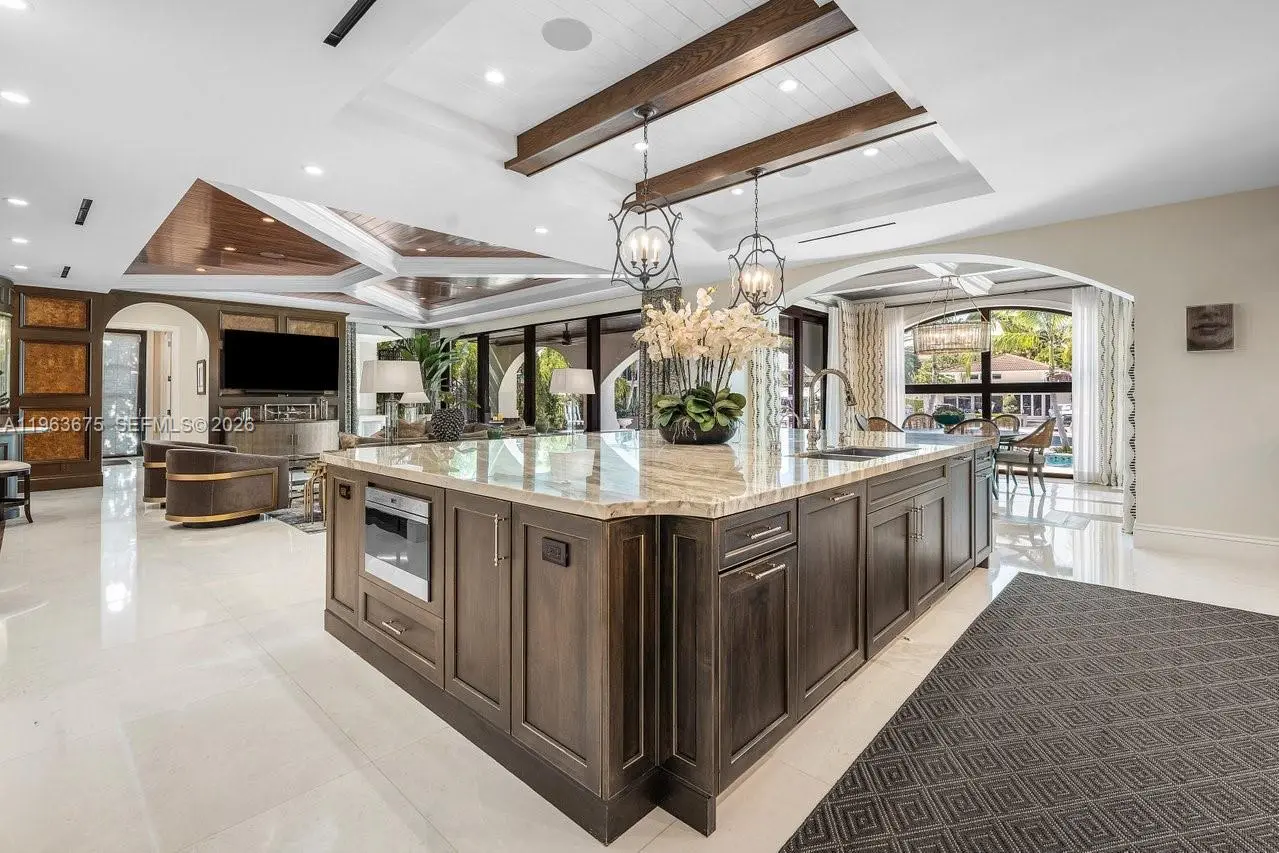 A masterfully crafted Mediterranean estate of scale, presence, and charm, this custom three-story residence commands 100 feet of prime waterfront in the heart of Las Olas Isles. Designed for grand living and entertaining alike, the home is enriched by meticulous detail, generous living areas, and timeless architectural design throughout. A dramatic two-story foyer opens to expansive formal living and dining rooms with a custom wine cellar and built-in saltwater aquarium, while the gourmet chef’s kitchen centers around a one-of-a-kind statement island. The main level reveals a breakfast room, butler’s pantry, executive office with cylindrical aquarium and custom millwork, wet bar, VIP guest suite, cabana bath, and integrated service spaces. The waterfront primary suite offers serene water views, his-and-hers spa-caliber baths, boutique-style dressing rooms, and a private balcony. Three additional ensuite guest suites, secondary laundry, media lounge, rooftop terrace with full bath and summer kitchen, saltwater pool and spa, two summer kitchens, climate-controlled garages with golf cart bay, and generator complete this exceptional Fort Lauderdale estate.