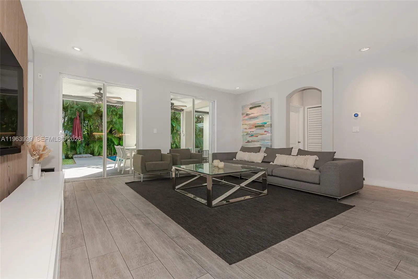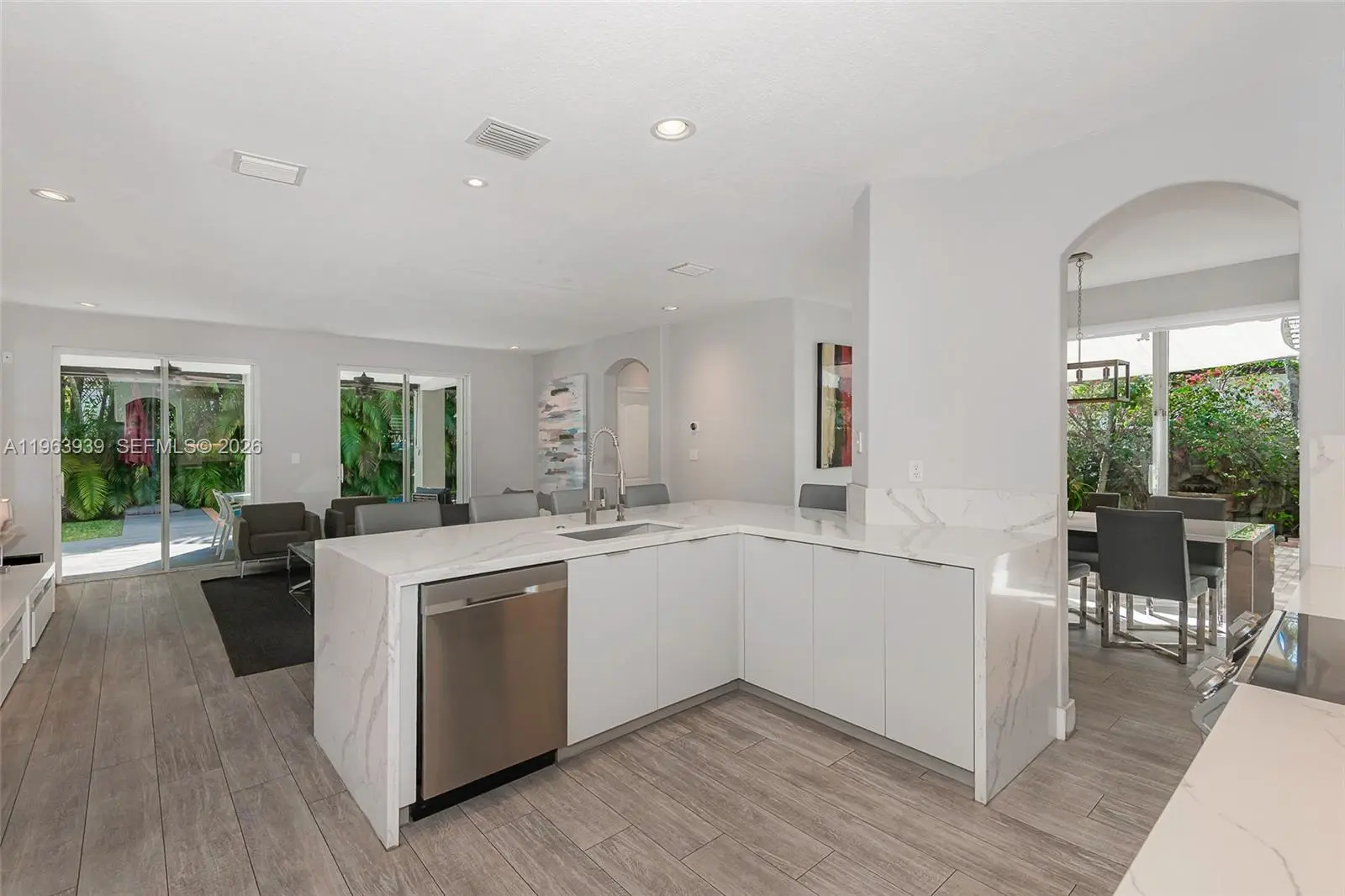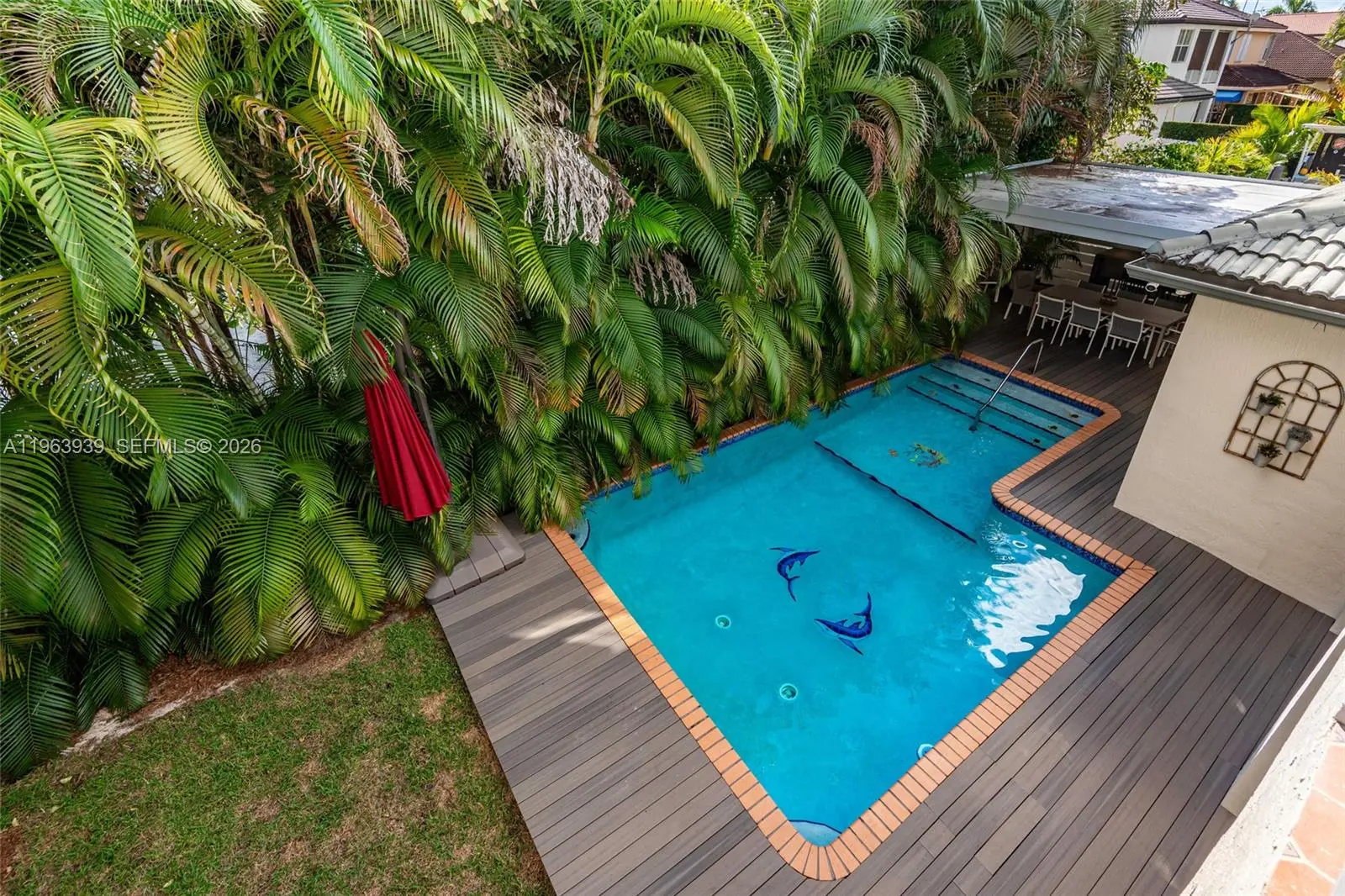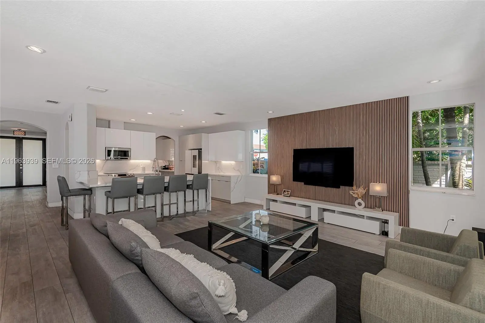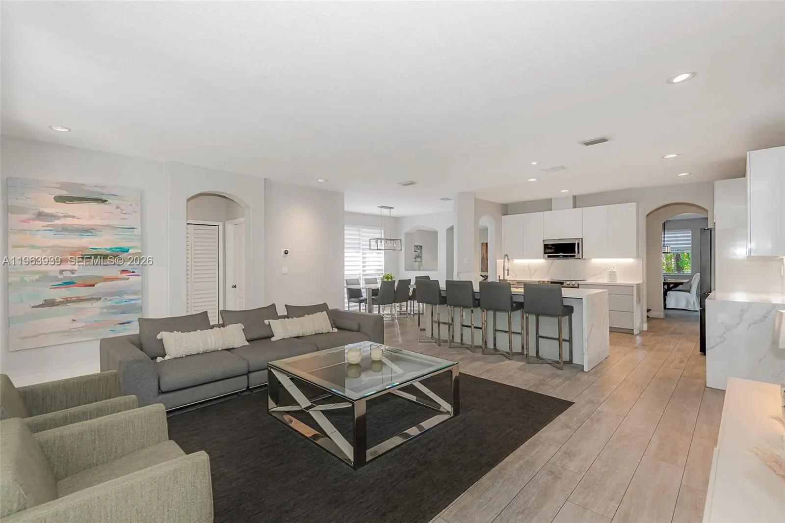 Exceptional two-story residence offering 3,470 sq ft of beautifully updated living space in a prime West Kendall location. This 5-bedroom, 3-1/2 bath home blends modern design, functional layout, and private outdoor living. Step inside to expansive open living areas featuring waterproof vinyl wood plank flooring, abundant natural light, and elegant contemporary finishes. The fully remodeled chef’s kitchen showcases sleek white cabinetry, quartz waterfall island, stainless steel appliances, designer backsplash, and generous seating — ideal for entertaining. The home offers a versatile floor plan with spacious bedrooms, updated bathrooms including a stylish modern vanity with backlit mirror, and a generous primary suite complete with sitting area and private balcony access. Outdoor living is a true highlight. The property features a covered terrace with ceiling fans, expansive deck space, and a private pool surrounded by tropical landscaping — creating a resort-style backyard perfect for entertaining or relaxing. A side garden walkway lined with palms adds privacy and charm. Features include: accordion shutters throughout, impact front door, paver driveway, dedicated laundry room, ample storage and two-car garage used as a modern private gym. Move-in ready and meticulously maintained, this home offers space, style, and privacy in one of Miami’s most desirable residential pockets near top-rated schools, shopping, and major highways. Adjacent to a protected preserve.