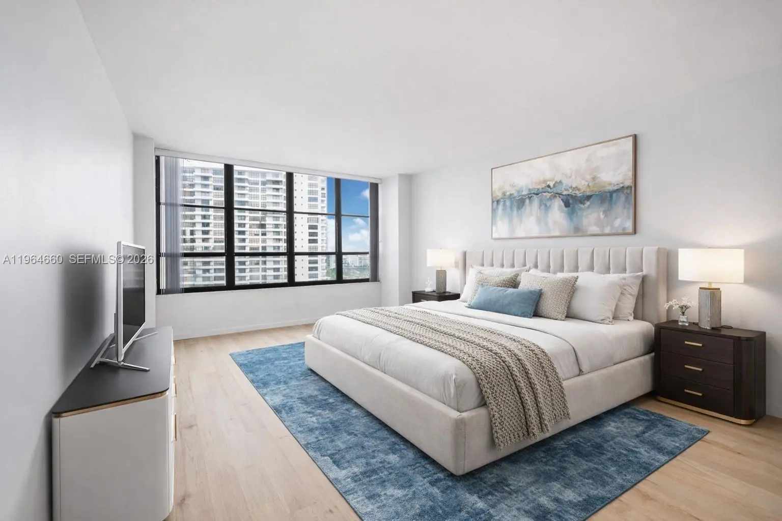 Completely remodeled residence at The Olympus Condominium with stunning marina and Intracoastal views. This 1,040 Sq ft unit offers bright, open living space featuring a brand-new kitchen, updated bathrooms, new A/C, wood floors throughout, and a spacious primary suite with a custom walk-in closet. Resort-style amenities include valet parking, two pools, tennis courts, marina access, a gym and spa, BBQ area, billiards room, and party room. Prime location just minutes from Aventura Mall and Fort Lauderdale International Airport.
