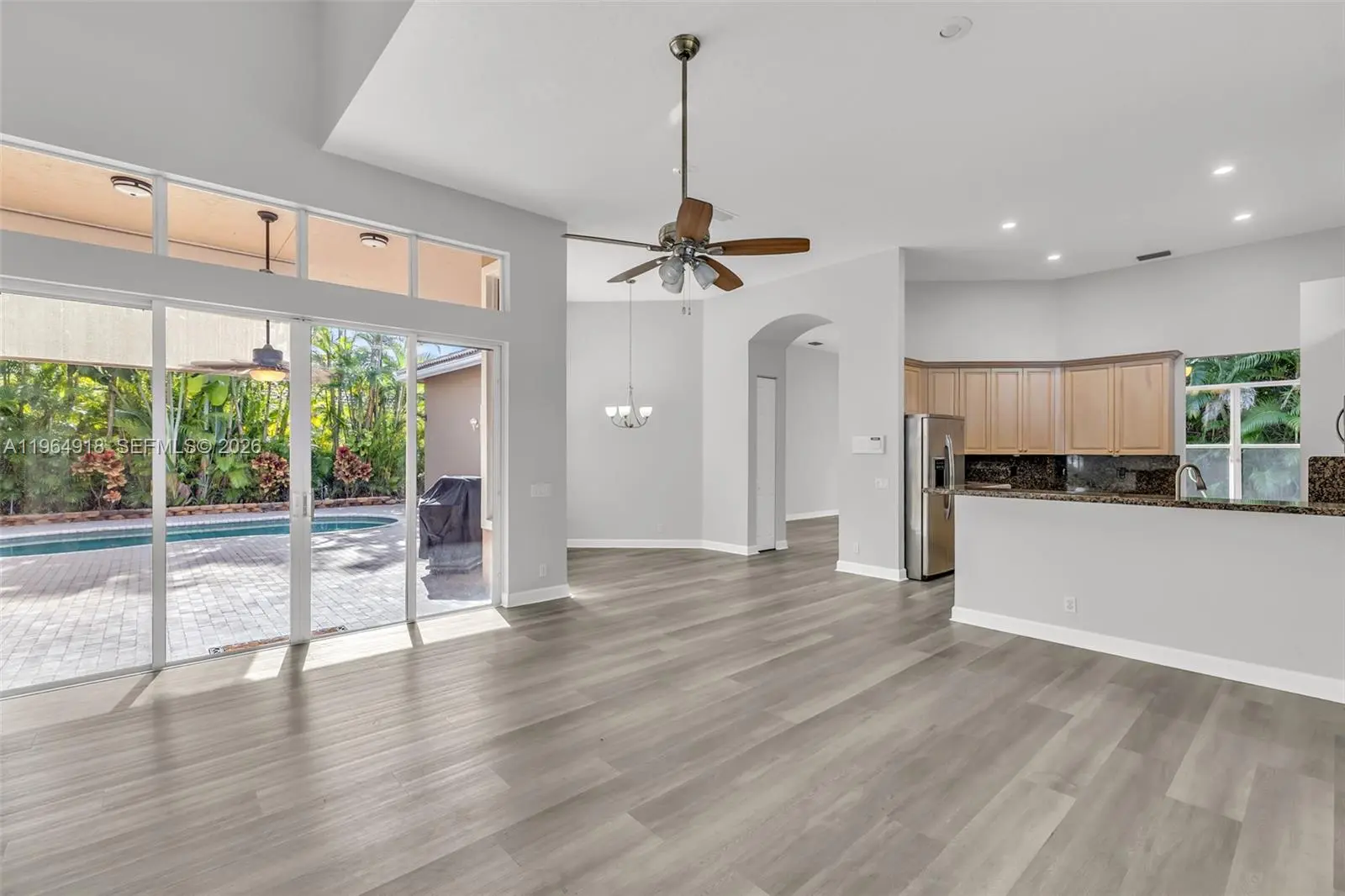 Bright, updated, and impeccably maintained family home featuring a private pool and spacious yard. Located in the gated community of Mariners Cove. This house has a beautiful layout with a cabana room and full bathroom that can be used as an office or a mother in law suite. Lawn care and Pool care is included in the rent. First month and 2 months of Security deposit is required.