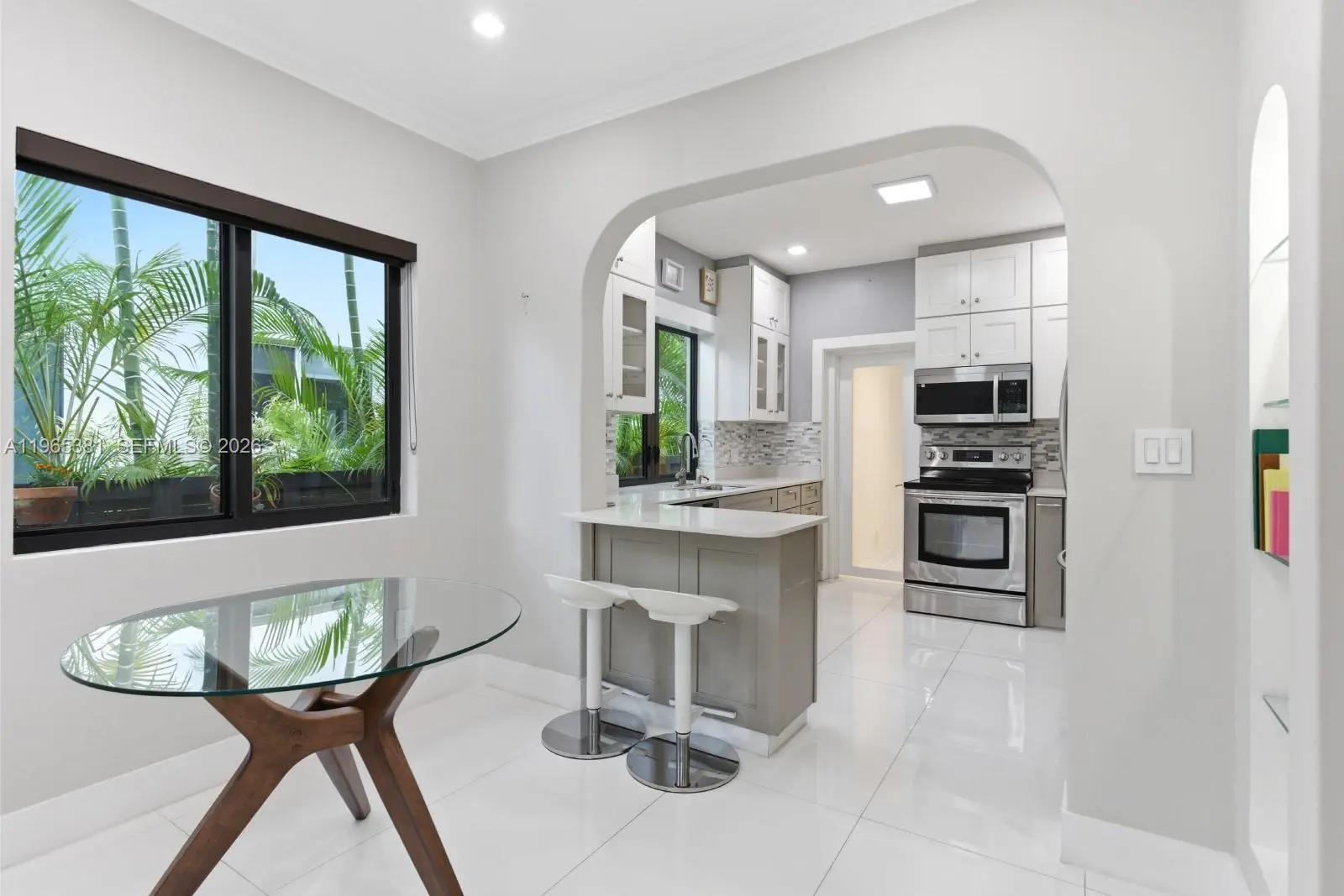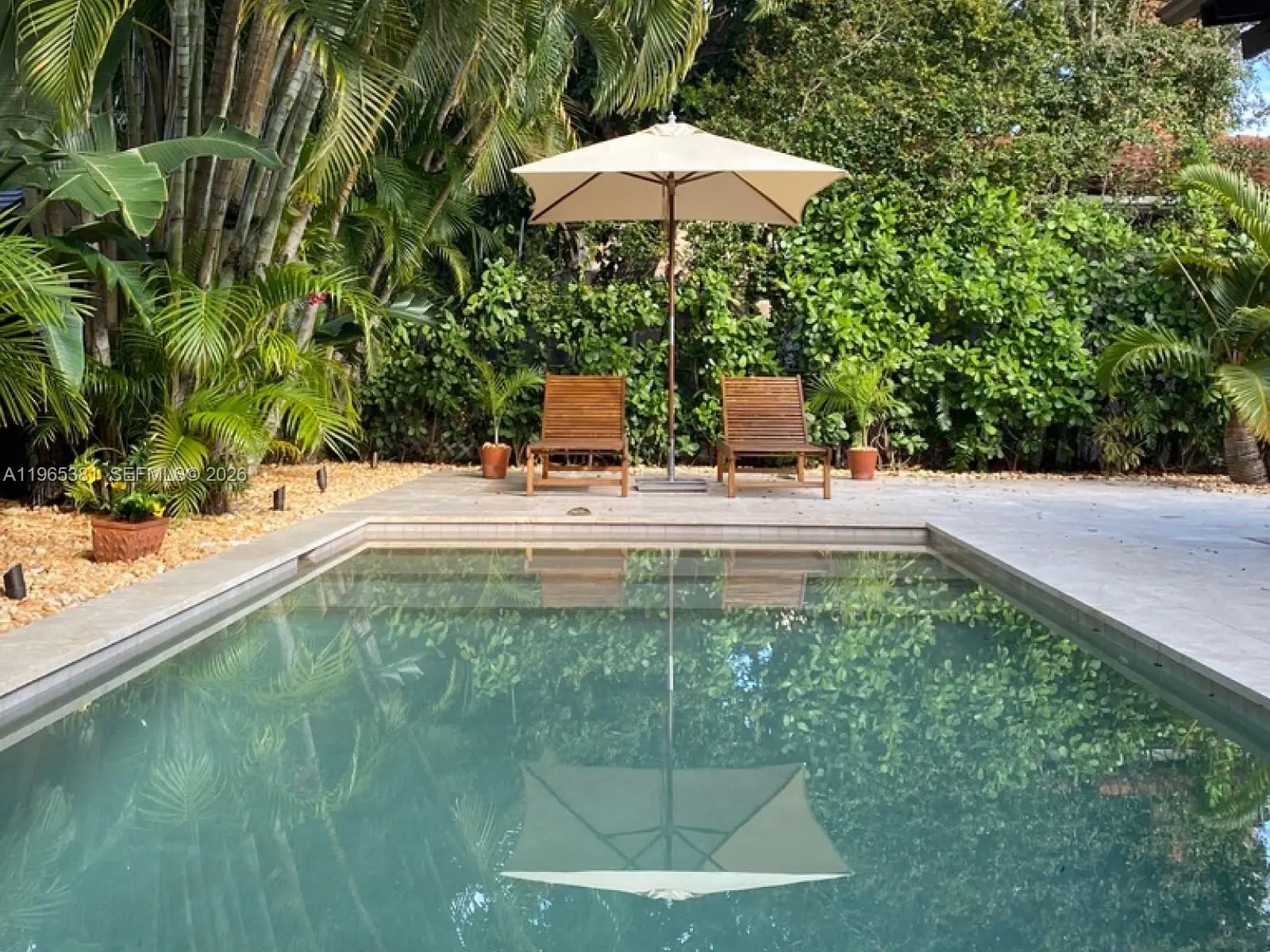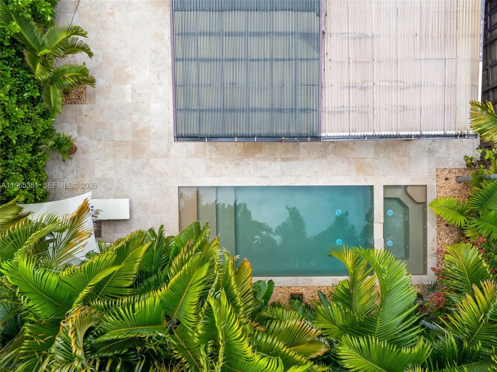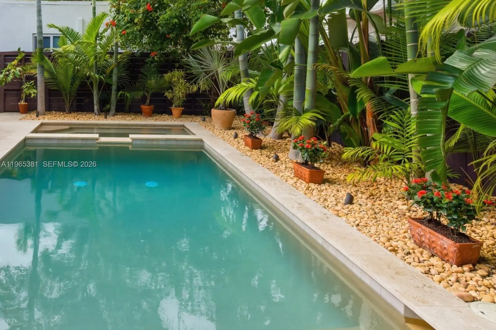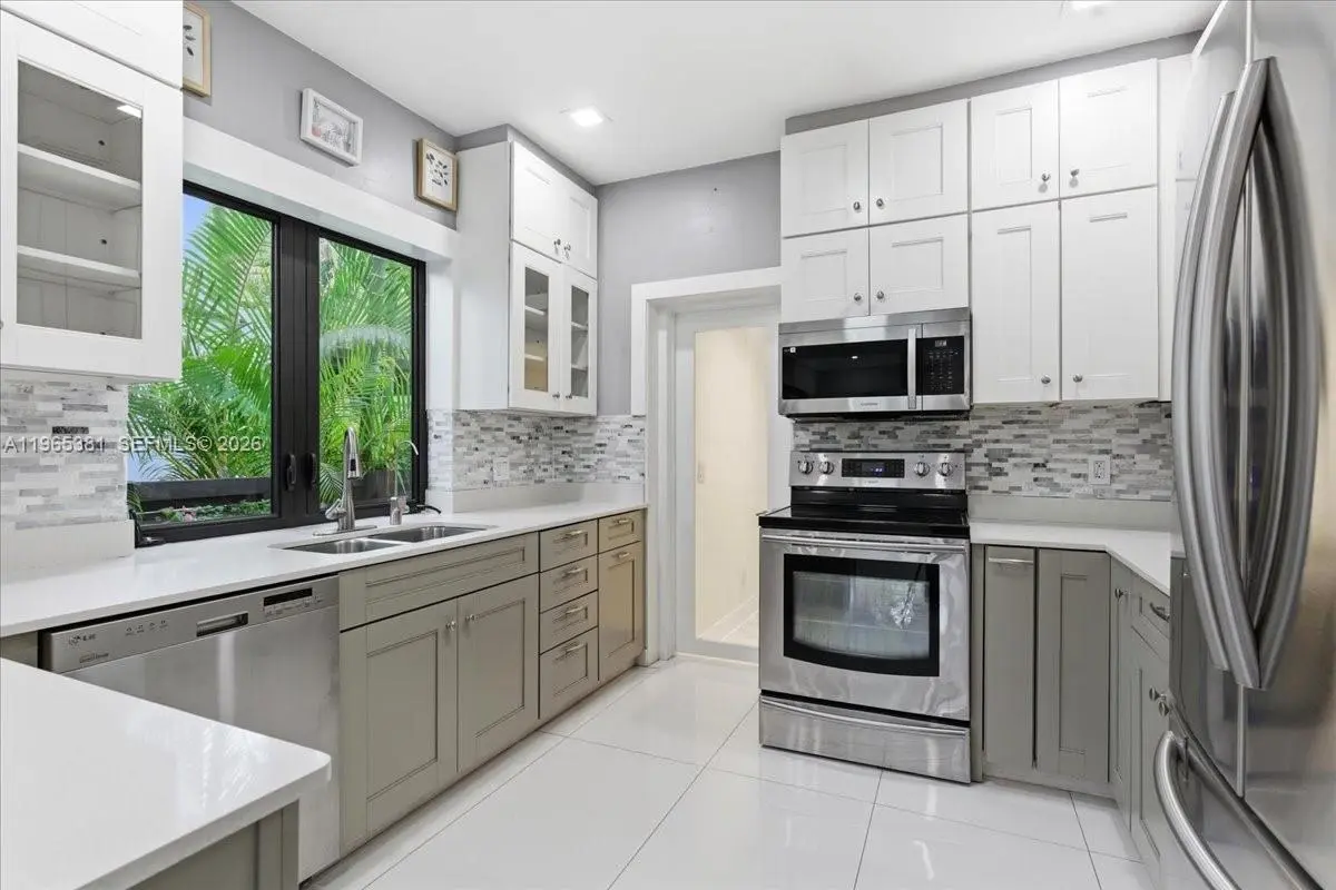 A rare jewel, this exceptional home delivers a true resort-style lifestyle rarely found in Miami. Thoughtfully curated for year-round enjoyment, the entire backyard was reimagined in 2023 into a private retreat featuring a heated saltwater pool with separate spa, with custom aggregate finish, Moroccan tile, refined stonework, lush palm landscaping, and dramatic night lighting. A pergola, summer kitchen, and covered porch create multiple outdoor living and entertaining zones—offering the kind of effortless indoor-outdoor lifestyle typically reserved for luxury resorts. Beyond the setting, the home offers meaningful, high-value improvements that elevate comfort and peace of mind. The property sits on naturally high elevation-no flood zone-with a dedicated drainage system. Inside, ceilings are higher than typical for homes of this era, complemented by a thoughtfully remodeled interior, modern linear slot diffusers air vents, and zoned comfort with supplemental mini-split AC units. Additional upgrades include a 2015 roof, 100% impact windows, impact front door and patio slider, upgraded electrical panel with surge protection, improved plumbing, resealed driveway, reverse-osmosis kitchen water filtration, and a fully automated pool and spa system. Truly this home has been impeccably maintained, cared for and loved. A rare opportunity for buyers seeking a refined, turnkey retreat delivering privacy, quality, and a true Florida resort experience.