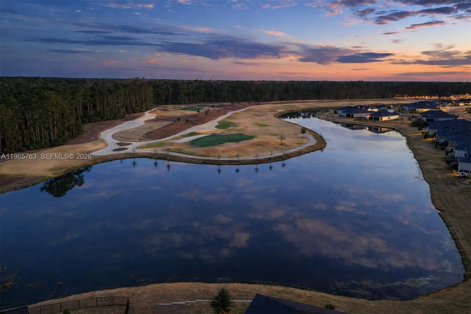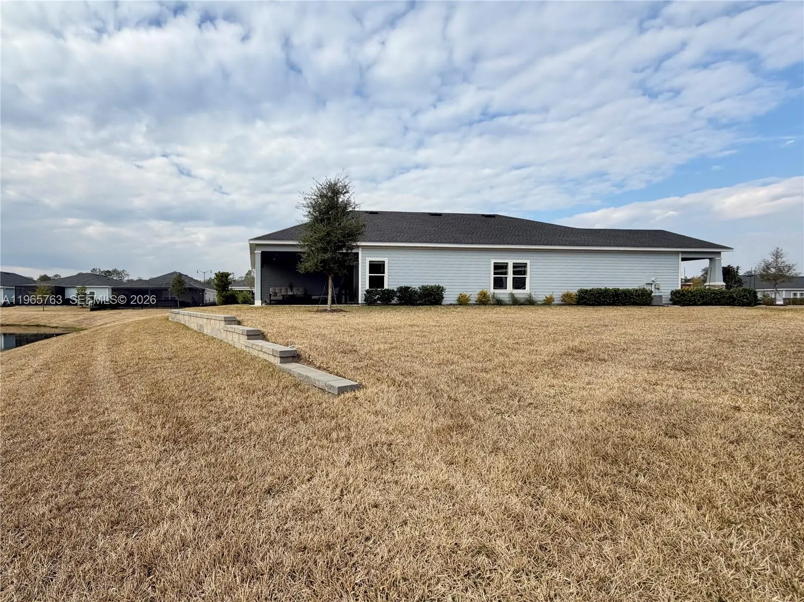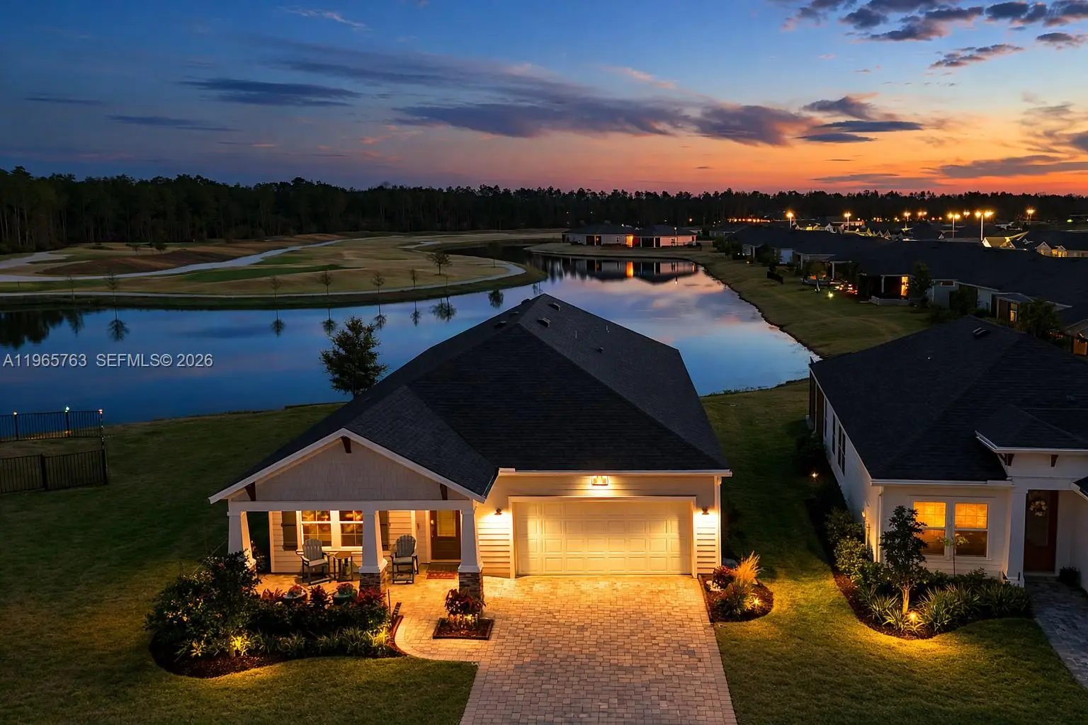 LOT 237 – PREMIUM WATERFRONT AND GOLF POSITIONING IN STILLWATER Over 108 feet of waterfront and a long water corridor extend from the front entry through the backyard to the next cul-de-sac. Lot 237 offers rare wraparound exposure and a large side yard framed by seven windows, a configuration not typical within the community. Positioned along the 16th green and 17th tee box, this homesite delivers openness, privacy, and extended sightlines rarely achieved in golf communities. Unlike interior lots compressed between neighboring homes, it preserves meaningful separation on multiple sides. Open space and enhanced privacy define this setting. Extended sightlines and preserved spacing distinguish the lot. The cul-de-sac placement further reduces through traffic and reinforces quiet positioning. Located in Stillwater Golf and Country Club, a 2022 championship community in St. Johns featuring an 18-hole course with unlimited golf included in the HOA. Approximately 4 miles west of I-95 and Durbin Park, residents enjoy a clubhouse with restaurant and bar. The Sierra floor plan offers 2,295 sq ft, a 17.6-ft-wide family room, 4 bedrooms, and 2.5 baths. Features include a front patio, rear lanai, 9-ft ceilings, and a gourmet kitchen with oversized island. Upgrades include a 4-stage whole-house Kind water system with UV, Lennox PureAir filtration, oversized garage with walkable attic, rear retaining wall, and over $30K in improvements.
