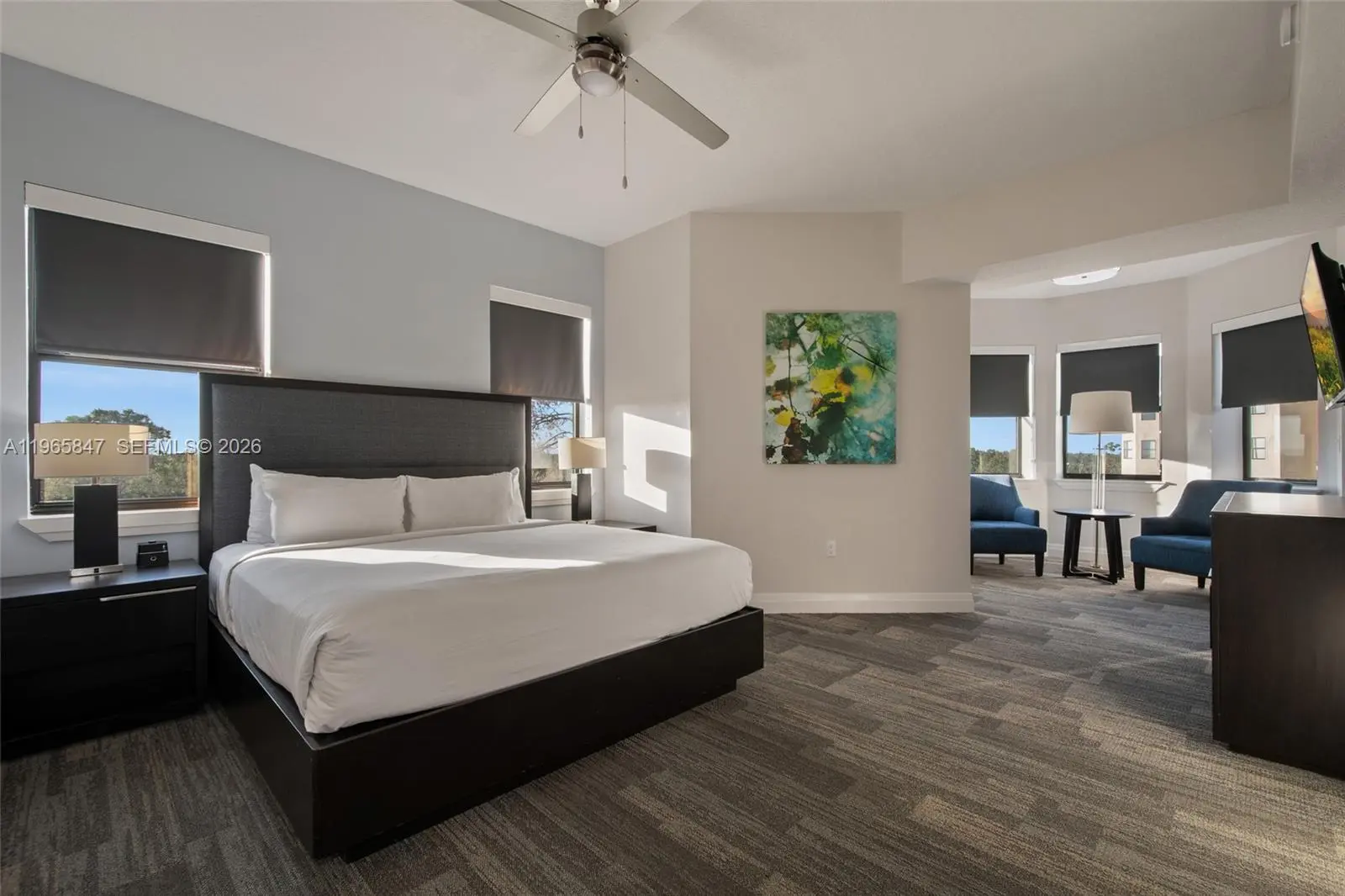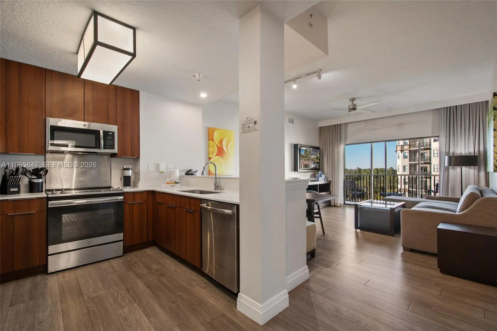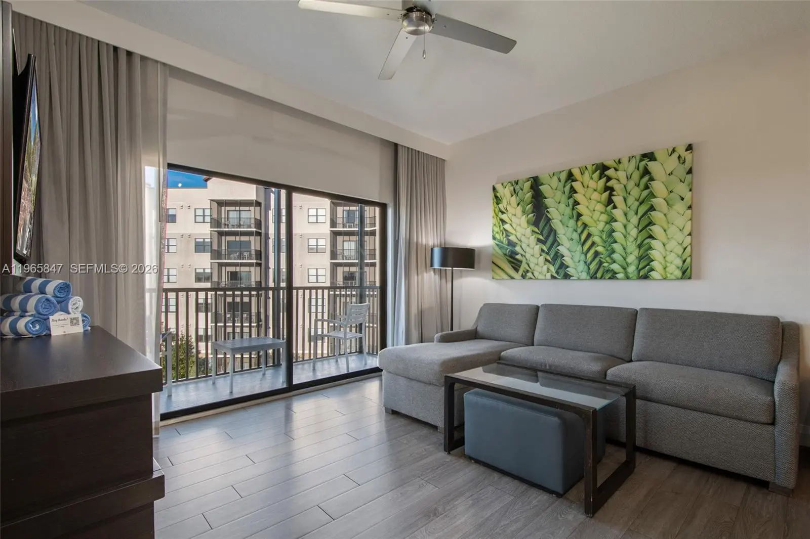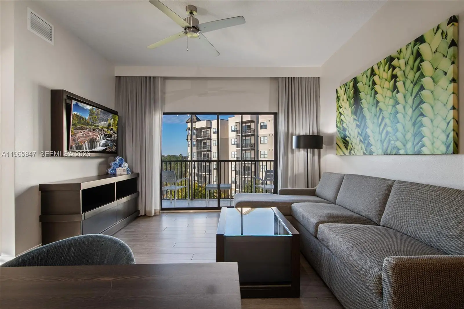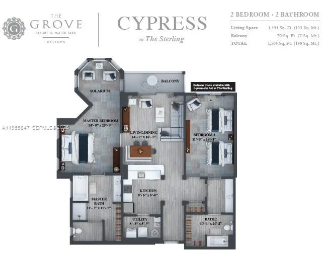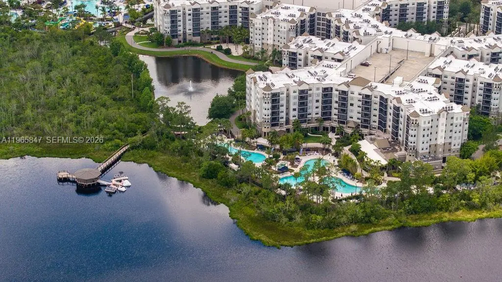 Welcome to the 4-Star Grove Resort & Spa Orlando! This high floor, corner unit offers a spacious split bedroom layout w/1,434 SF of living area. This model features an oversized Primary Suite with separate corner sitting area and the 2nd bedroom features 2 queen size beds. This condo sleeps 8! Other features include a modern interior with solid wood cabinets, solid surface countertops in the kitchen & baths, stainless steel appliances, in-unit laundry room, and all furniture & furnishings are included and ready for your turn-key vacation resort. The resort features outstanding amenities including on-site restaurants, spa, fitness center, arcade game room, multiple resort style pools, access to private Lake Austin, FREE SHUTTLES TO DISNEY PARKS and the on-site SURFARI WATER PARK complete with lazy river, pool-side restaurant and bar, and a FLOWRIDER® double surf simulator. This is a Walt Disney World Good Neighbor® Hotel and less than 5 miles from the world famous Walt Disney World® Resort and Theme Parks. Also, just 3.9 miles to the new Flamingo Crossings Town Center with 40+ shops and restaurants. This amazing condo-hotel unit also offers the convenience of an in-house, on-site hotel rental program which provides rental income when not in personal use and features a VIP Check-In for condo owners. ALL UTILITIES, CABLE TV, AND INTERNET INCLUDED IN MONTHLY MAINTENANCE!
