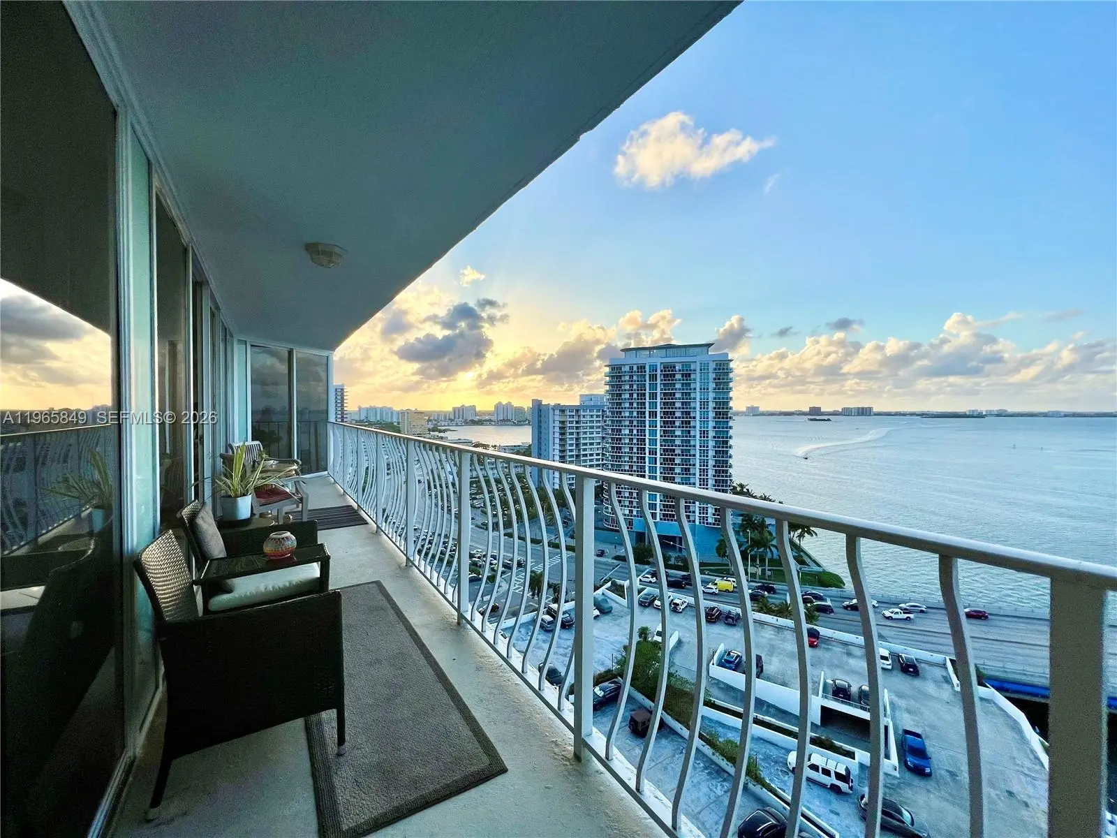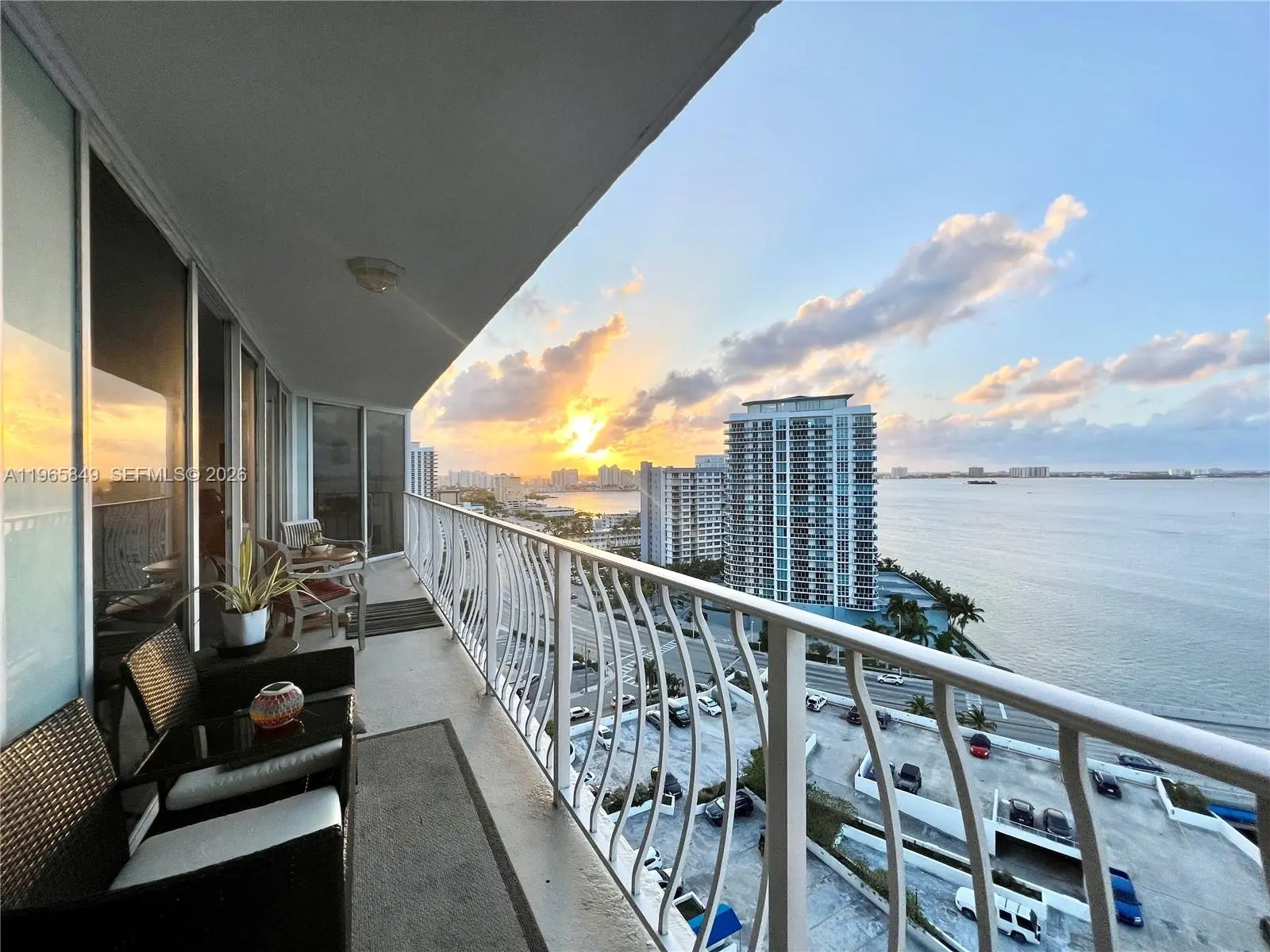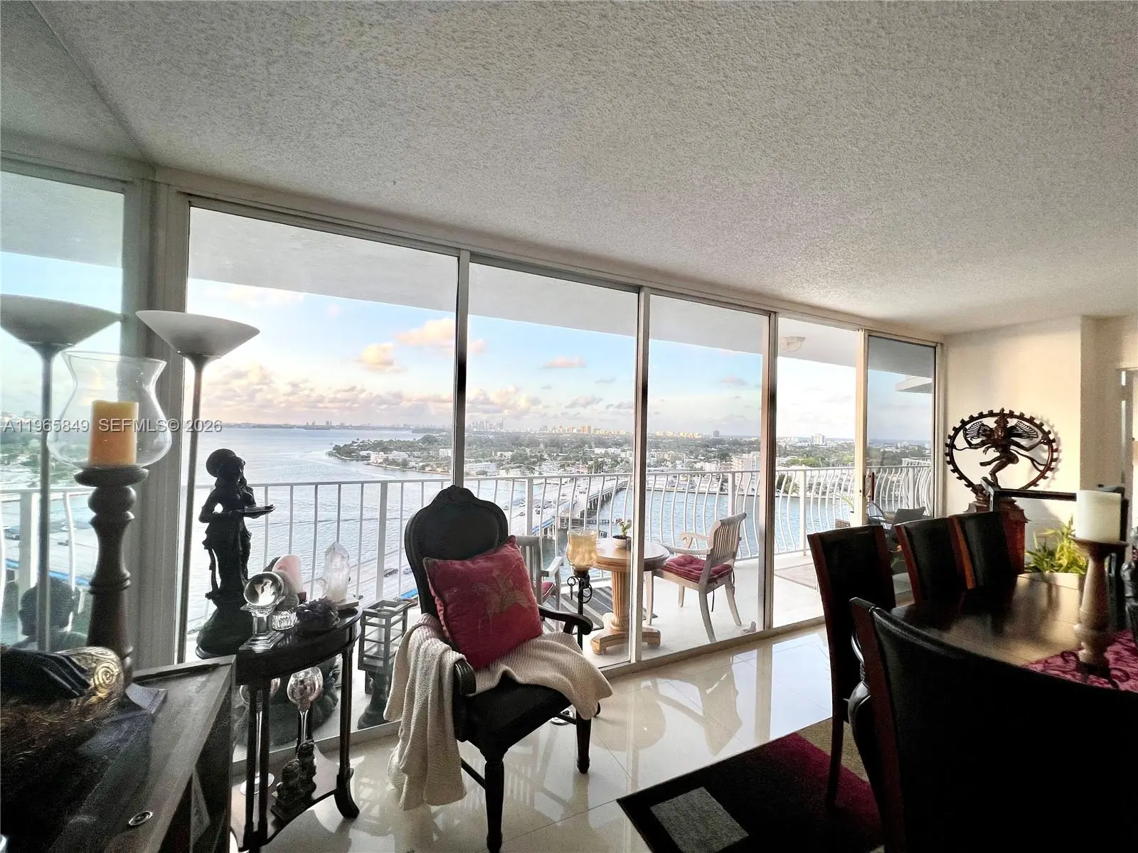 Best panoramic views, night or day, to Biscayne Bay, Miami Beach and intracoastal from this immaculate 2 beds & 2 baths at The Grandview Palace Condo. Porcelain floors throughout, open gourmet kitchen with top of the line stainless steel appliances and beautiful granite countertops. Floor to ceiling glass windows and extended balcony with extraordinary sunset and sunrise views. Washer & dryer in the unit. 1 parking space. Perfect location in North Bay Village, minutes to the beach, South Beach, Wynwood, Aventura and main highways. Waterfront building offers 24-hour security, attended lobby, an Olympic-sized swimming pool, restaurants and convenience stores.
