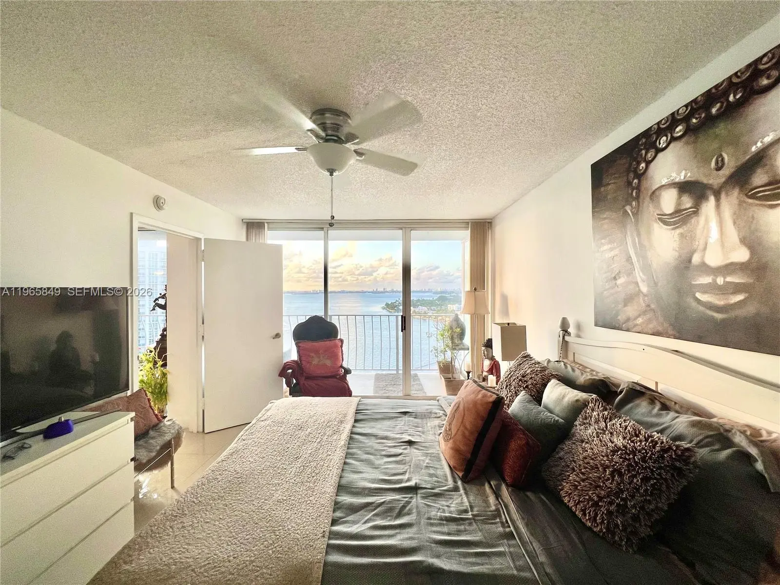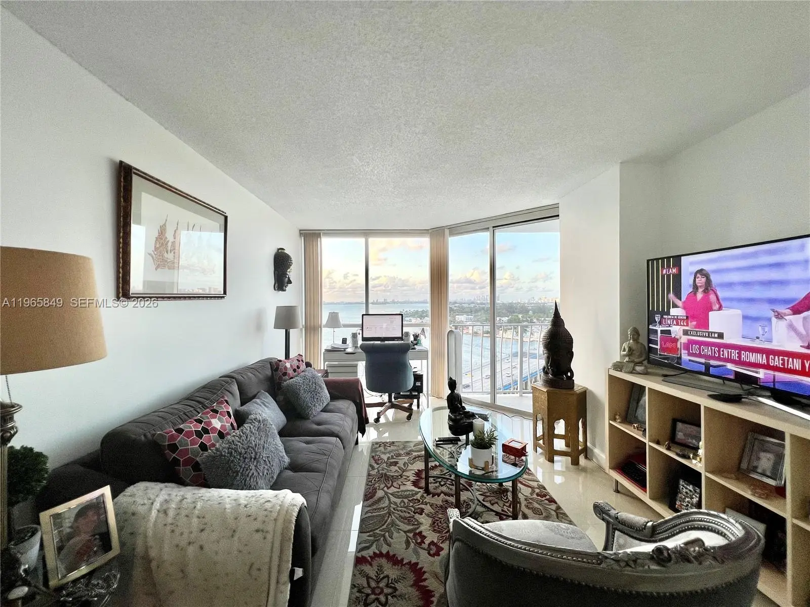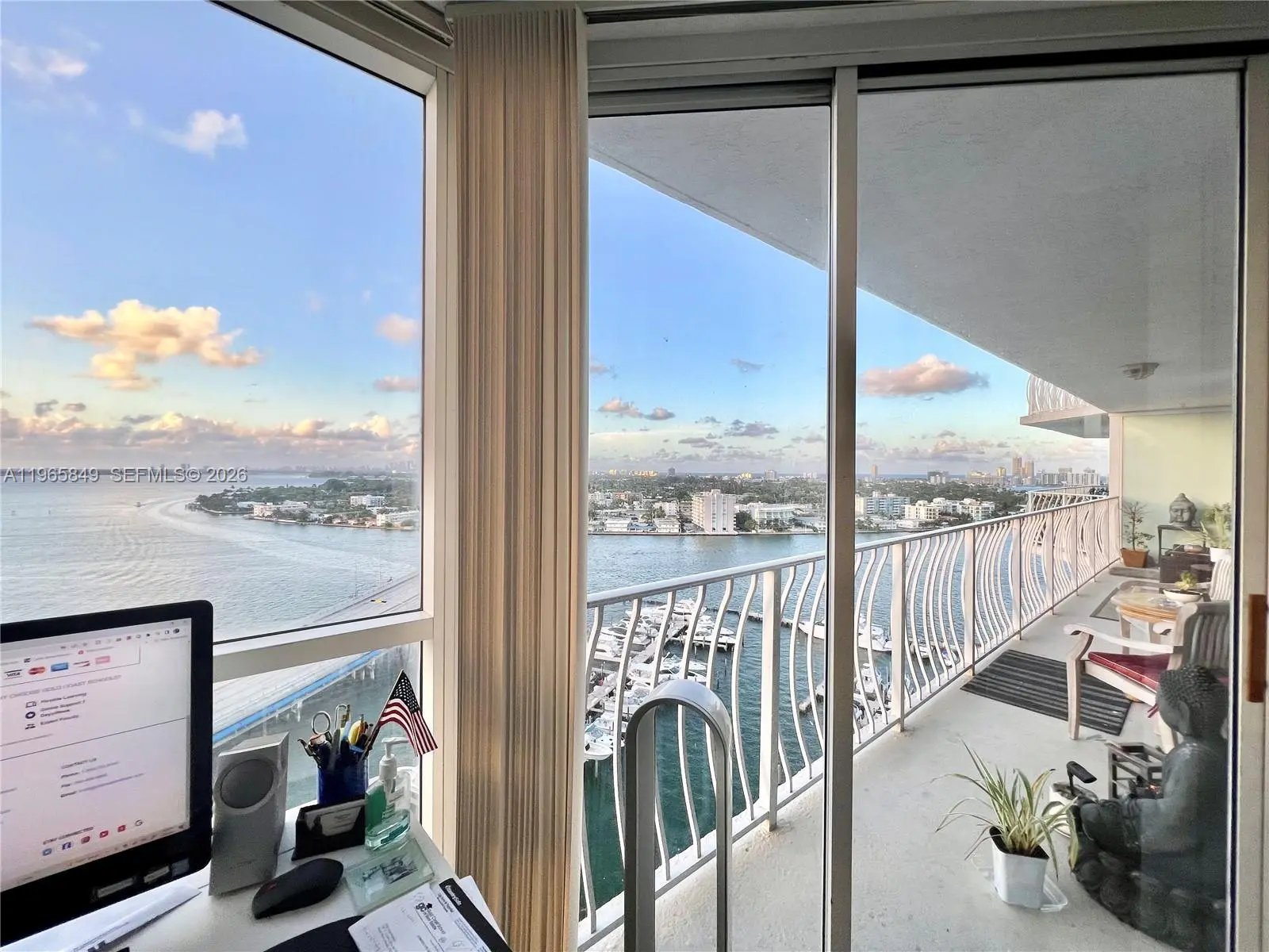 Best panoramic views, night or day, to Biscayne Bay, Miami Beach and intracoastal from this immaculate 2 beds & 2 baths at The Grandview Palace Condo. Porcelain floors throughout, open gourmet kitchen with top of the line stainless steel appliances and beautiful granite countertops. Floor to ceiling glass windows and extended balcony with extraordinary sunset and sunrise views. Washer & dryer in the unit. 1 parking space. Perfect location in North Bay Village, minutes to the beach, South Beach, Wynwood, Aventura and main highways. Waterfront building offers 24-hour security, attended lobby, an Olympic-sized swimming pool, restaurants and convenience stores.