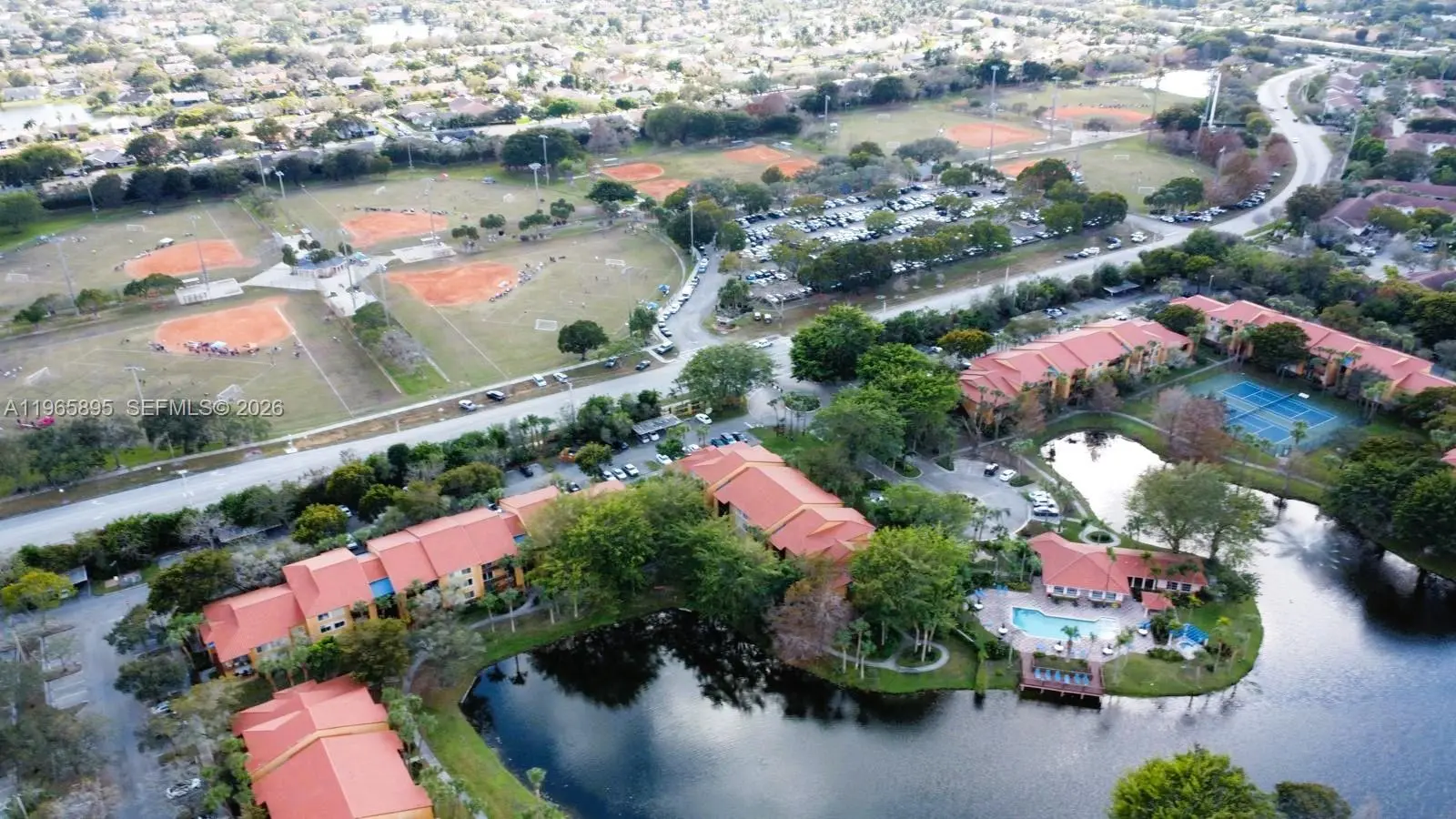 Beautiful open-concept apartment located in Lakes of Jacaranda. This bright and well-maintained first-floor unit features 2 bedrooms and 1 full bathroom, conveniently situated in front of the pool. The apartment offers tile flooring throughout, a spacious primary bedroom with a walk-in closet, and a generously sized second bedroom. Enjoy beautiful garden views and the convenience of an in-unit washer and dryer. The community offers a resort-style lifestyle with a clubhouse, gym, pools, and tennis courts. Ideally located in front of Sunset Park and close to major highways, main roads, shopping centers, and more.