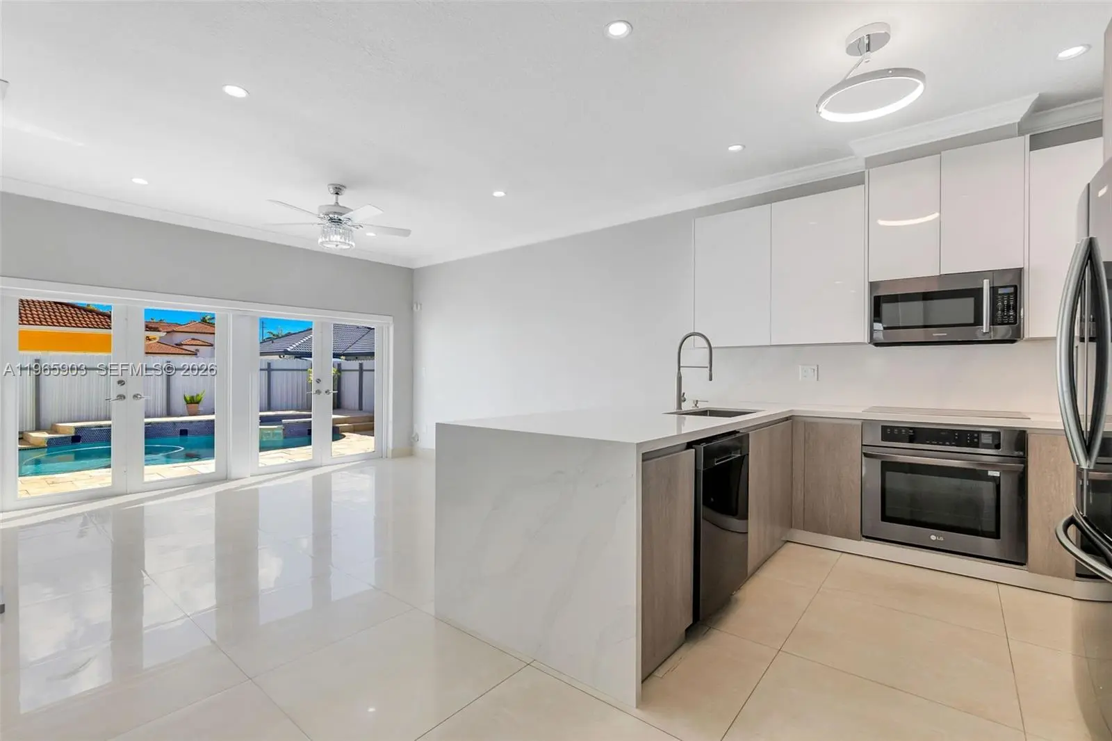 Welcome to this rare opportunity to rent this elegant Miami Lakes pool home with 4 bedrooms/2 bathrooms. This gorgeous home features an outdoor travertine terrace with a pool/jacuzzi, full outdoor summer kitchen, artificial grass throughout, and exterior surveillance systems. This home also features a large travertine driveway and a spacious garage to organize your vehicle & storage needs. Inside the home you'll find charming chandeliers, porcelain floors, beautiful bathrooms, elegant kitchen, laundry room, and impact windows & doors with setup security alarm systems. This home offers tenant newly replaced appliances (fridge, dishwasher, stove, microwave, washer/dryer).