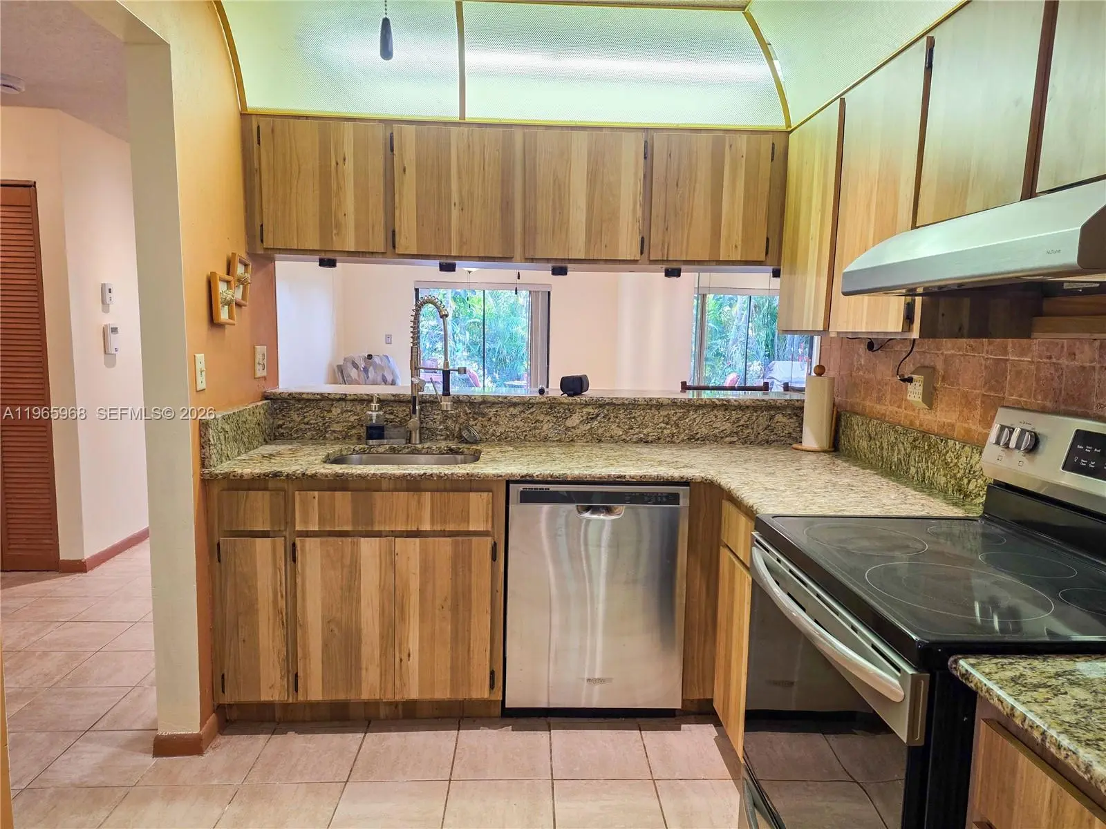Welcome to Redbridge! This beautifully maintained 2BR/2BA single-story townhome sits on the golf course and features granite kitchen counters, updated baths, impact windows/shutters, wall-to-wall closets, and a new Samsung Hub fridge and 2025 hot water heater. Extras include: fenced patio with built-in outdoor kitchen & Jenn-Air BBQ, new awning, and ample parking. Community pool, top-rated schools. 3 cars parking assigned. Fresh paint in living room/dinning room