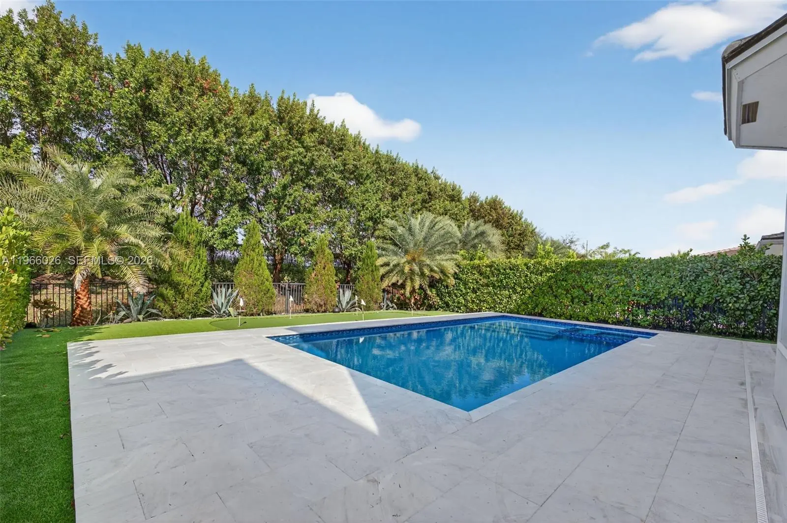 Crafted with intention and completed in 2021, this five-bedroom contemporary residence leaves no detail overlooked. Designed for both refined living and flexibility, the home features a fully integrated 1 bedroom guest house with private entrance, dedicated living space, kitchenette, offering seamless multi-generational living without compromise. Inside, elevated finishes define every space. Custom built-ins, top-tier appliances, and thoughtfully curated design elements enhance the open living areas, complemented by a formal dining room ideal for elevated entertaining. The primary suite is a true spa retreat, featuring expansive walk-in closets and a luxurious bath with separate soaking tub and oversized walk-in shower. Outdoors, the backyard unfolds as a private oasis, fenced for privacy and designed for year-round enjoyment. A resort-style inground pool anchors the space, surrounded by both covered and open patio areas, marble pavers, integrated audio, a built-in summer kitchen, and a private putting green. Located within gated Cascata, residents enjoy access to two resort-style clubhouses with state-of-the-art fitness centers, pools, children’s aquatic areas, playgrounds, and spa amenities. Modern. Polished. Complete.