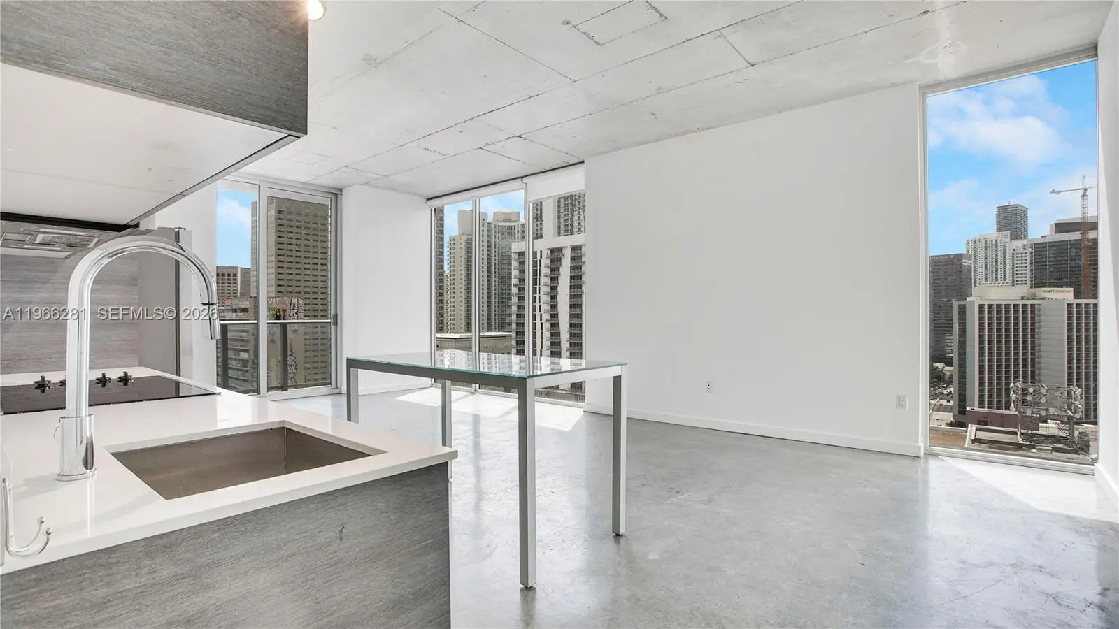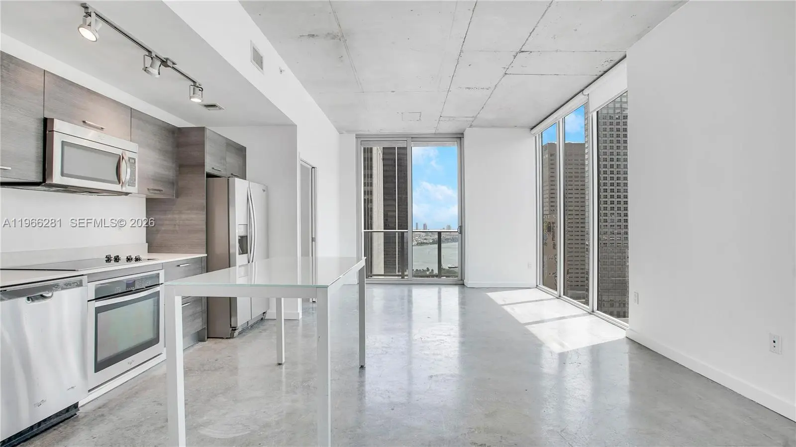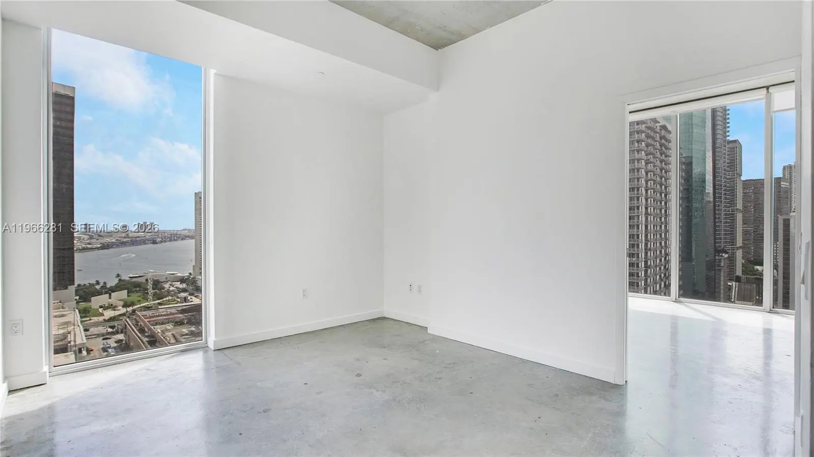 Beautiful 2 bedroom/2 bathroom loft style corner unit located in downtown Miami, walking distance to Brickell. This excellent location is surrounded by shops and entertainment. The unit views are facing towards the city and Biscayne Bay. High ceilings that are incorporated with floor to ceiling windows, concrete floors, modern kitchen with washer and dryer. Centro condo included spectacular amenities; roof top pool with breathtaking views, fitness center, social media room with coffee bar, jacuzzi, sauna, 24hrs concierge and valet parking. Short term rentals are allowed (no less than 30 days).