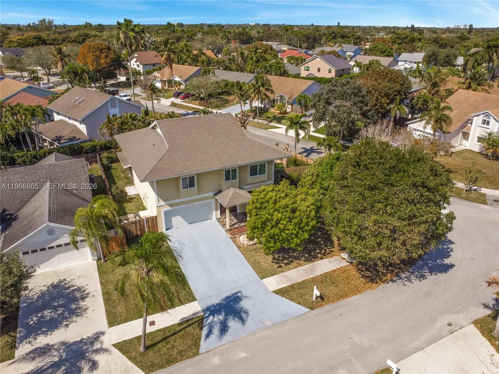 Beautiful corner two-story single-family home featuring 5 bedrooms and 3.5 bathrooms in a highly desirable Cutler Bay neighborhood.This well-maintained residence offers impact windows and sliding glass doors throughout for added protection and peace of mind. The first floor features tile flooring, a convenient half bath, a spacious laundry room, and a bright open living area perfect for family gatherings and entertaining. The kitchen is equipped with stainless steel appliances, wood cabinetry, and granite countertops, all overlooking the family room for comfortable everyday living. Upstairs, you’ll find high ceilings and a desirable split-bedroom layout. The spacious primary suite welcomes you through elegant double doors and includes a generous built-in closet and a luxurious en-suite bath with dual vanities, a separate shower, and a whirlpool Jacuzzi tub. Freshly painted interior gives the home a clean, move-in-ready feel.Step outside to a large screened-in patio with ceiling fans. While the screen may need minor updating, the backyard offers incredible potential, including room for a pool and featuring two mature mango trees that provide shade, beauty, and seasonal fruit. The garage includes custom built-in cabinetry, offering excellent storage and organization. Conveniently located just minutes from major highways, shopping, dining, parks, and marinas. A wonderful opportunity to own a spacious home in one of Cutler Bay’s most desirable areas.