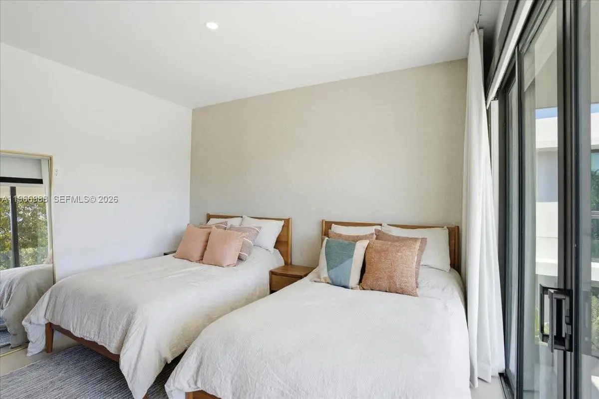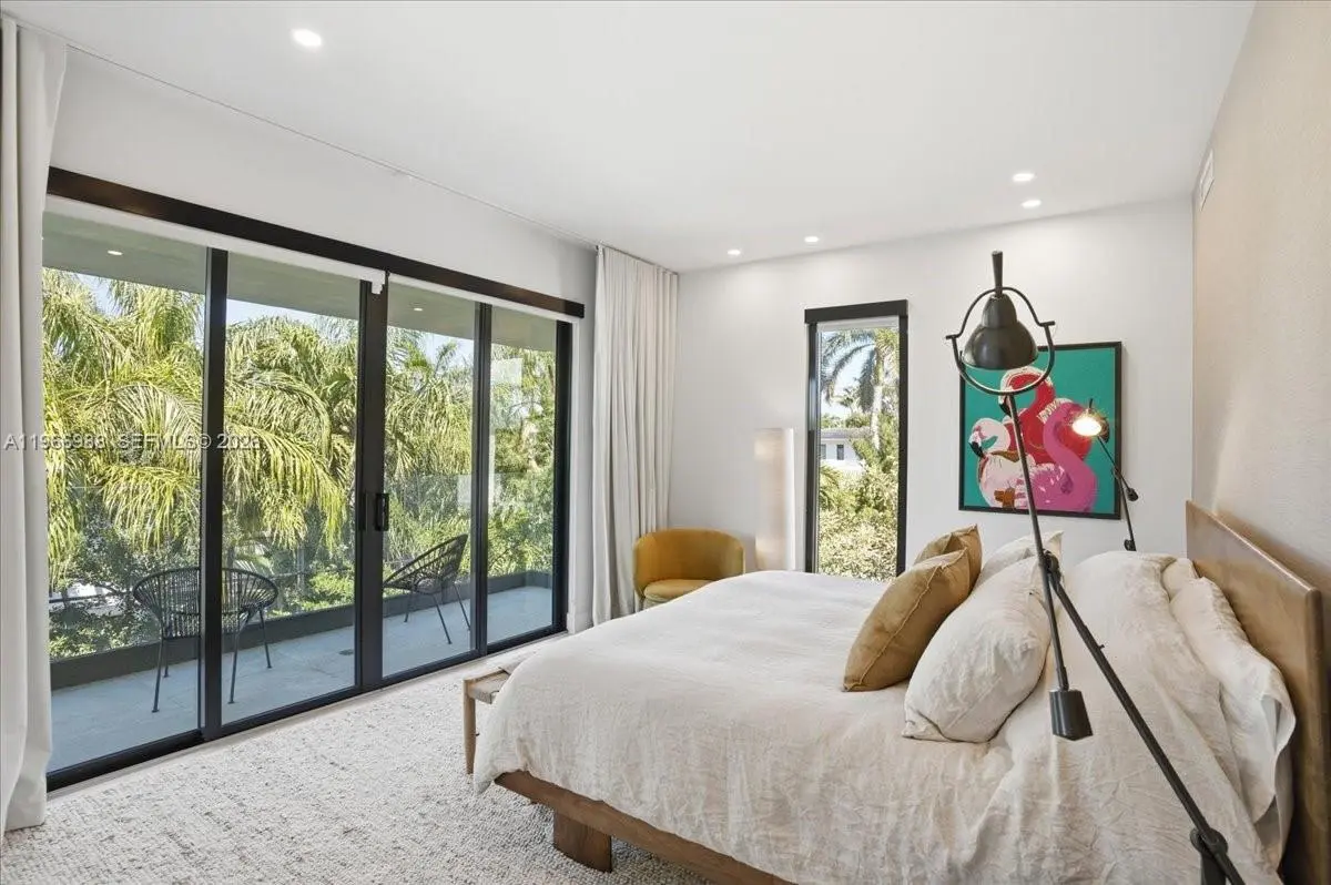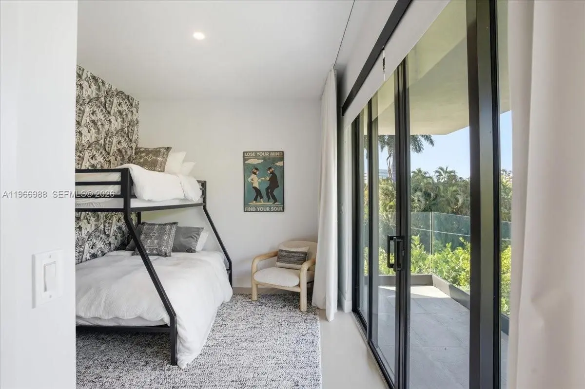 Modern luxury meets tropical elegance in this 4-bedroom, 4-bath contemporary residence in one of Miami Beach’s most desirable neighborhoods. Offered unfurnished, this two-story home features clean architectural lines, warm natural finishes, and light-filled open living spaces that create the perfect canvas to make it your own. Decorated by a Brazilian interior designer, the home is enhanced with beautiful wallpaper and curated details that elevate each space with texture and character. The main level offers a spacious living and dining area with a custom wood accent wall, sleek floating staircase, and floor-to-ceiling impact glass doors that seamlessly blend indoor and outdoor living. The chef’s kitchen features contemporary cabinetry, quartz countertops, premium stainless steel appliances, and a large center island, opening to a covered terrace ideal for entertaining. Upstairs, the primary suite includes a private balcony, walk-in closet, and spa-style bath with dual vanities, soaking tub, and oversized rain shower, while additional bedrooms offer modern finishes and ample storage. The private backyard showcases a covered summer kitchen, outdoor dining area, and lush tropical landscaping with green space for relaxing or gatherings. High ceilings, recessed lighting, and impact windows and doors complete this exceptional home, ideally located just minutes from beaches, top schools, dining, and shopping, offering privacy, convenience, and the ultimate South Florida lifestyle.