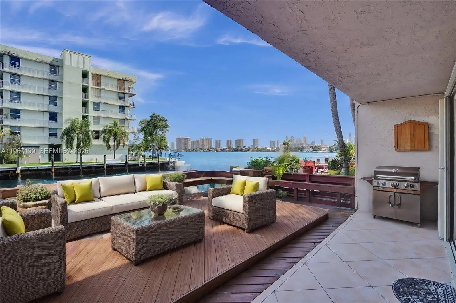 Stunning waterfront townhome with 3 bedrooms, 2.5 bathrooms, and 1,600 SF of living space on the Intracoastal. Features an open layout with a gourmet kitchen offering quartz countertops, stainless steel appliances, and updated lighting. Spacious living and dining areas open to a waterfront patio with serene water views. Bathrooms upgraded with high-end mirrors and finishes. Primary suite includes dual sinks, glass shower, walk-in closet, and private balcony overlooking the bay. Laundry room with ample storage. Private dock accommodates a 23-ft boat with ocean access and no fixed bridges. HOA $850/month with reserves. Can be rented first year of purchase. Walking distance to dining, shopping, and IPIC theater. Just 5 minutes to the beach, 10 minutes to Aventura Mall, and easy access to I-95 and airports. Please ask us about the 3-2-1 approved lender buy down. Meaning you get an interest rate as low as 3% with a monthly payment probably lower than what you're paying in rent!! Scroll down to "facts & features", click on "show more", then click "View virtual tour" for your Virtual Interactive Lifestyle Concierge! Ask anything. Explore everything.