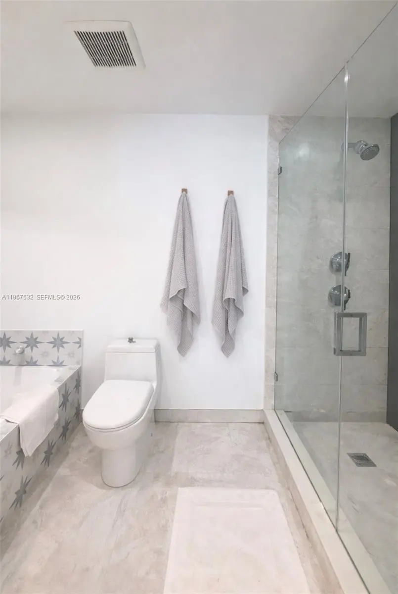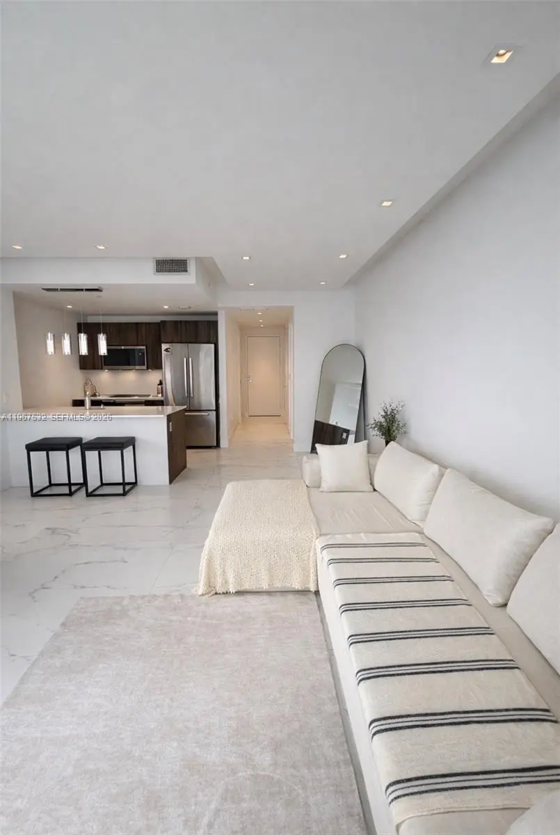 Centrally located in Miami's Arts & Entertainment District, Residence 4304 offers a spacious 1-bedroom, 1.5-bath layout with southern exposure and open views of Biscayne Bay and the Downtown Miami skyline. This well-appointed unit features tile flooring throughout the interior and balcony, custom drop ceiling with integrated ambient lighting, motorized blinds, quartz countertops, and Bosch stainless steel appliances. The primary bathroom includes an upgraded shower and soaking tub.