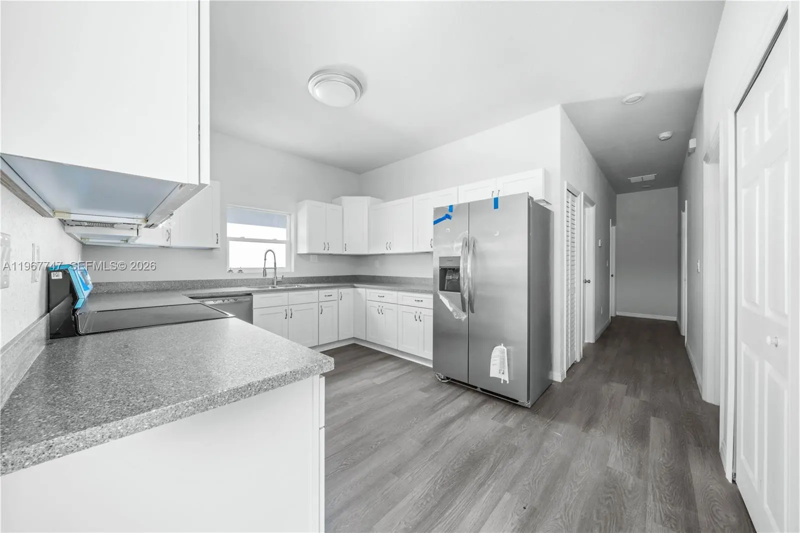3 BED 2 BATH WITH GARAGE DOUBLE DRIVEWAY NEW CONSTRUCTION CONCRETE BLOCK HOME LAST PHASE 7 LAS VILLAS GATED COMMUNITY SEBRING FLORIDA. MOVE IN READY JANUARY 2026. Las Villas is a gated community with private streets, electric gates, play area and recently refurbished swimming pool. High quality vinyl planks throughout, quartz countertops, 9.4 ft ceilings, marble effect tiles in bathrooms, soft close kitchen cupboards and high quality finishes. Surge protectors installed. Live in a modern home at an affordable price. This home benefits from a private double driveway and garage, main sewer (not septic), recessed lighting, 4 x stainless steel appliances including a double-door fridge freezer, microwave, stove oven range and dishwasher.