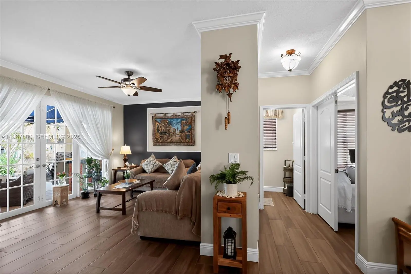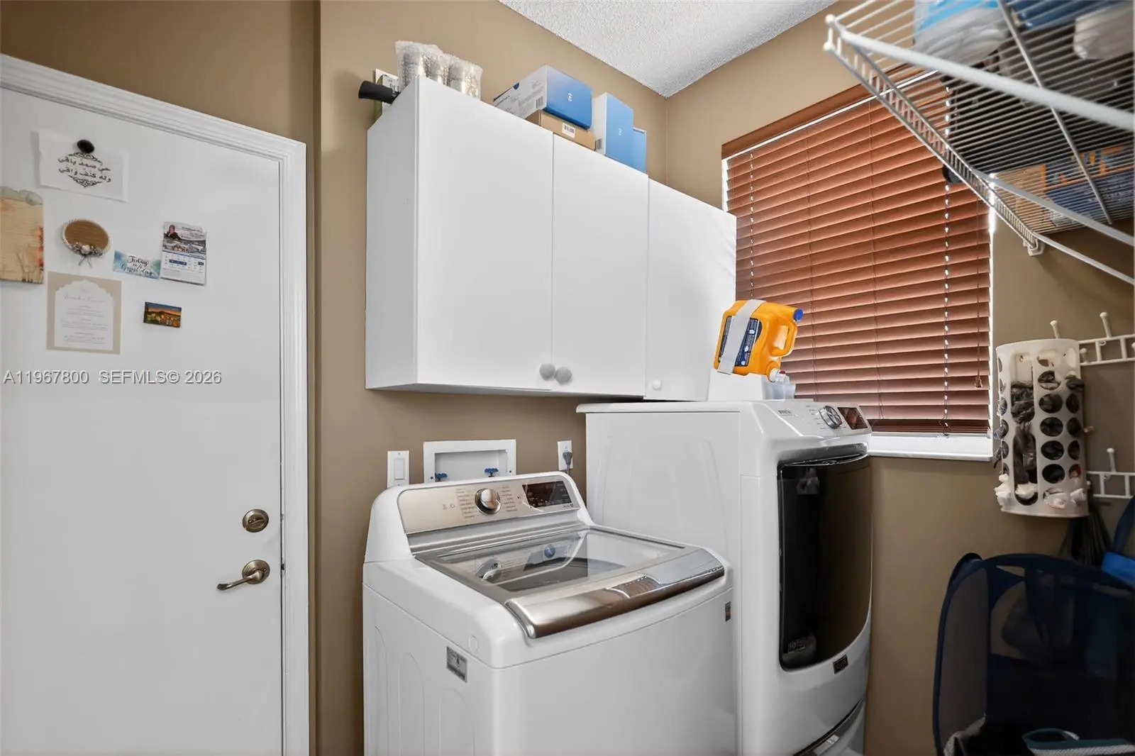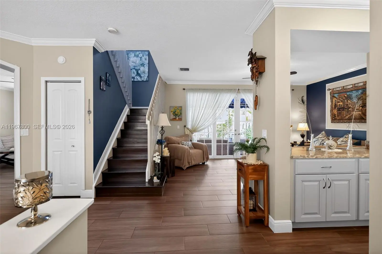 Stunning 2-story home in the desirable Encantada community, offering 4 bedrooms, 2.5 bathrooms, and 2,436 sq ft of living space. Move-in ready with accordion hurricane shutters installed in 2024 and garage epoxy added in 2025 with EV charger. The first floor features an updated kitchen with stainless steel appliances, renovated half bath, new flooring throughout, new A/C, office/bedroom, and laundry room. Enjoy 2-car garage, stamped driveway, and a brick-paved backyard with BBQ, bar, and exterior awning. Upstairs offers 4 bedrooms and 2 full baths, including a spacious master with Jacuzzi tub and glass-enclosed shower. Community amenities include pool, clubhouse, tennis and volleyball courts, and 24-hour guarded gate. Conveniently located short distance to public schools and charter options.