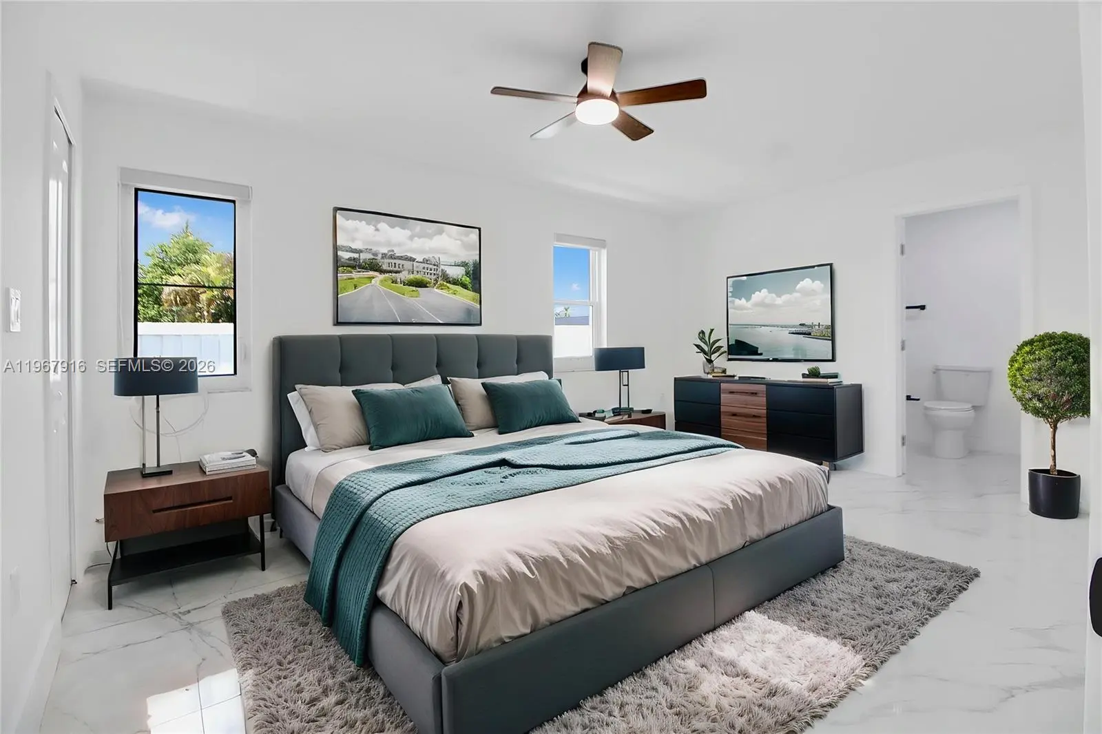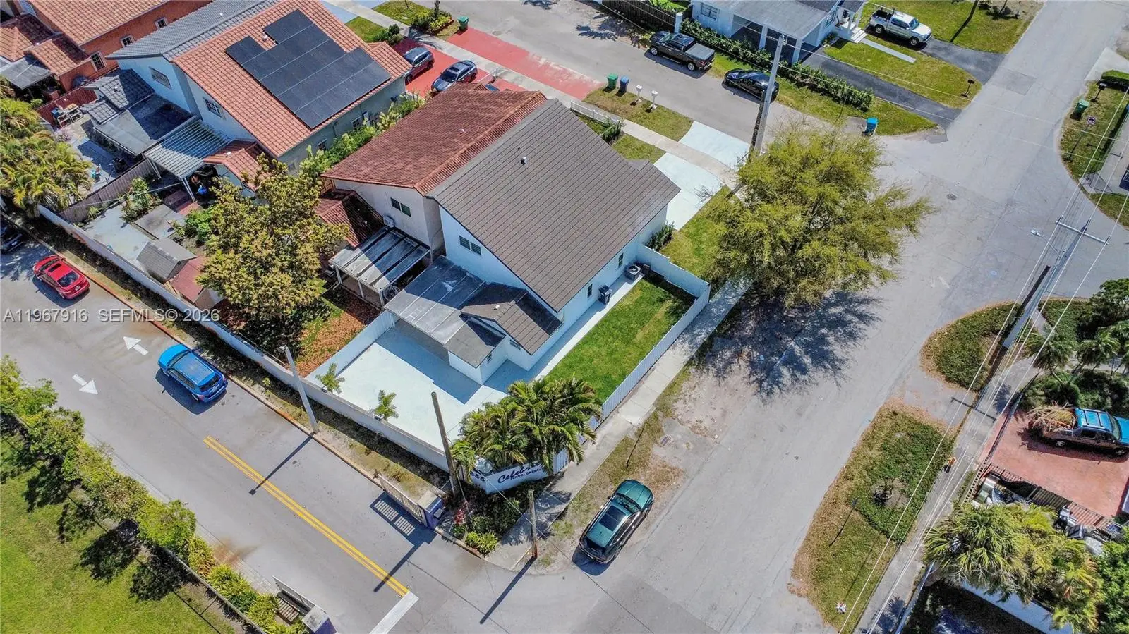MOVE IN READY! Stunning two story home in the heart of the highly desirable Westchester area with over $50,000 in renovations and NO HOA. This fully renovated, completely turnkey residence sits on a freshly landscaped corner lot and has been freshly painted inside and out. Featuring soaring high ceilings and a bright open living area with large windows that bring in an abundance of natural light, the home feels spacious, bright, and airy throughout. The home features a split bedroom layout across multiple levels, offering both privacy and functionality. There are four spacious bedrooms, including a convenient downstairs primary bedroom. New porcelain tile flooring runs throughout the entire home, and new impact windows provide both style and durability. The beautiful kitchen features quartz countertops and stainless steel modern appliances, perfect for cooking and entertaining. Renovated bathrooms showcase modern finishes including frameless glass showers and a tub. Step outside to a spacious backyard with a covered patio, ideal for relaxing or entertaining guests. The property also features new landscaping. Major updates include a roof and HVAC system that have both been replaced within the past few years. Ideally located near the Palmetto Expressway and other major highways with easy access to shopping, schools, restaurants, and public transportation within walking distance. Don't miss this opportunity!