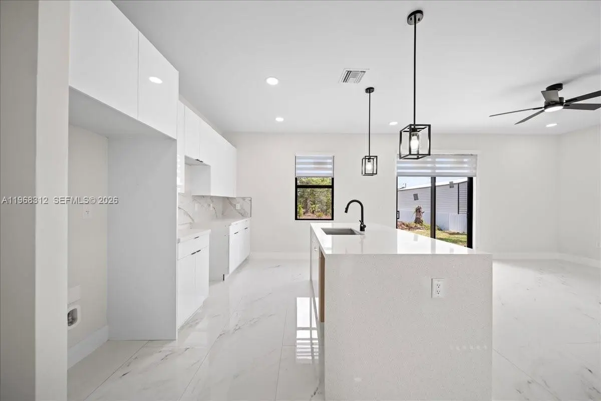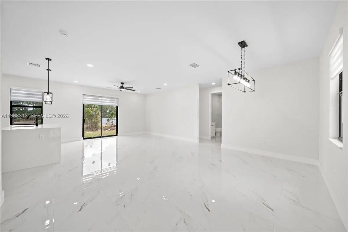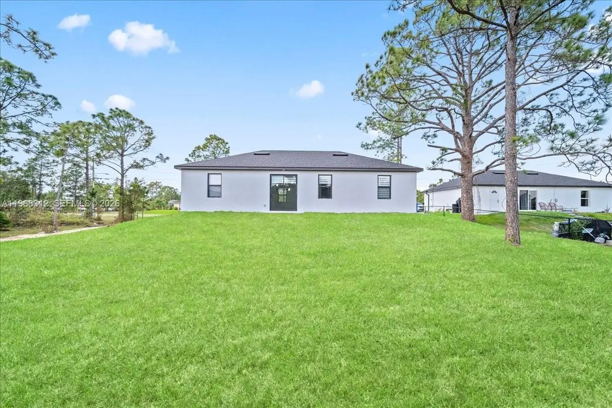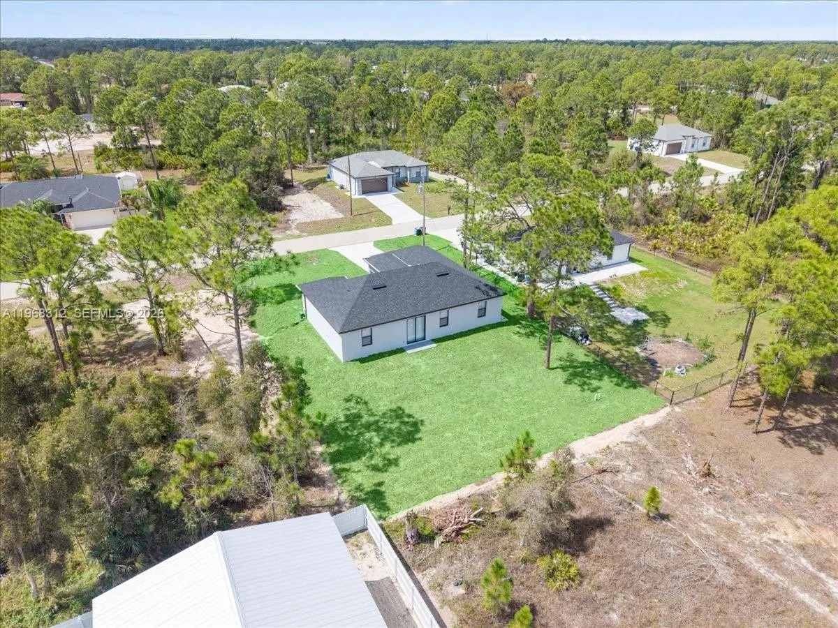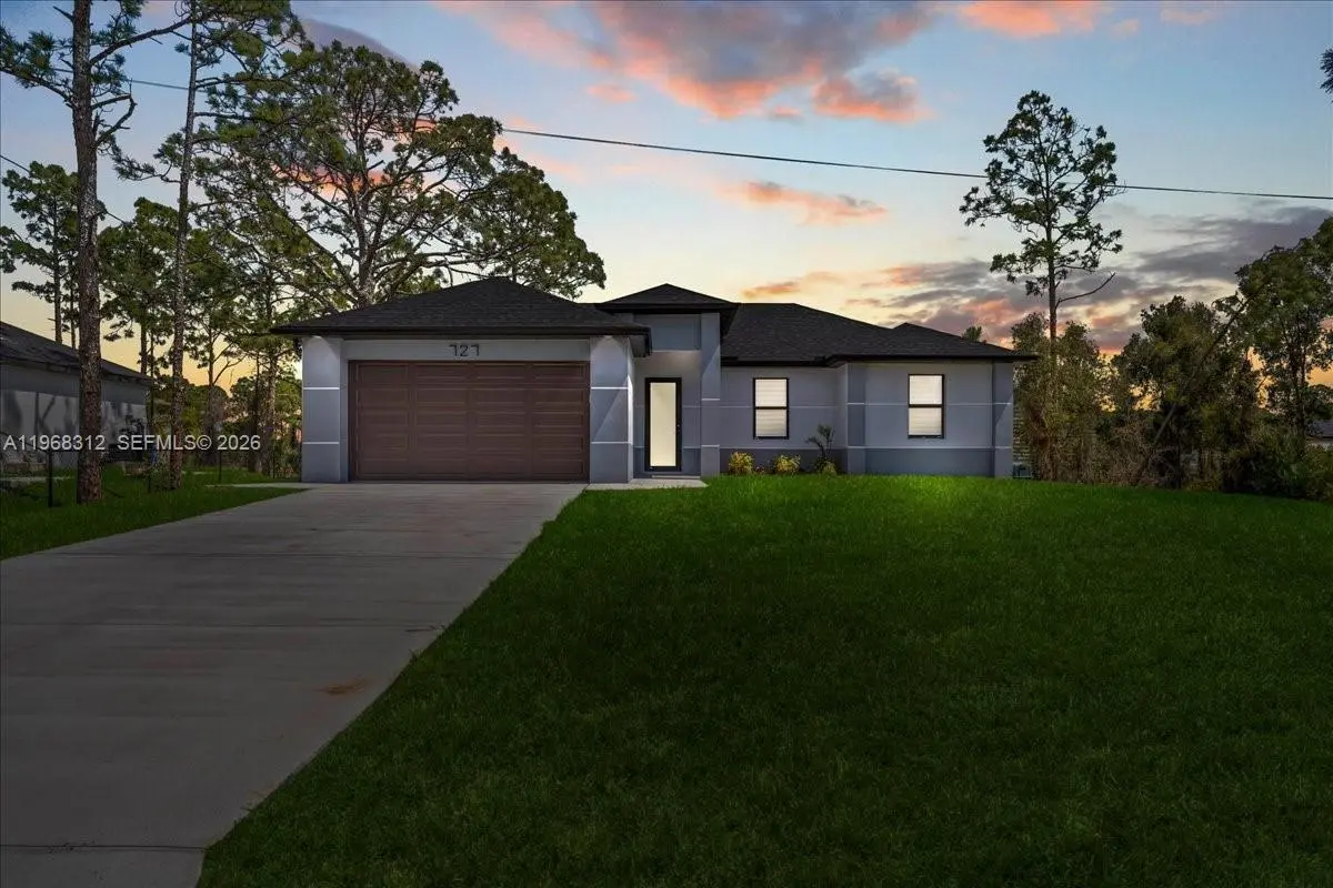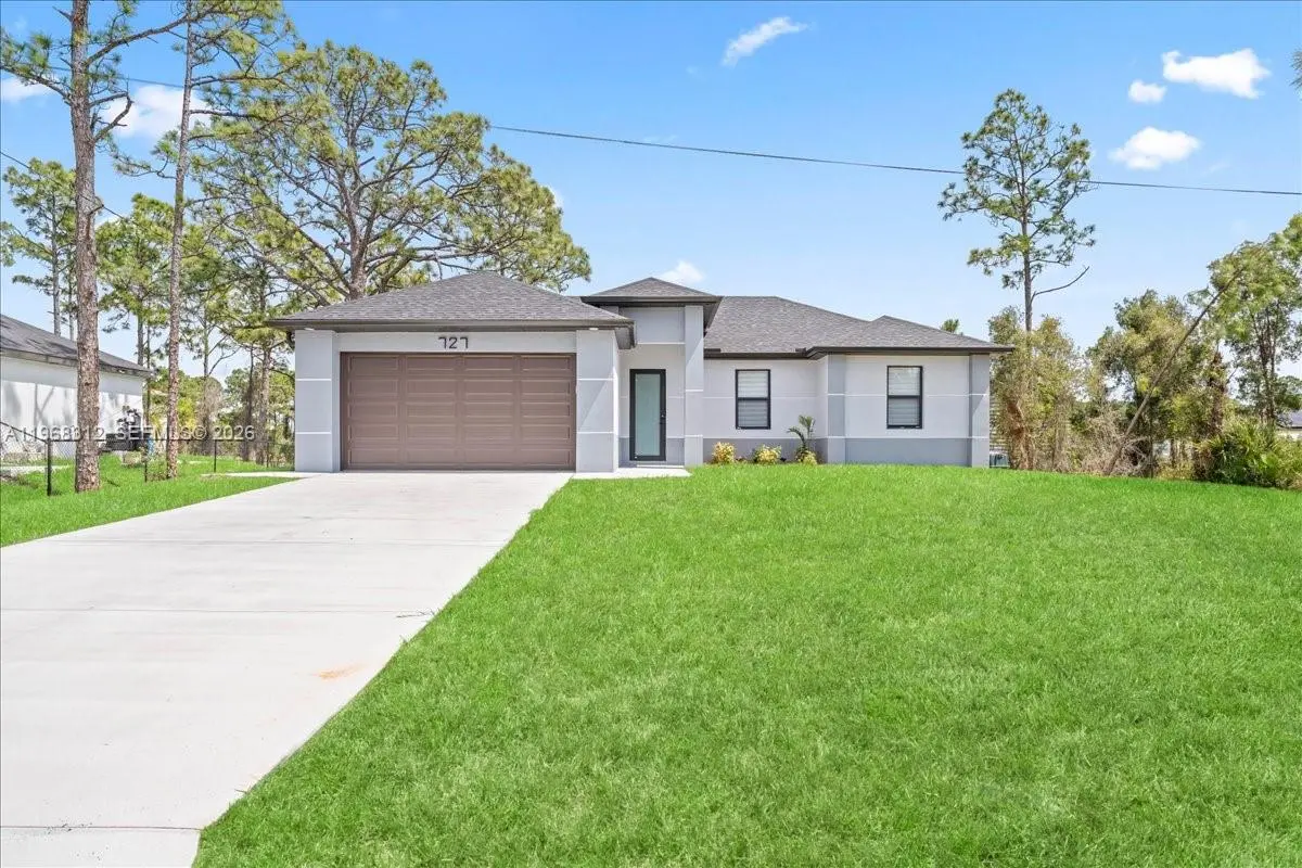 Experience the best of new construction in a flourishing area of Lehigh Acres! This stunning 3-bedroom, 2-bathroom home features a bright and airy open-concept kitchen, perfect for entertaining. The kitchen boasts elegant wood cabinets, pristine quartz countertops, and a full suite of brand-new stainless steel appliances. Enjoy the Florida sunshine and ultimate peace of mind with impact windows and doors throughout. With gorgeous porcelain tile underfoot and zero updates needed, this move-in-ready home offers the perfect blend of modern style and effortless living. Schedule your private showing today!