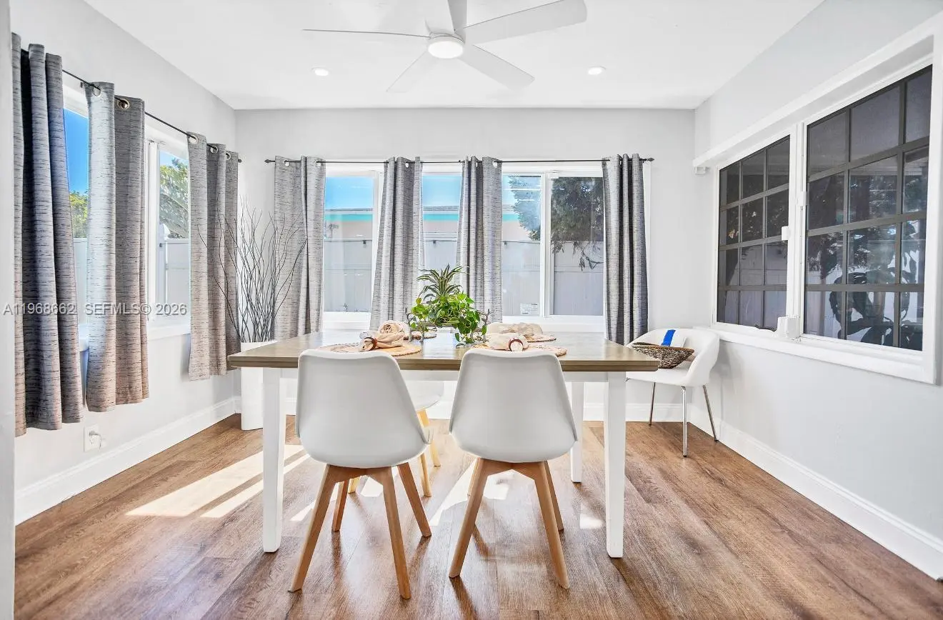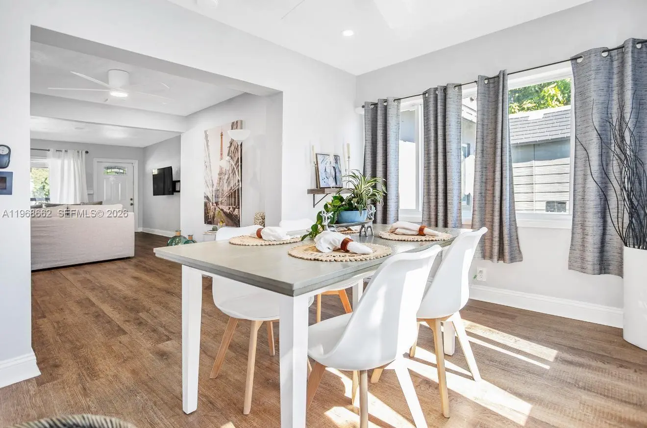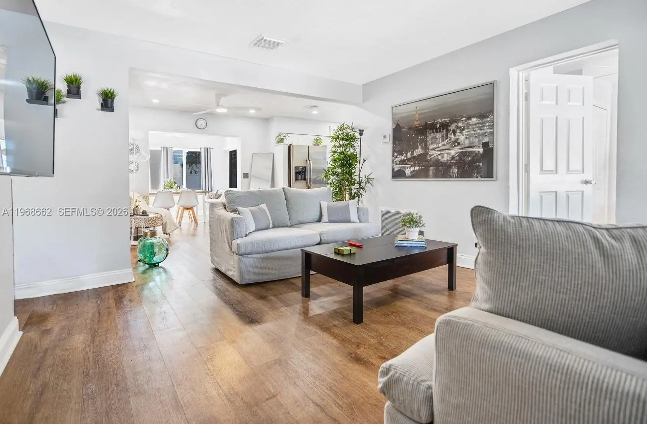 Beautifully updated 3-bedroom, 2-bath corner pool home in Pompano Beach just east of Federal Highway. This bright and inviting residence features hurricane impact windows and doors, an open-concept layout, and stylish finishes throughout. The kitchen boasts white shaker cabinetry with modern hardware, quartz countertops, and stainless steel appliances. Waterproof engineered flooring flows seamlessly through the home, complemented by updated lighting and contemporary ceiling fans. Enjoy a spacious backyard with a heated pool (newer pump), perfect for entertaining family and friends. Additional highlights include a convenient utility area with washer and dryer, extra storage space, outdoor shower, and a circular driveway offering ample parking. Ideally located just minutes from the beach, dining, shopping, and entertainment. A must-see property that blends comfort, style, and location!