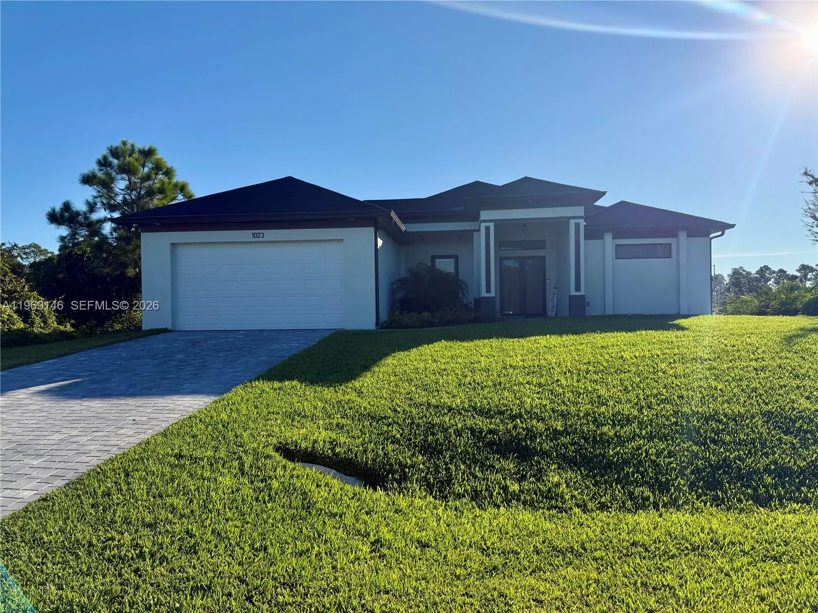 Motivated Seller! Beautiful new construction home located in a growing area of Lehigh Acres, just minutes from SR 82 and Columbus Blvd for easy access to Fort Myers, shopping, and dining. This modern home offers tile flooring throughout, creating a clean and elegant look in every room. The spacious open-concept floor plan features a bright kitchen, perfect for entertaining and everyday living. Enjoy peace of mind with security cameras already installed, adding convenience and safety to your new home. Quality finishes, modern design, and attention to detail make this property move-in ready. Don’t miss this opportunity to own a brand-new home in a prime Lehigh Acres location!
