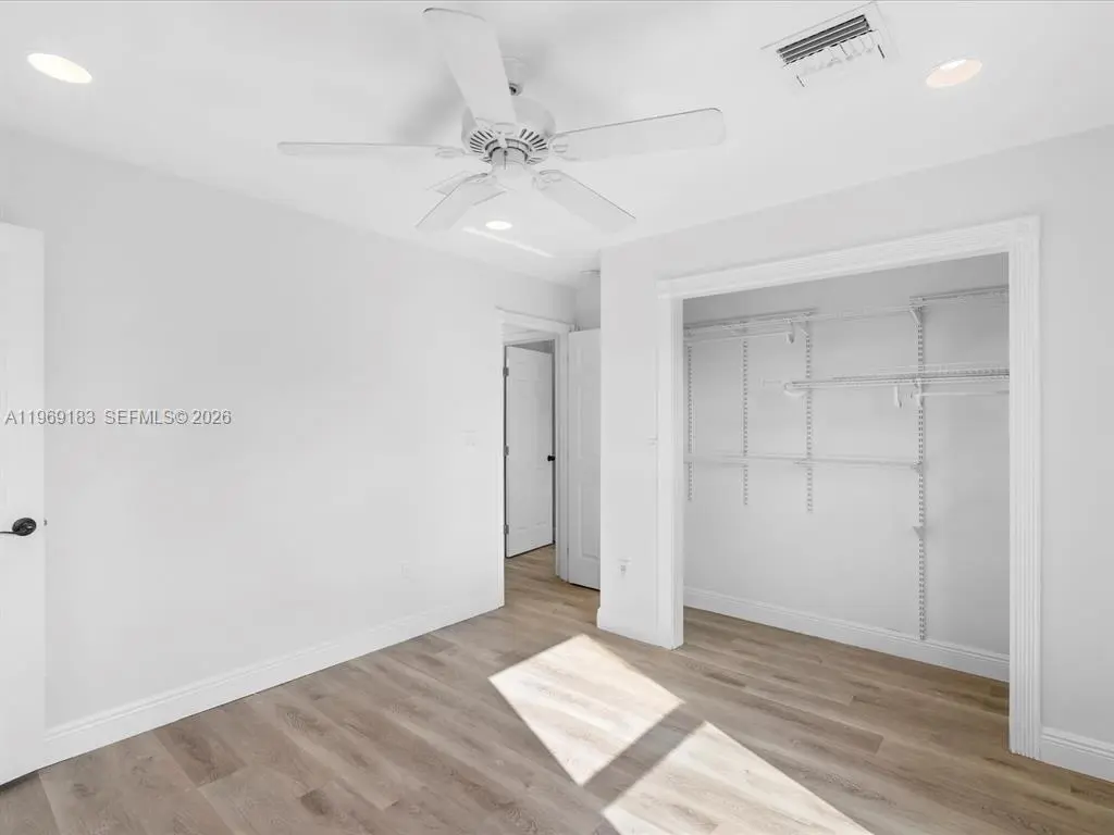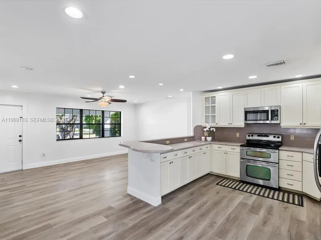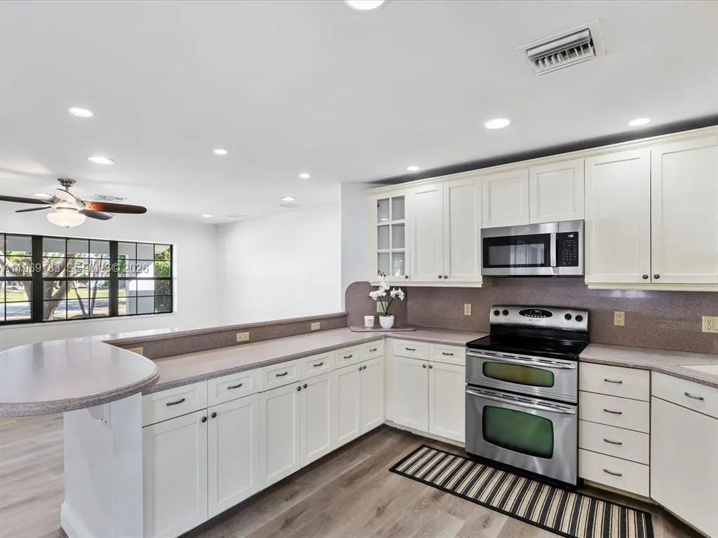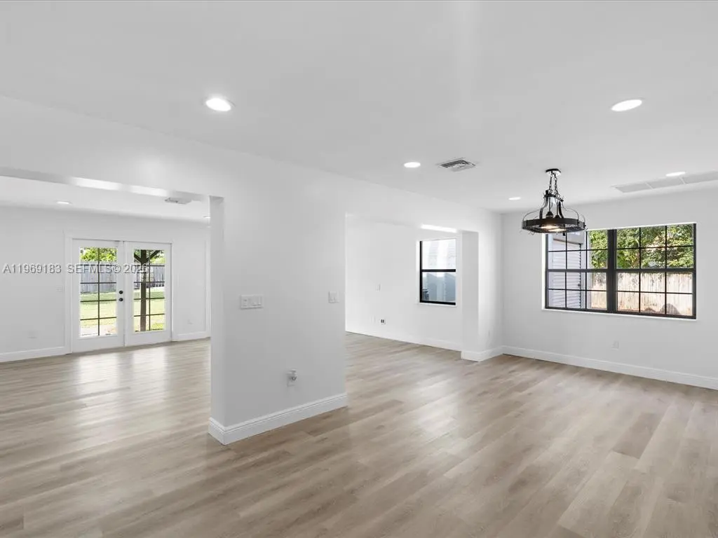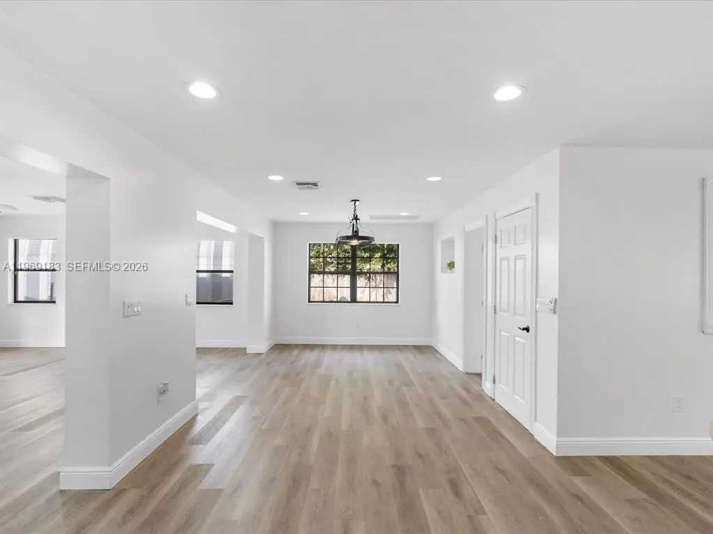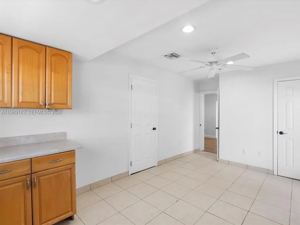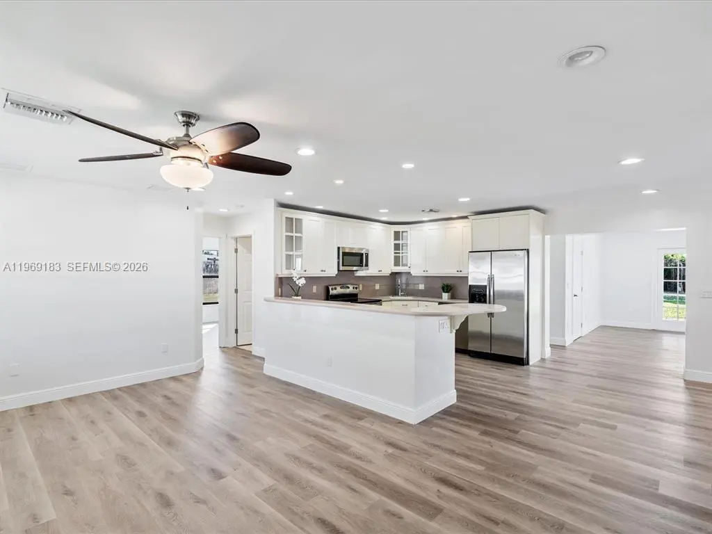 NO HOA and fast approval. LOTS of storage space; HUGE pet friendly backyard! Welcome to this charming 3-bed, 2.5-bath home with an extra room that could be 4th bedroom or recreation. The open floor plan boasts abundant natural light, large living & family rooms, and a spacious kitchen with formal dining—ideal for entertaining. Newly installed wood floors & ceiling fans enhance comfort. Features newer A/C & W/D. French doors open to a large patio & huge fenced yard—perfect for dogs. Includes a giant metal storage shed. Nestled in a quiet cul-de-sac, close to I-95, US1, Deerfield Beach, shopping & dining!