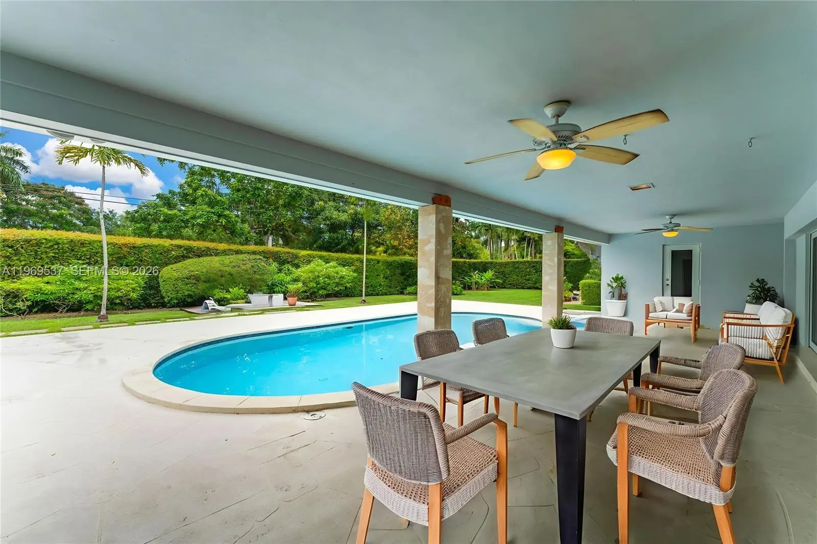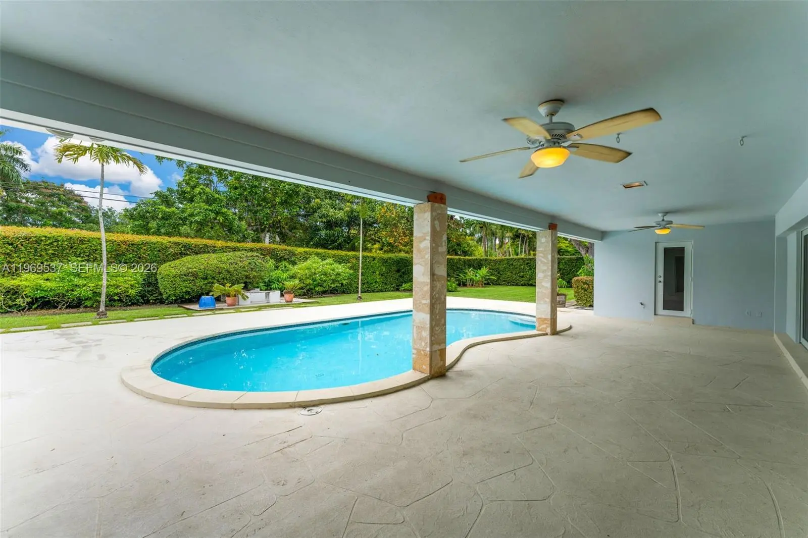 Tucked away on a quiet Pinecrest street, this single-story home sits on an expansive 22,606 sq.ft. fenced lot, offering space, privacy, and the comfort that defines true South Florida living. The layout is both functional and inviting, featuring a desirable split floor plan — the primary suite privately positioned on one side and three additional bedrooms on the other, creating a perfect balance between togetherness and retreat. At the heart of the home, the chef’s kitchen offers generous counter space and abundant storage — ideal for everyday living and effortless entertaining. Step outside and experience the lifestyle this property was designed for: a sparkling 15’ x 30’ pool, a spacious covered porch, and three patio areas that provide multiple settings for relaxing or hosting. The oversized backyard offers endless possibilities. A rare and highly desirable feature: each bathroom has direct access to the patio, allowing seamless indoor-outdoor flow — perfect for pool days and entertaining. A flexible room ca be used as movie theater room, office, gym, playroom.. or can easily be converted back to a 2 car-garage. Peaceful, yet close to shops, parks, and top amenities, this home blends tranquility with everyday convenience. All hurricane impact windows and doors. Call for more information and to schedule a private tour, before it's too late !