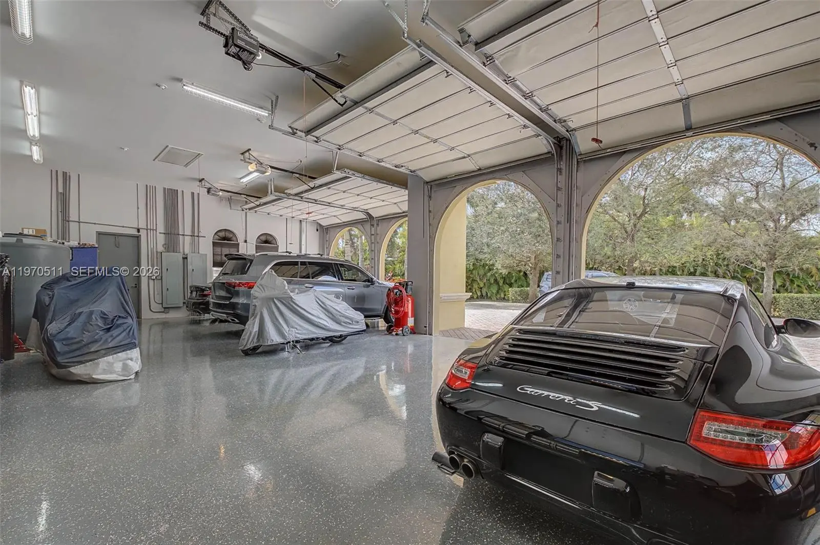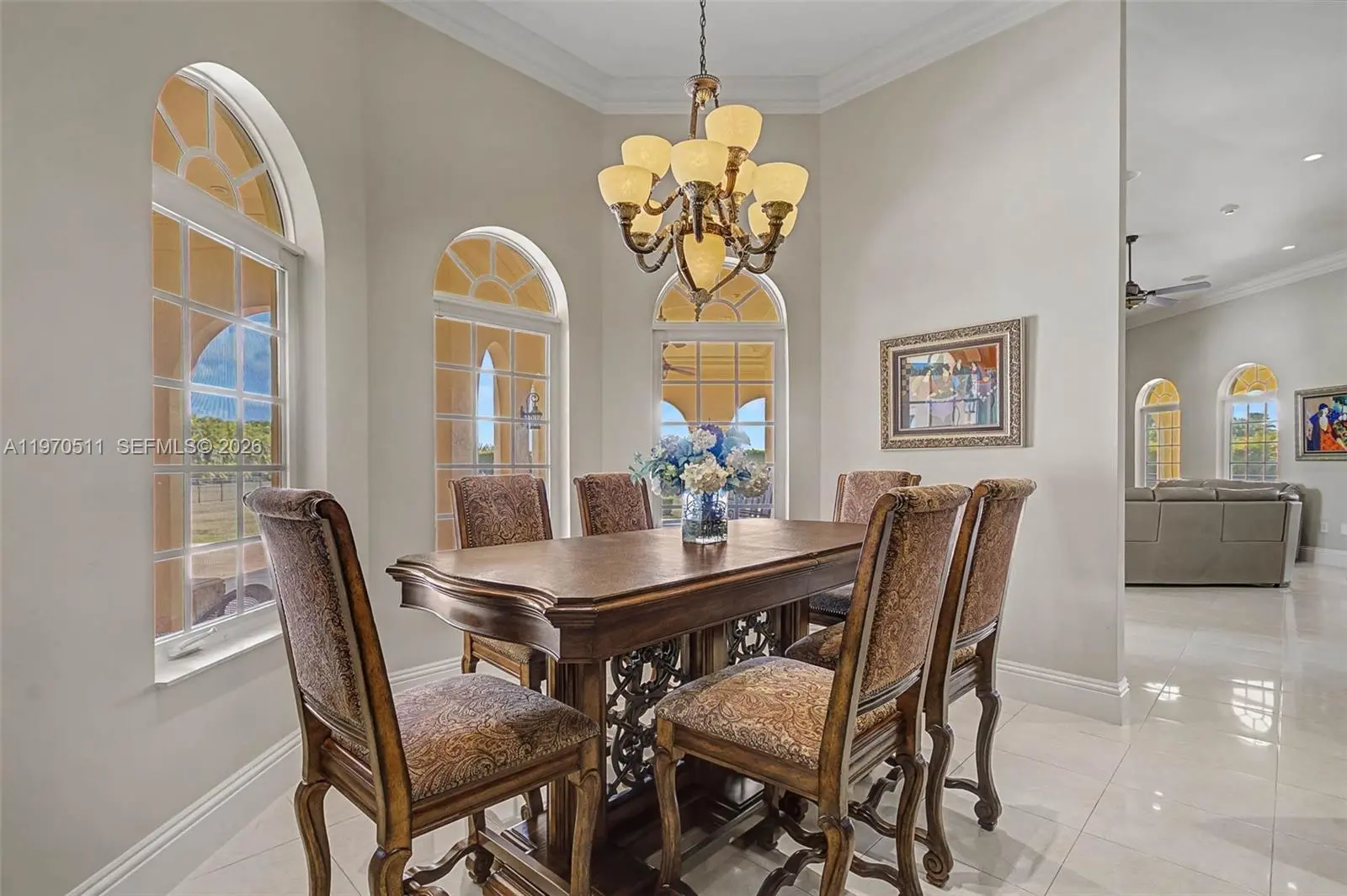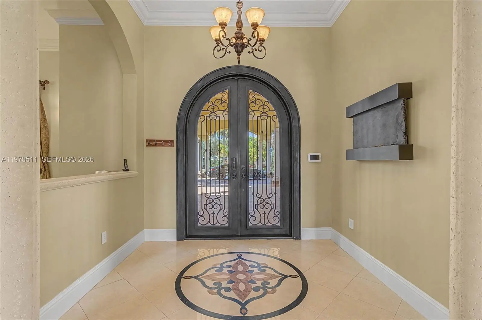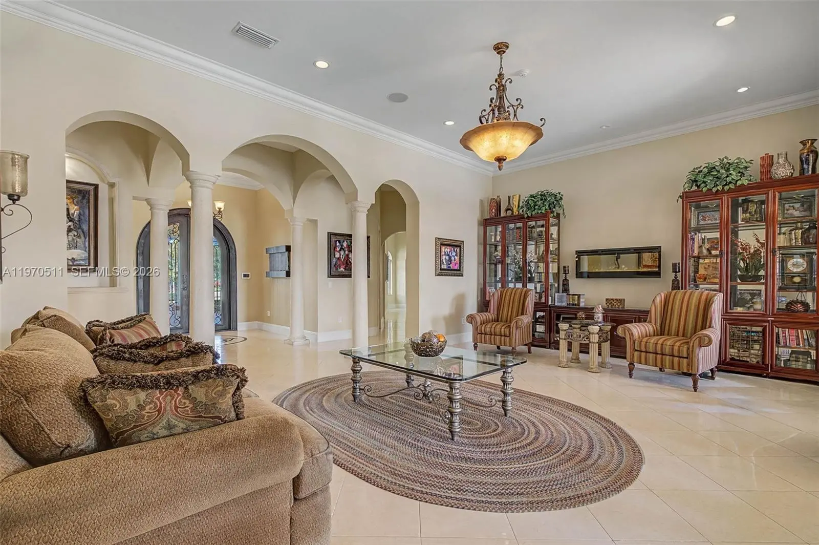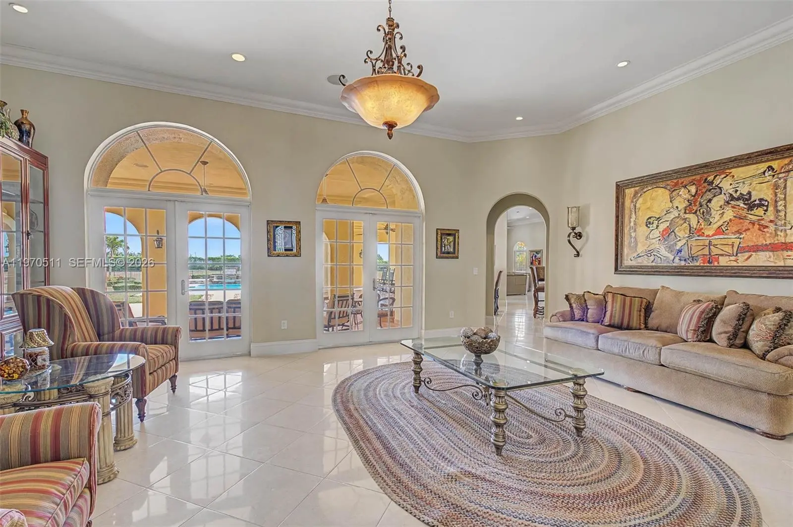 Private double gated estate home set on over 4.8 acres, this exceptional property offers 9,943sqft of living space with a well-designed triple split floor plan. The main residence features 6 bedrooms plus an office including a master and jr. suite, 7.5 baths, chef's kitchen with double subzero refrigerators, double subzero freezers, subzero drink drawers, double miele ovens, built in miele coffee maker, subzero wine refrigerator and expansive island and counter seating. Windows and doors all PGT impact glass. Metal roof on main house and rear structure. Lutron low voltage lighting, Control4 sound system and Cat6 wiring throughout the home. Full home Kohler 45kw generator. Designed for both entertaining and everyday comfort, the home includes a private theater, built-in bar, covered patio with summer kitchen, and a resort-style pool and spa. The expansive primary suite offers dual custom walk-in closets, large shower, and jetted tub. Jr suite boasts dual walk-in custom closets, double vanity bathroom, a shower/tub combo and a separate shower. A true highlight is the oversized four car dream garage with double-height ceilings, plus a detached mini-split AC temperature-controlled building currently used as additional garage space and a custom gym, with a powder room. A rare opportunity combining privacy, scale, and luxury built to the highest standards.
