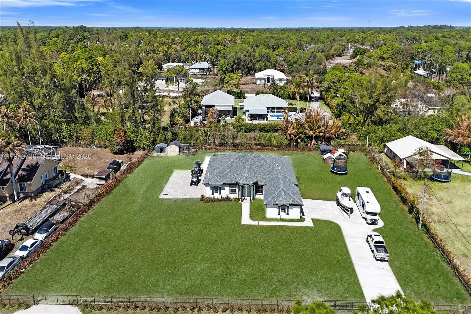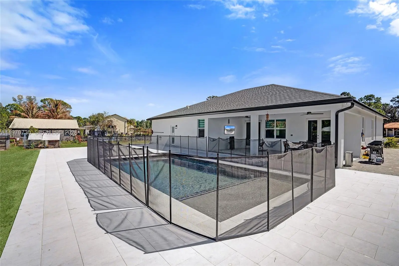 STUNNING NEW CONSTRUCTION IN THE ACREAGE! THIS 5 BEDS 3 BATHS HOME WITH SALTWATER POOL AND 3-CAR GARAGE SITS ON 1.3 ACRES LOT AND FEATURES AN OPEN FLOOR PLAN, OVERSIZED QUARTZ KITCHEN COUNTERTOPS, STAINLESS STEEL APPLIANCES, AND TILE FLOORS THROUGHOUT, SPACIOUS BEDROOMS AND BEAUTIFULLY FINISHED BATHROOMS WITH QUARTZ COUNTERS. ENJOY A SALTWATER POOL WITH MARBLE DECKING AND A COVERED TILED PATIO-PERFECT FOR ENTERTAINING. IMPACT WINDOWS AND REVERSE OSMOSIS WATER SYSTEM INCLUDED**FOR SHOWING INSTRUCTIONS SEE BROKER REMARKS**PRESENT OFFERS**Information herein is deemed reliable and subject to errors, omissions, and changes without notice. All property information should be independently verified
