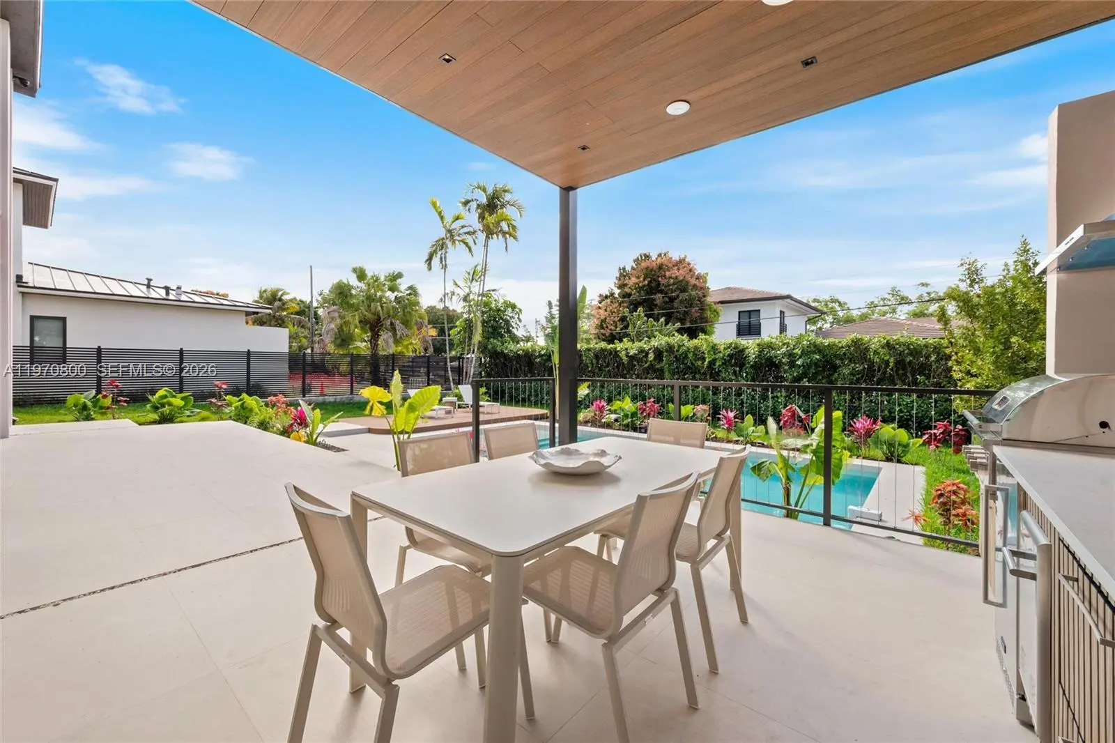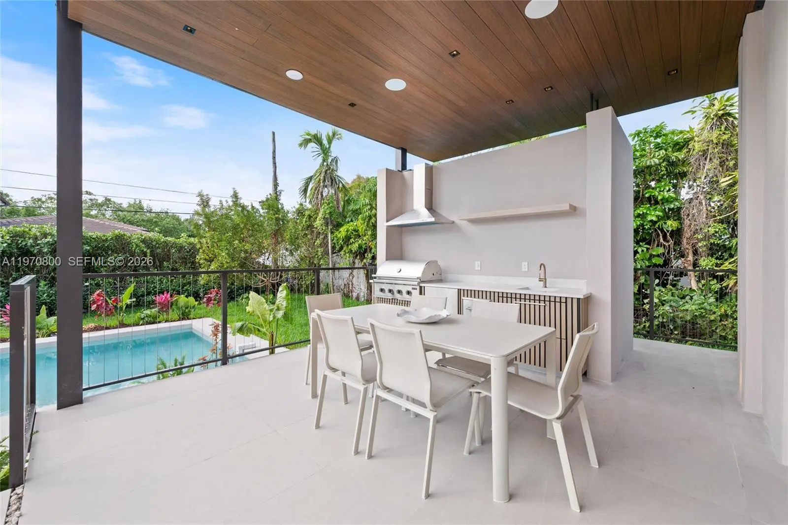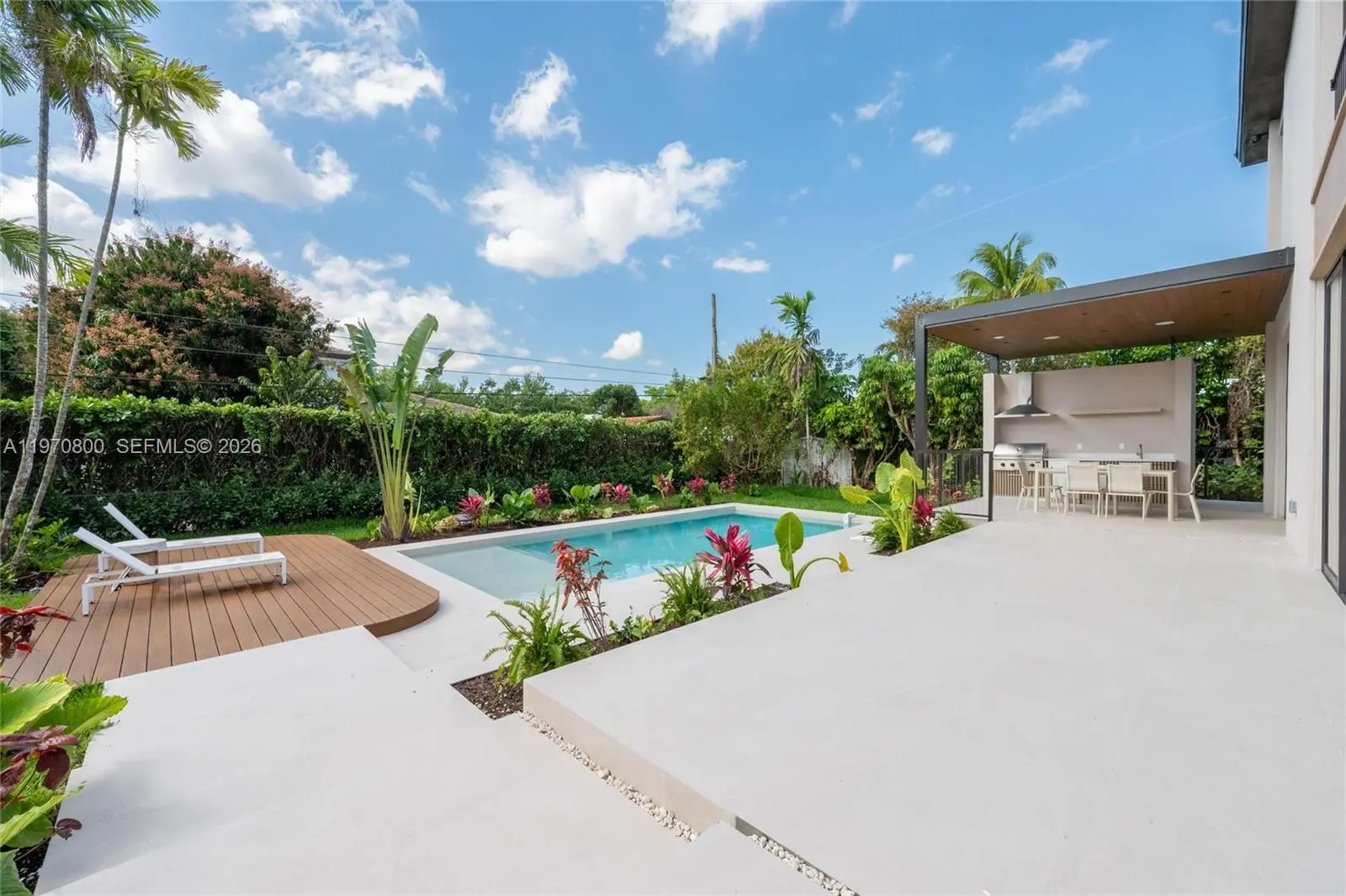 New construction two-story single-family home featuring 5 bedrooms and 6 bathrooms, offering 3,904 SF of living space and a two-car garage. Built with concrete block construction, 9' ceilings on both floors, and high-impact windows. The home features a gourmet Italian kitchen with Pompei Quartz countertops and backsplash, Sub-Zero/Wolf appliances, 24" x 48" porcelain tile flooring, and refined finishes throughout. All bedrooms include en-suite baths, highlighted by a luxurious primary suite. Enjoy a covered terrace, 44” Bull summer kitchen, outdoor shower, and a sleek 8.5’ x 31’ pool ideal for entertaining. Conveniently located minutes from Coral Gables, Coconut Grove, Brickell, and major highways.